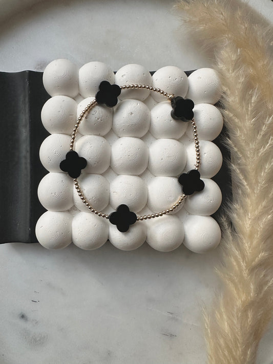 A collection of clover beads made from mother of pearl & black onyx. Simply stunning!