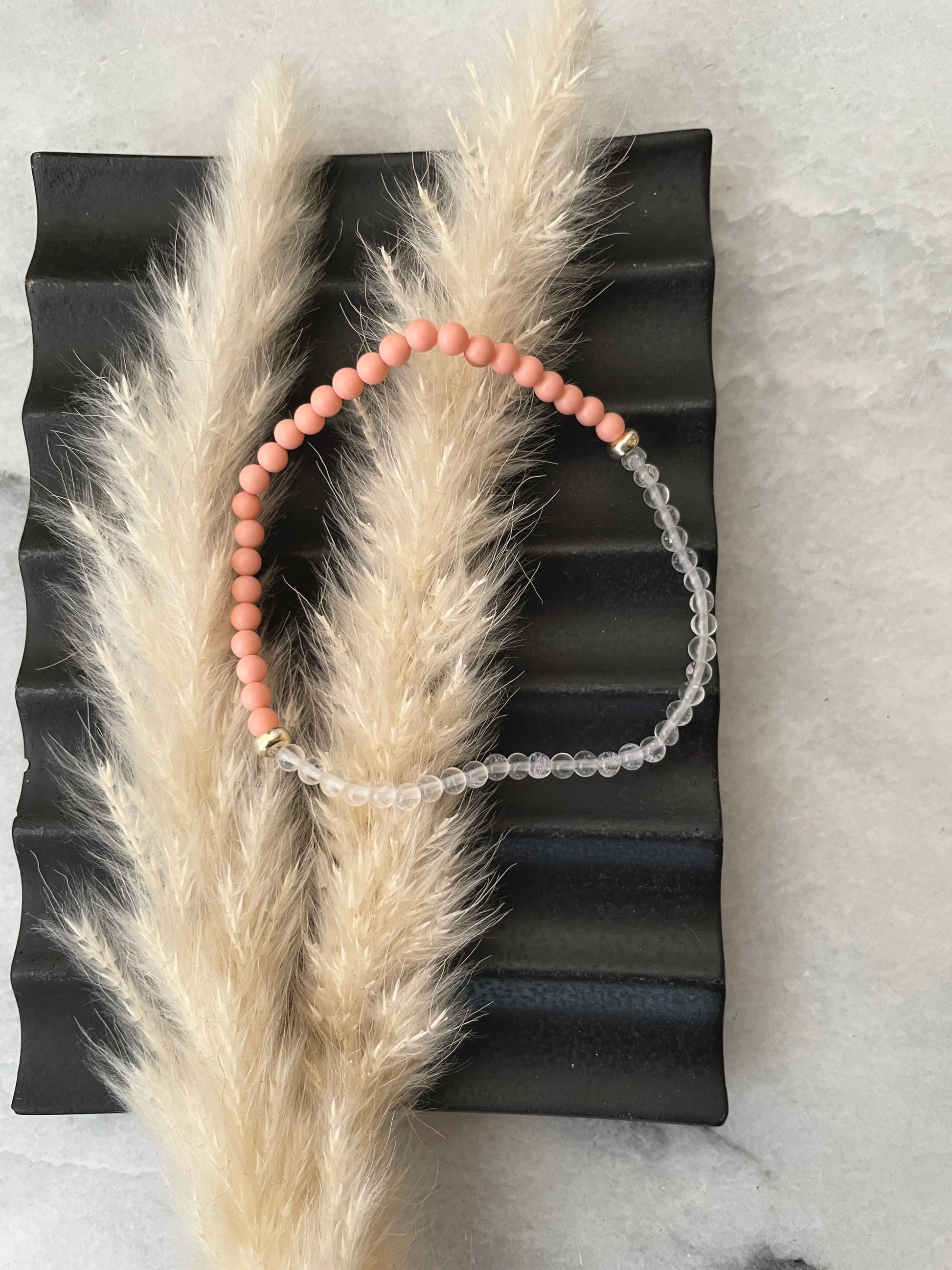 3mm coral pink and lilac jade gemstone beads with your choice of sterling silver or gold filled accent beads.