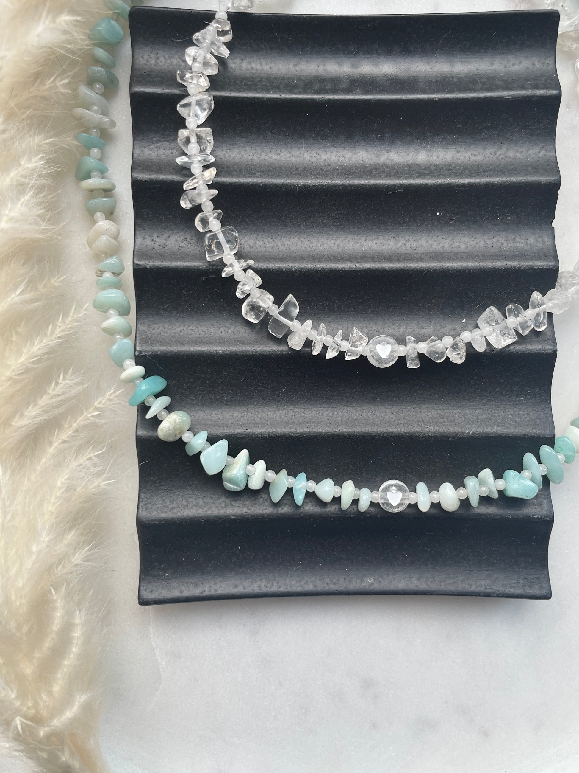 Shown here in Amazonite and Crystal Quartz but if you’d like another crystal just get in touch!
