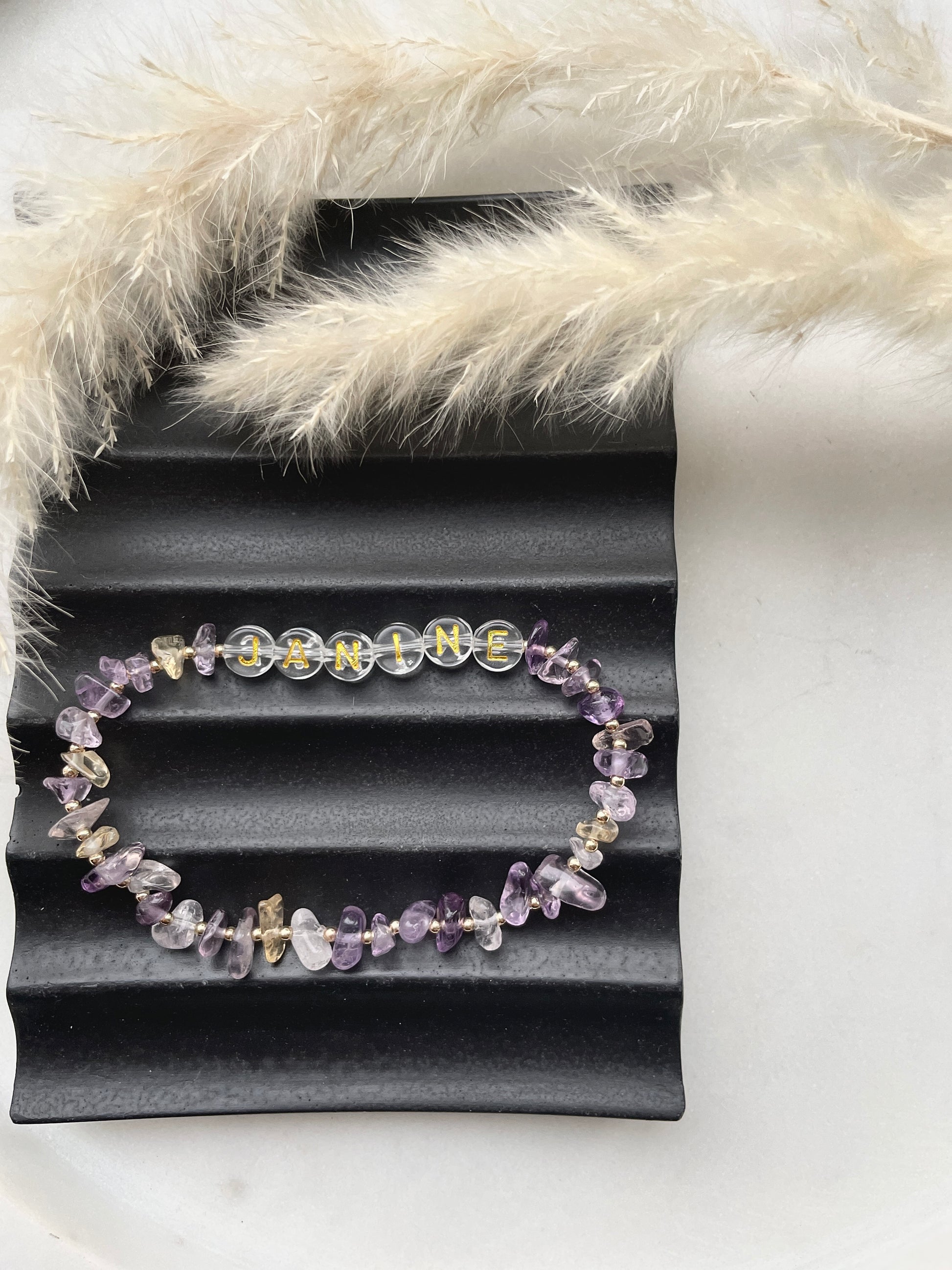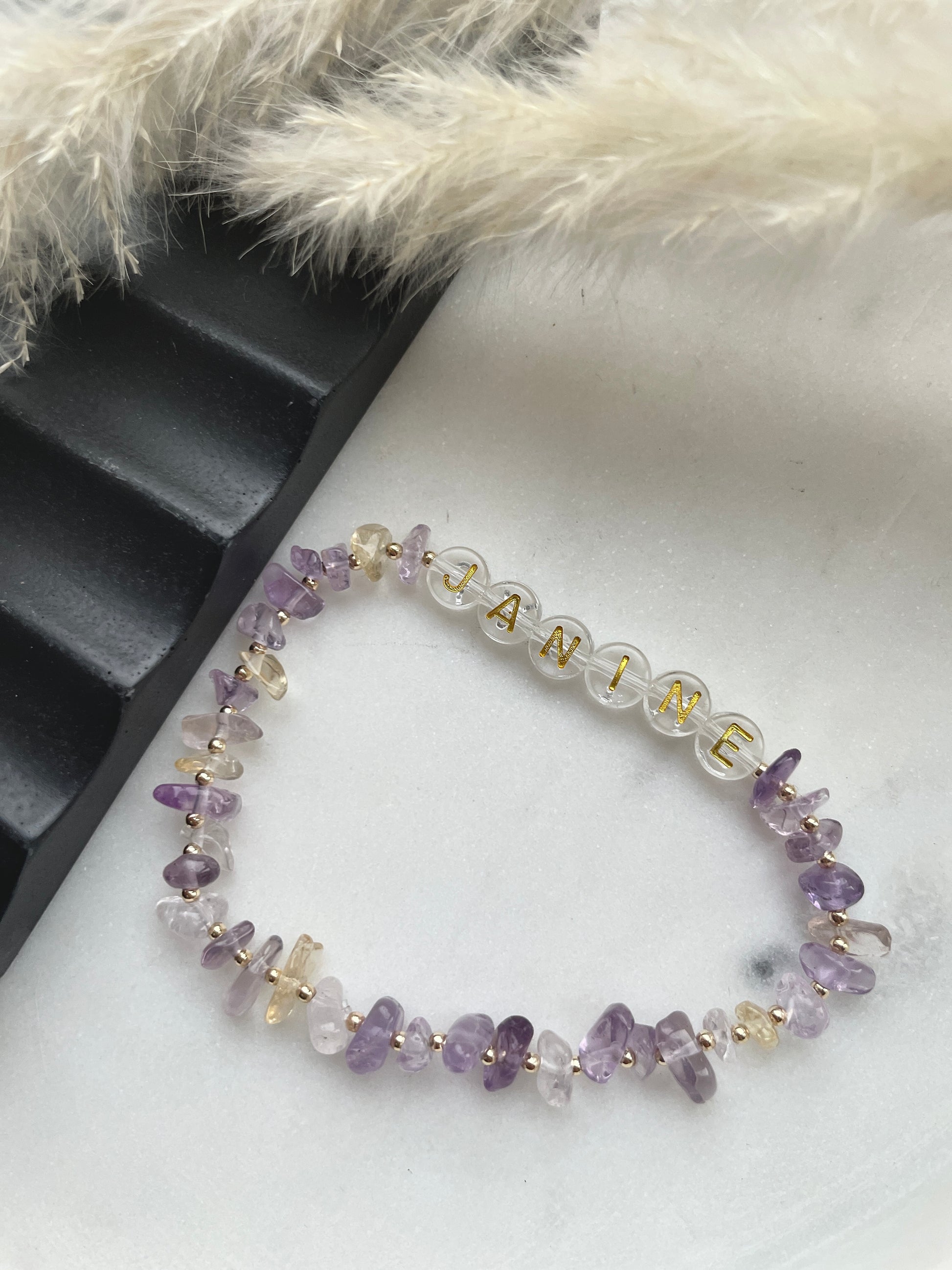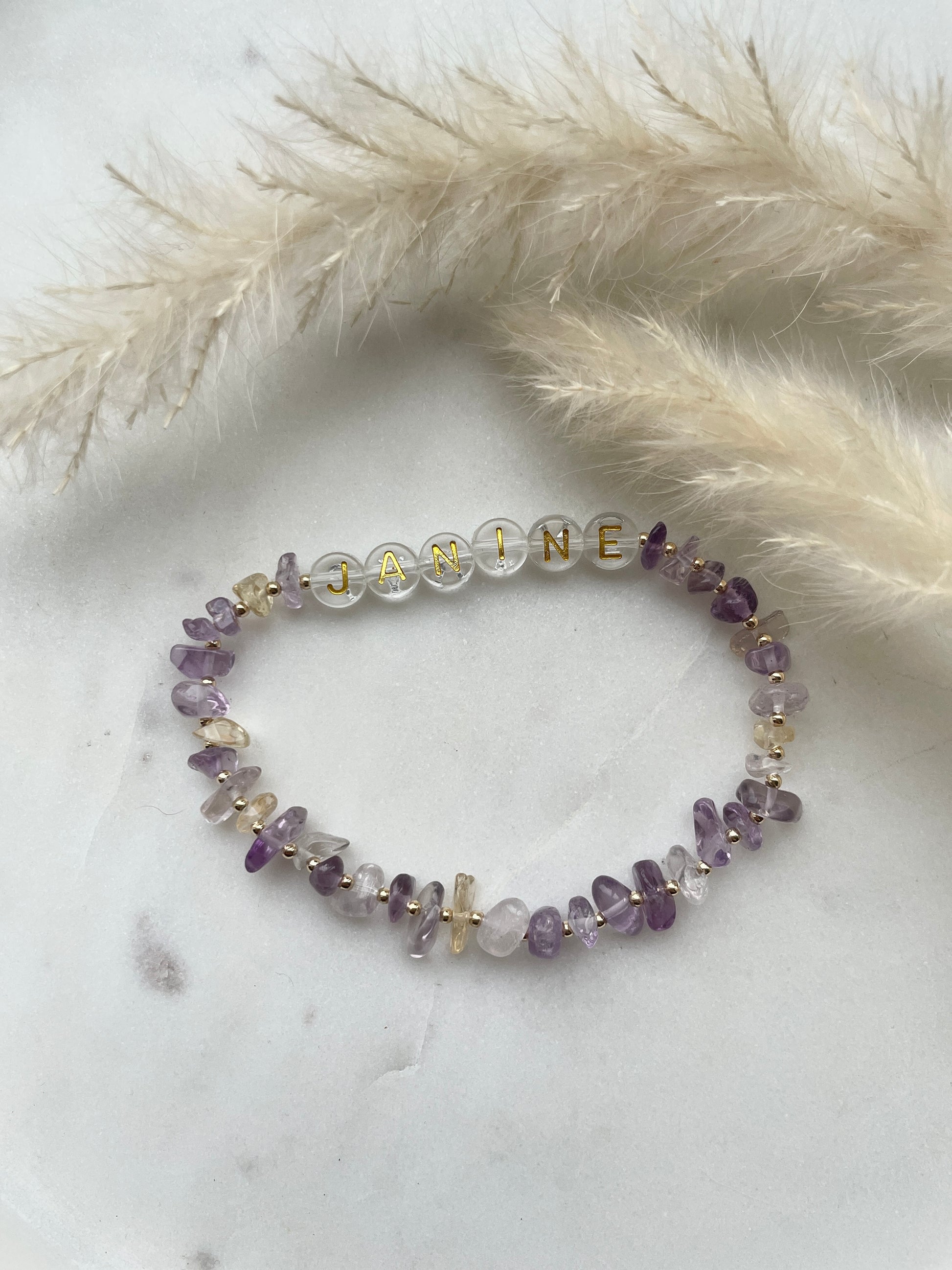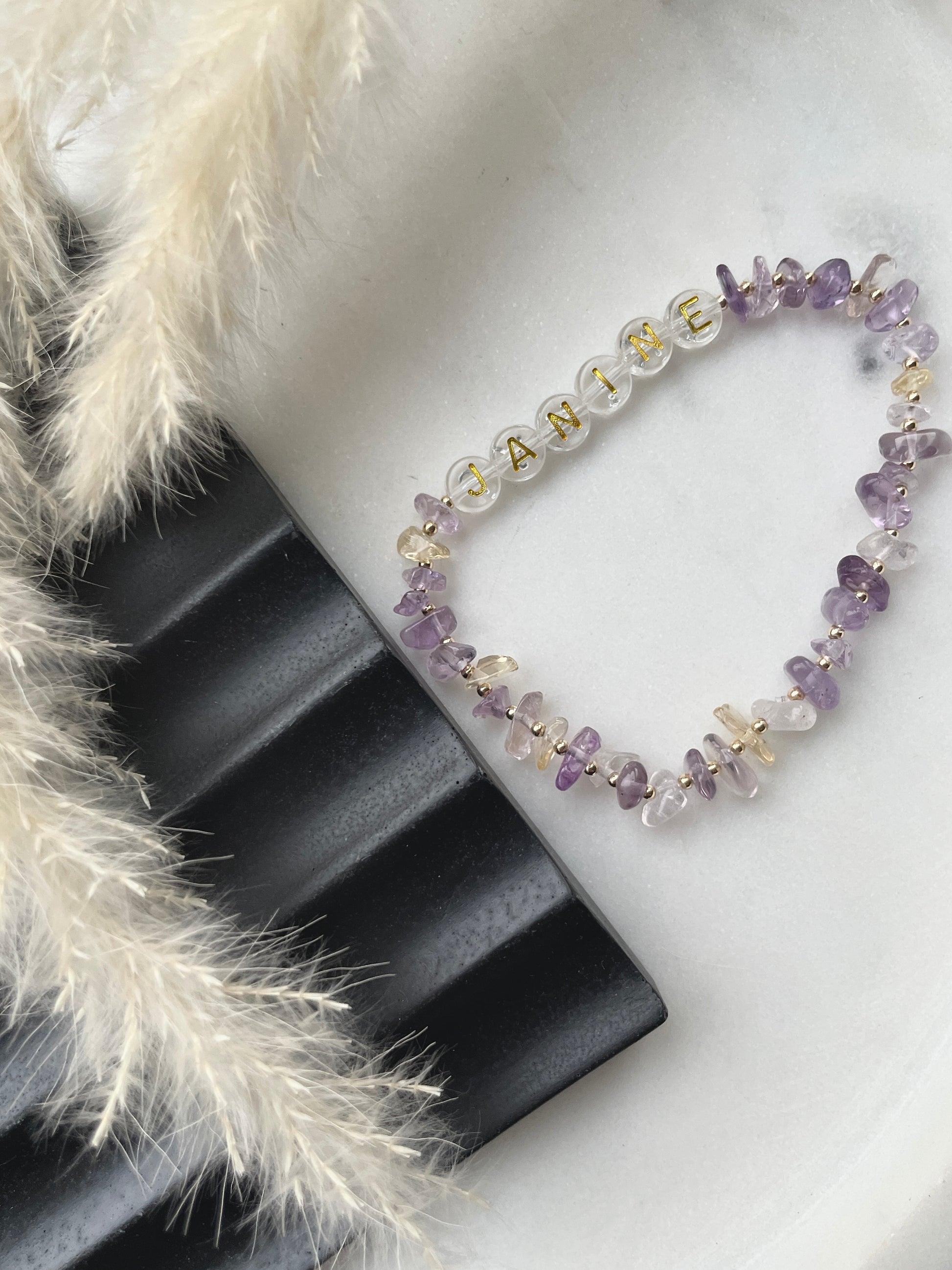 Perfection in a crystal & paired here with gold filled accents & clear/gold letter beads 👌🏻