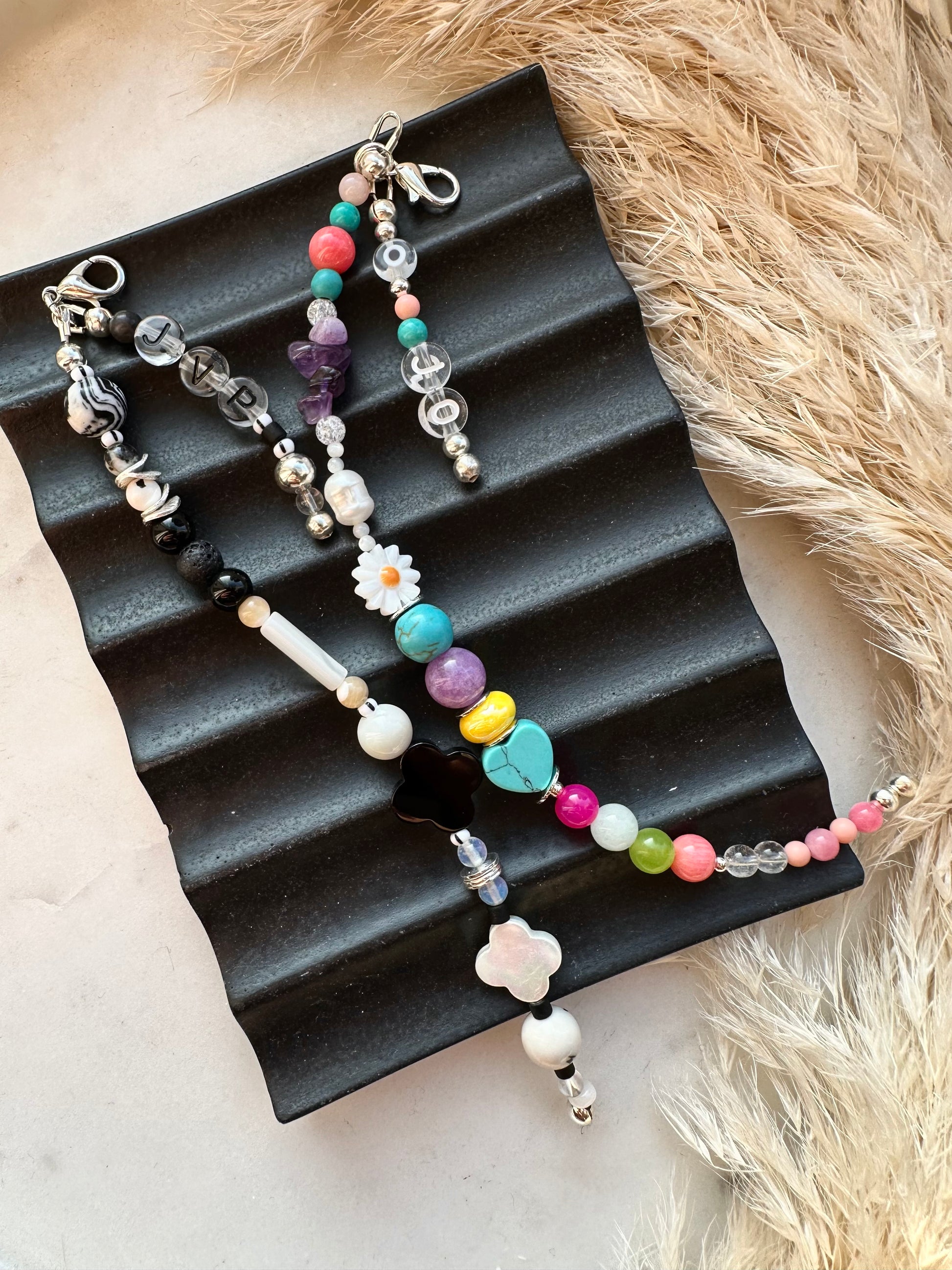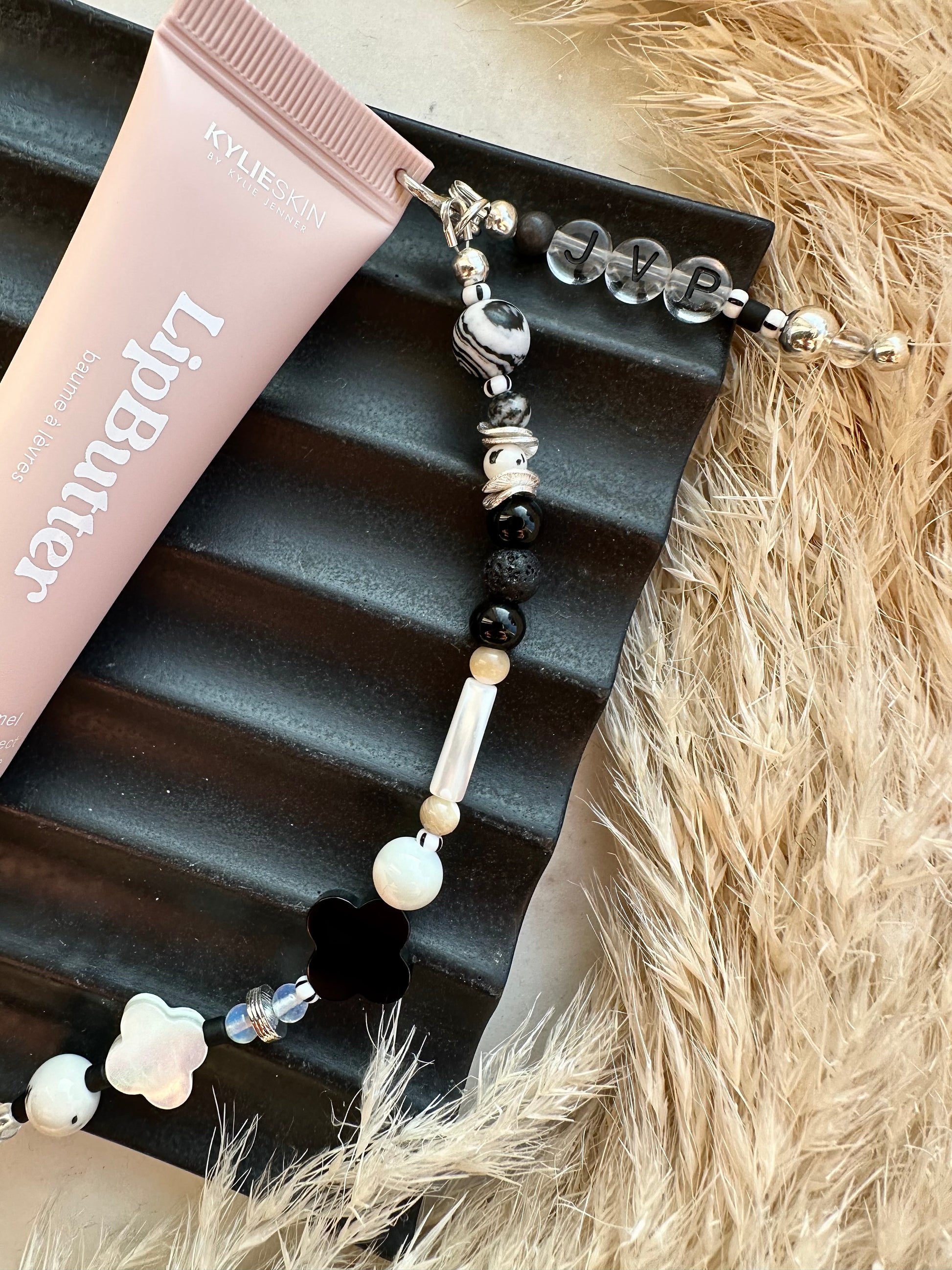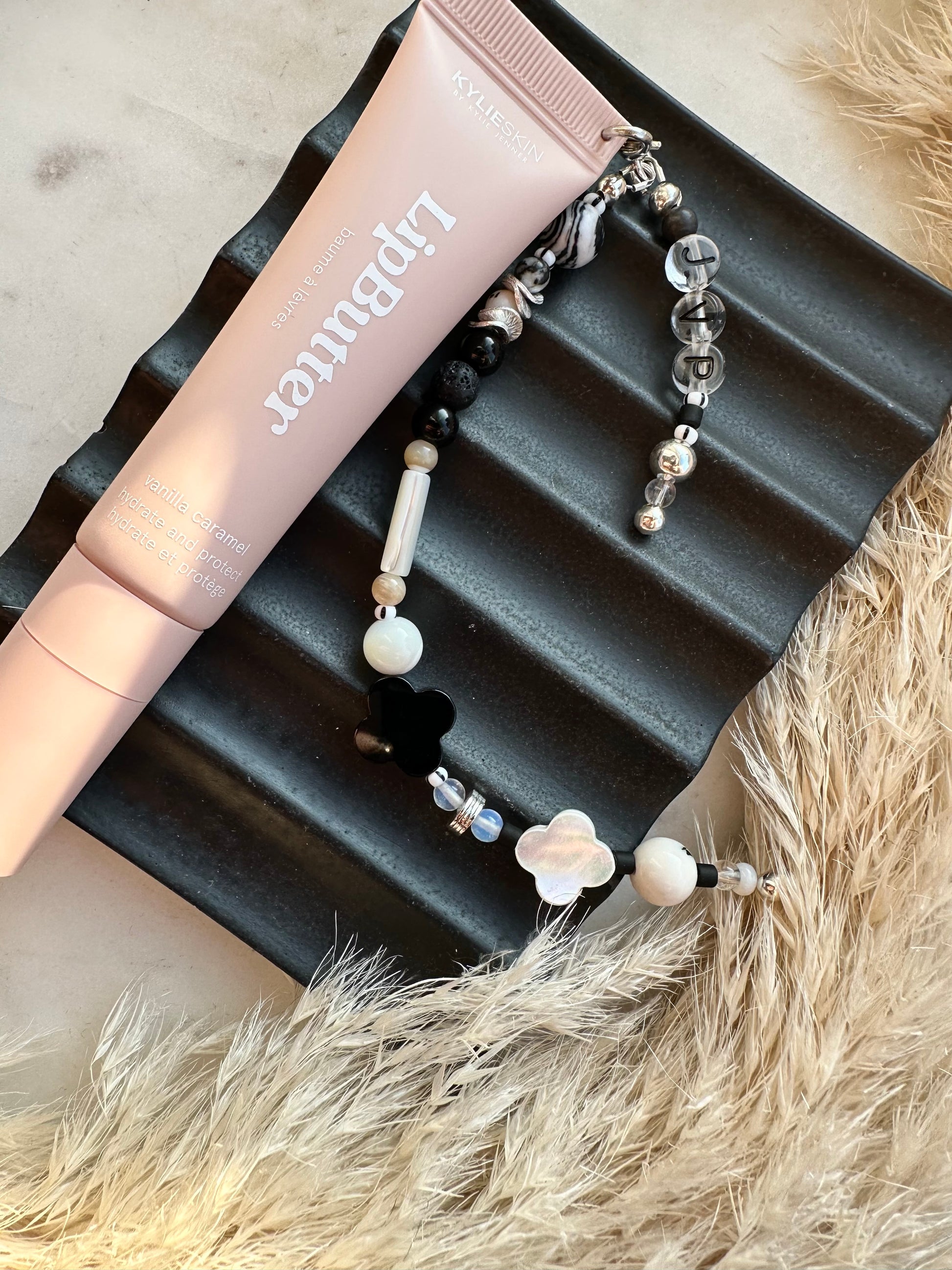 monochrome - with mixes of mother of pearl, moonstone, black onyx, zebra jasper, lava beads, silver plated accents & more