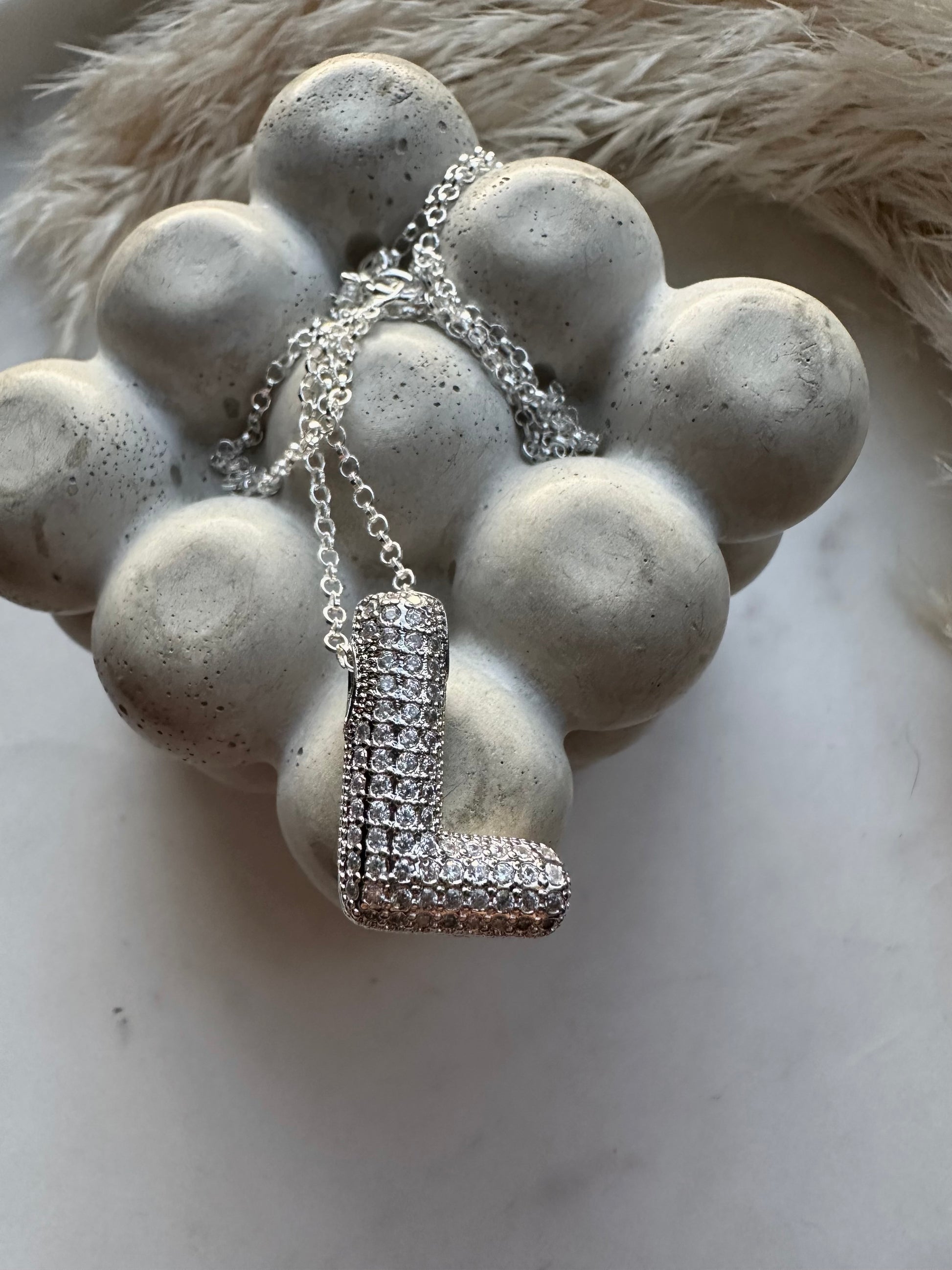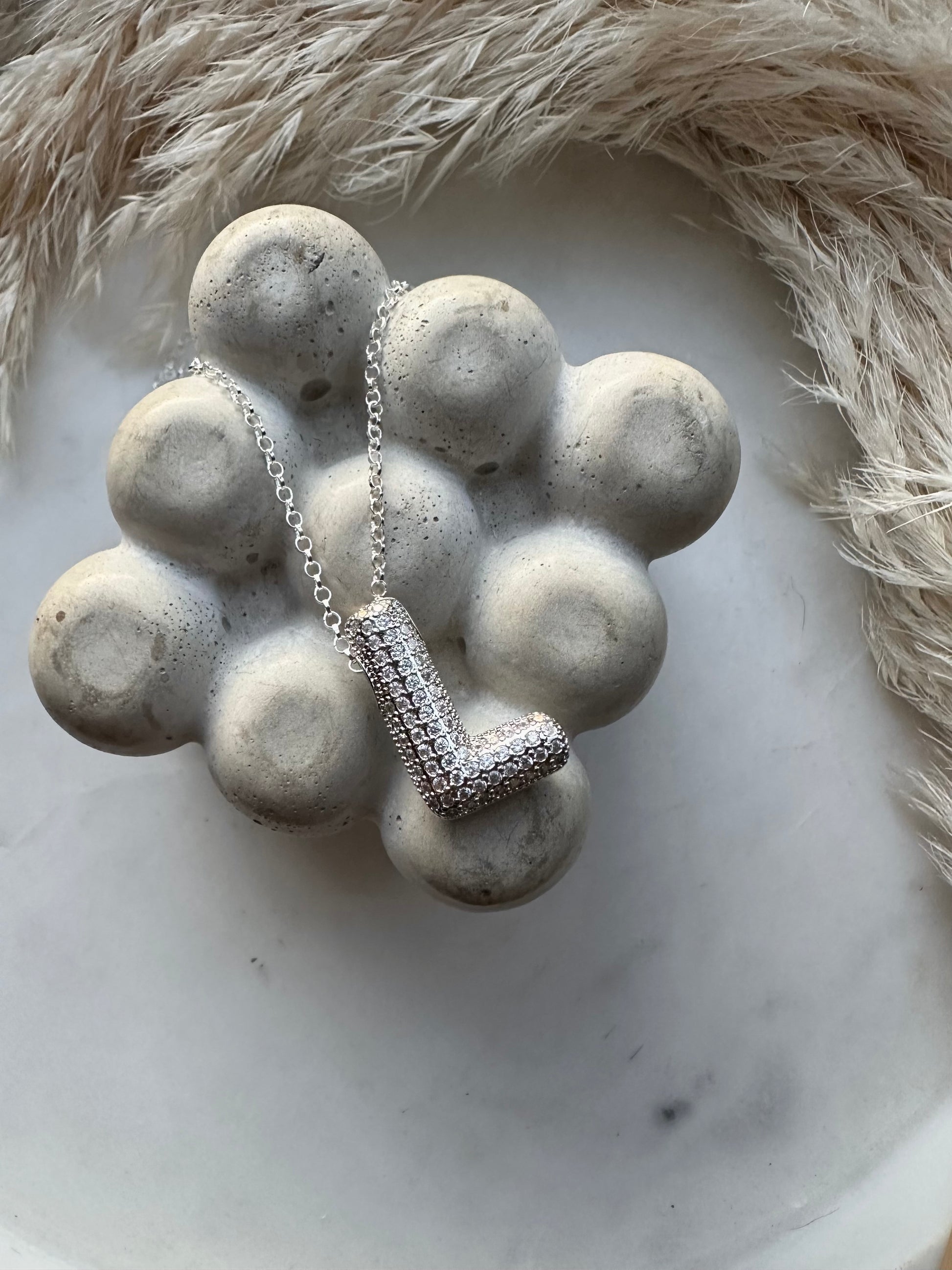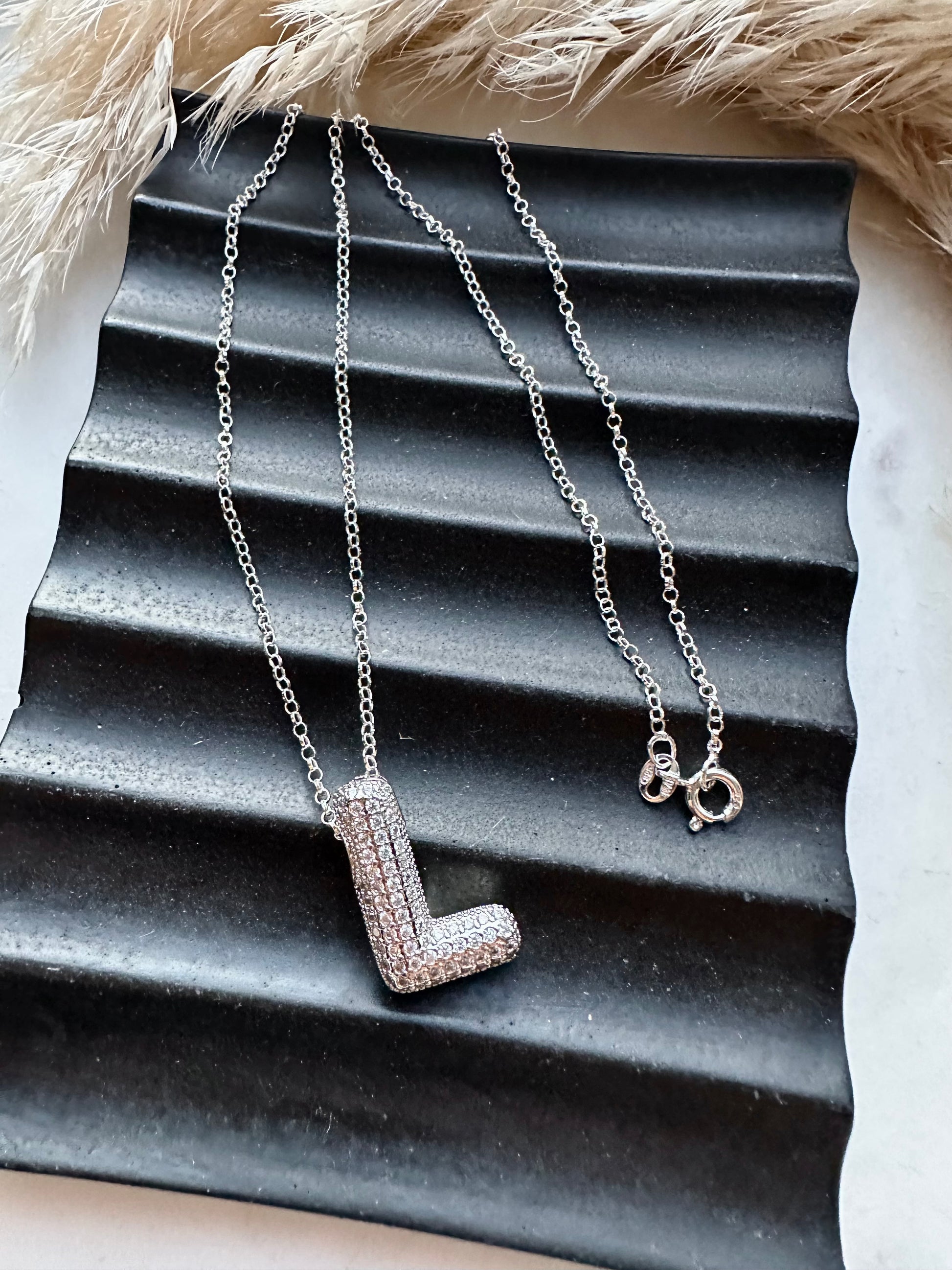 how cute are these?! gold or silver plated bubble initials strung on your choice of gold filled or sterling silver fine trace chain - available in 16” or 18” lengths