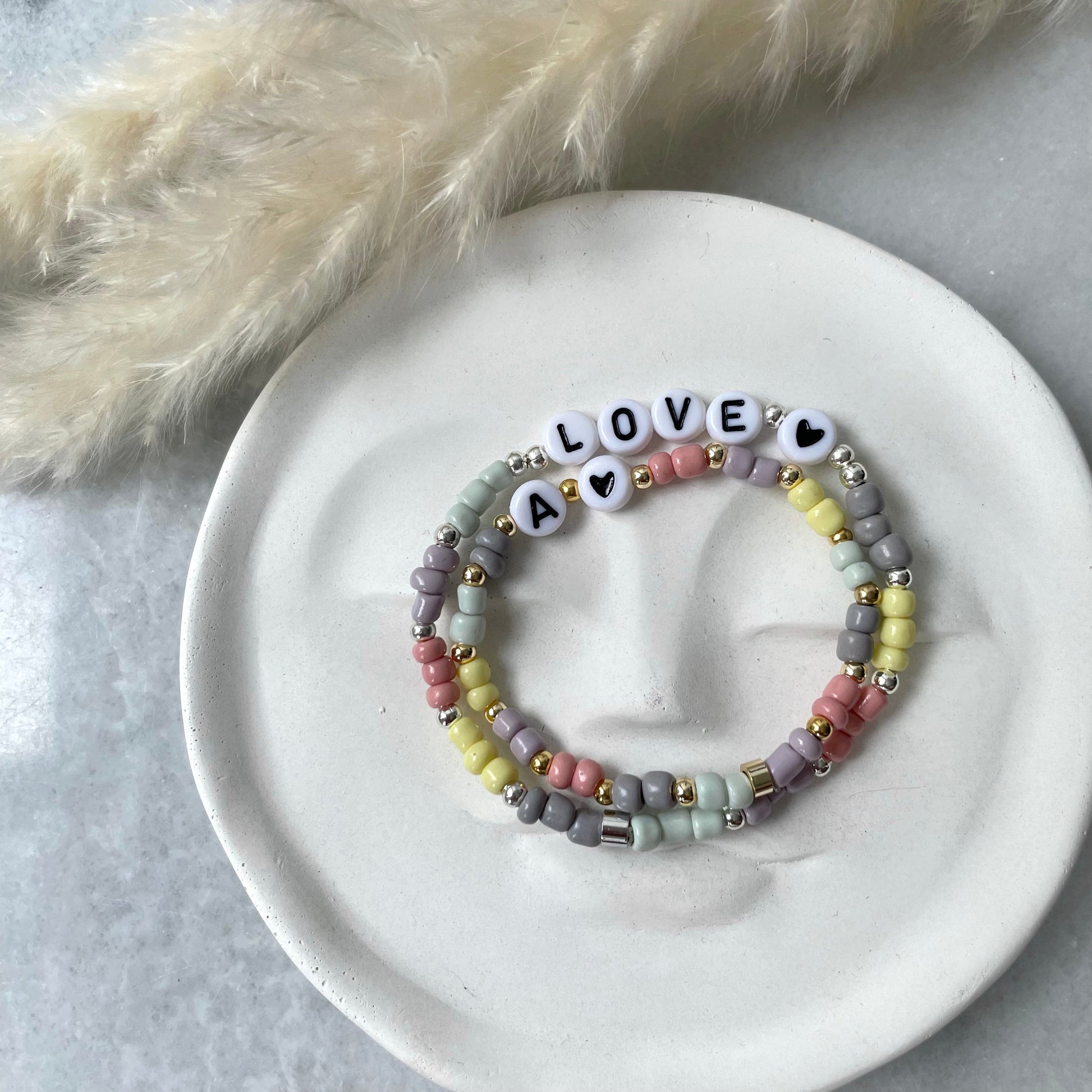 Pastel seed bead bracelet with your choice of silver, gold or rose gold accents.