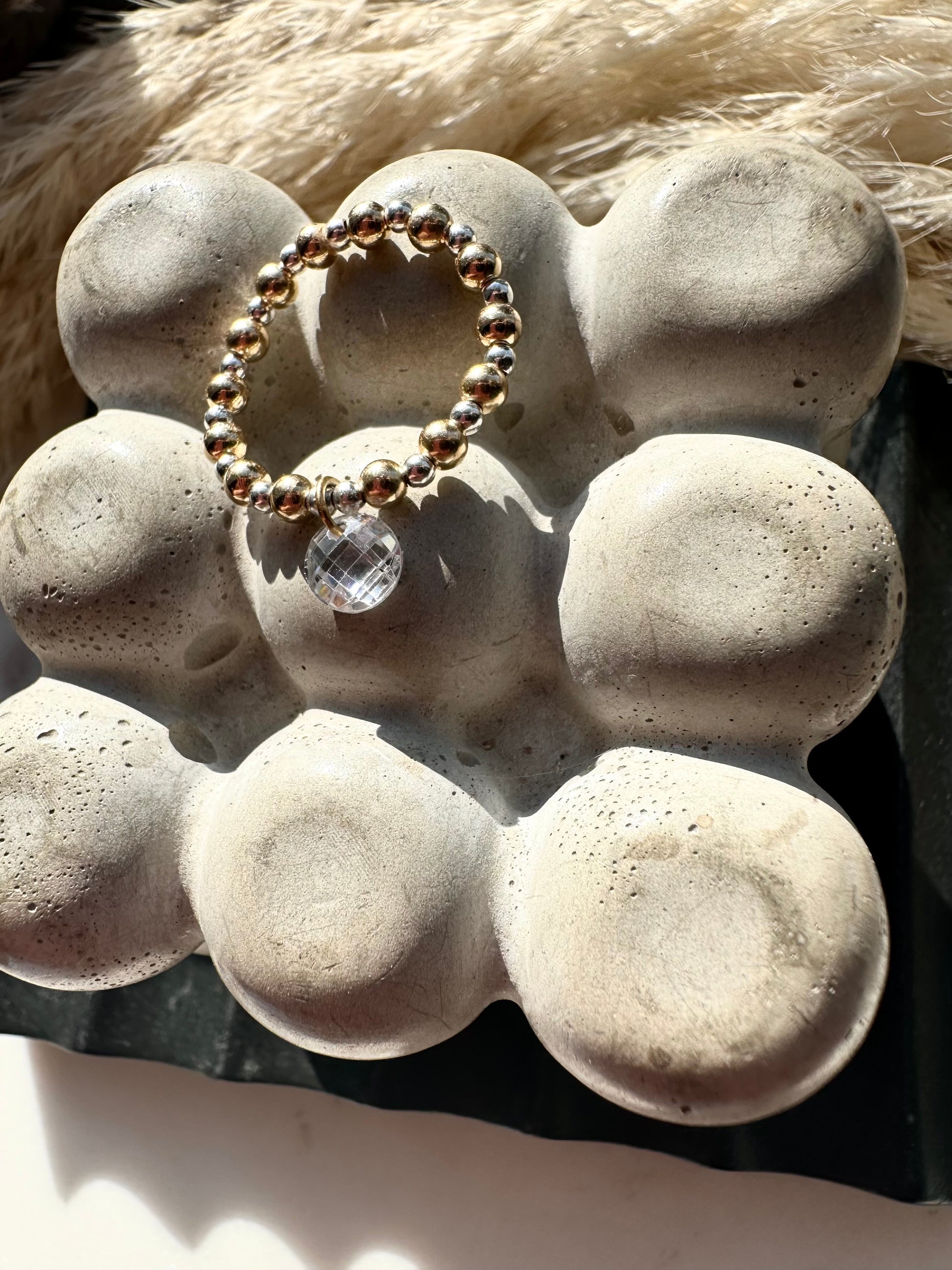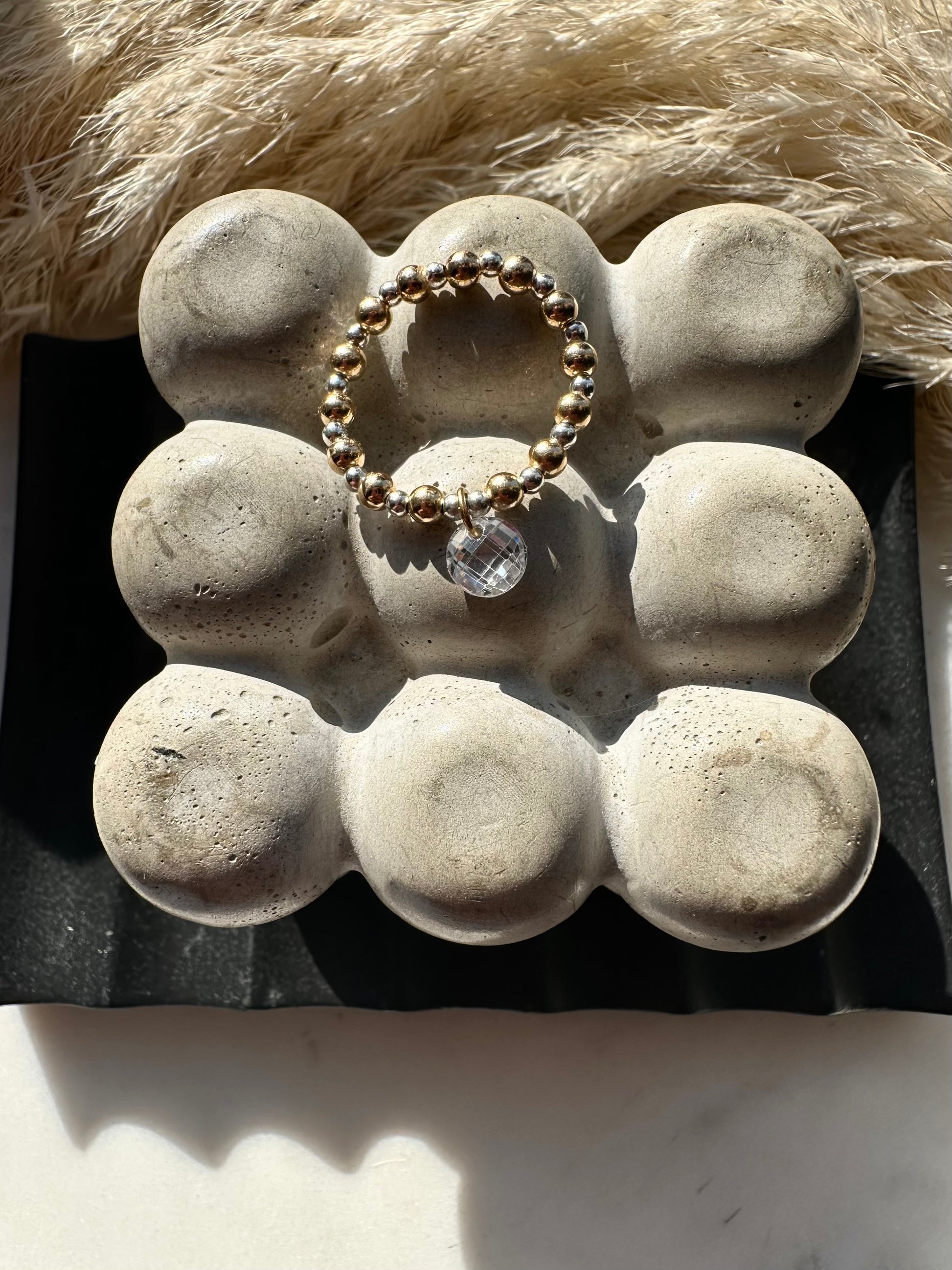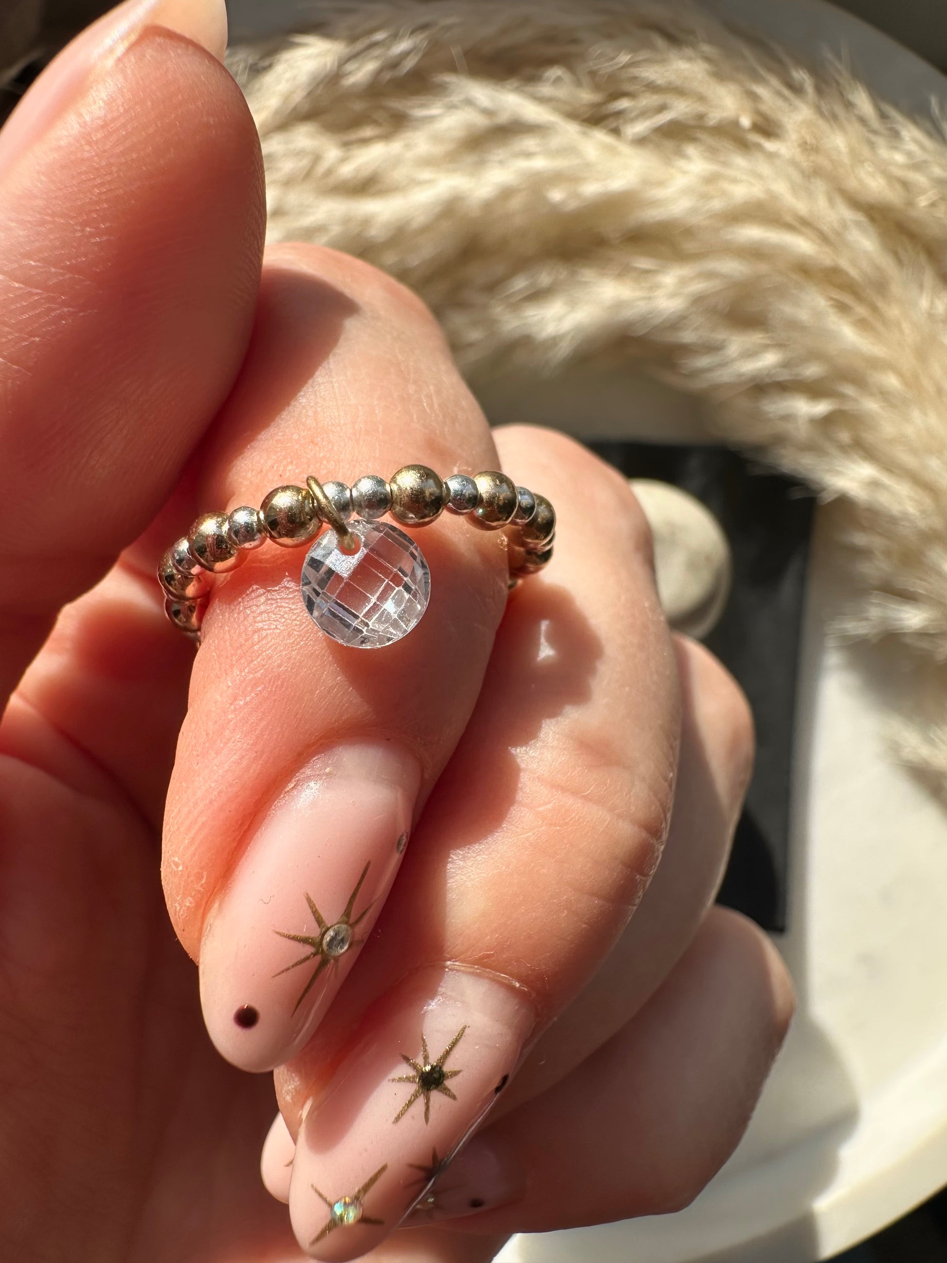 3mm & 2mm mixed sized gold filled & sterling silver beads strung with this cubic zirconia charm to make the cutest ring. Perfect for wearing along or stacking with others.