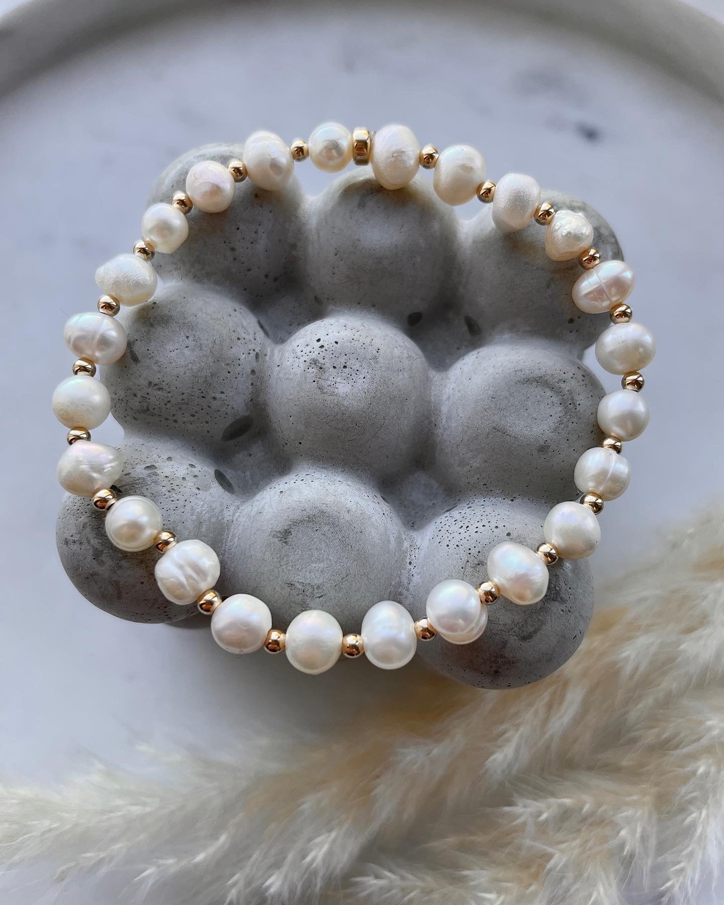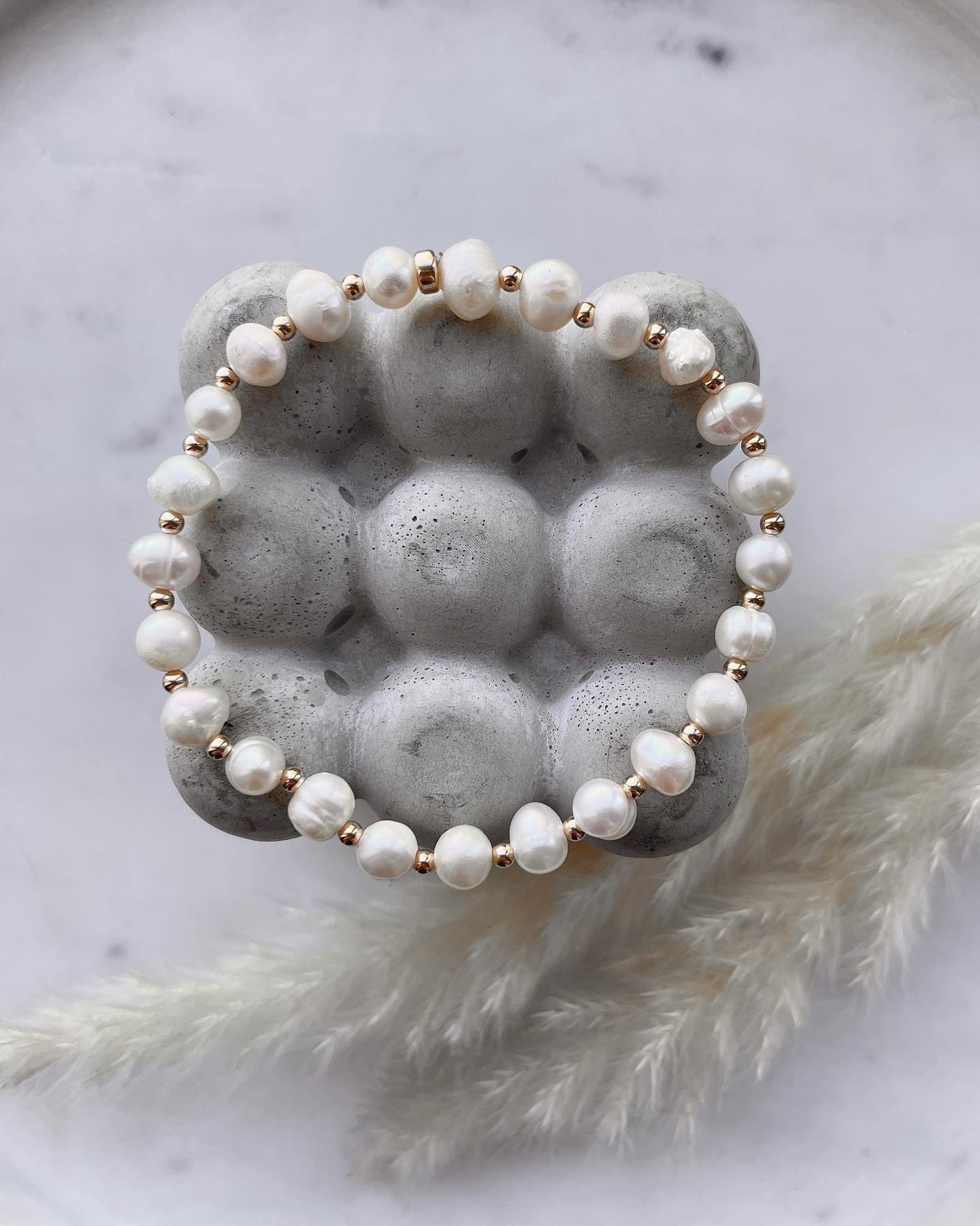 Potato freshwater pearls paired with your choice of gold filled, rose gold filled or sterling silver spacer beads. Won’t tarnish and will look amazing on its own or stacked alongside your existing jewellery.