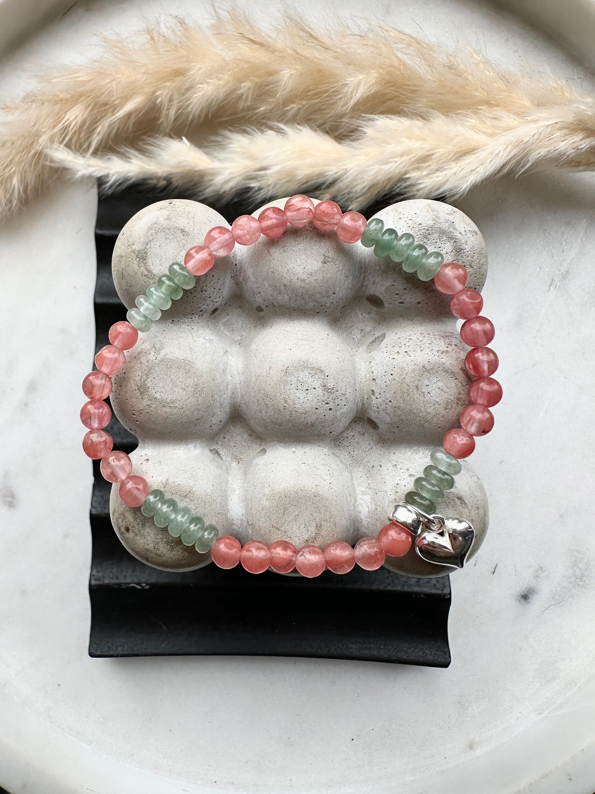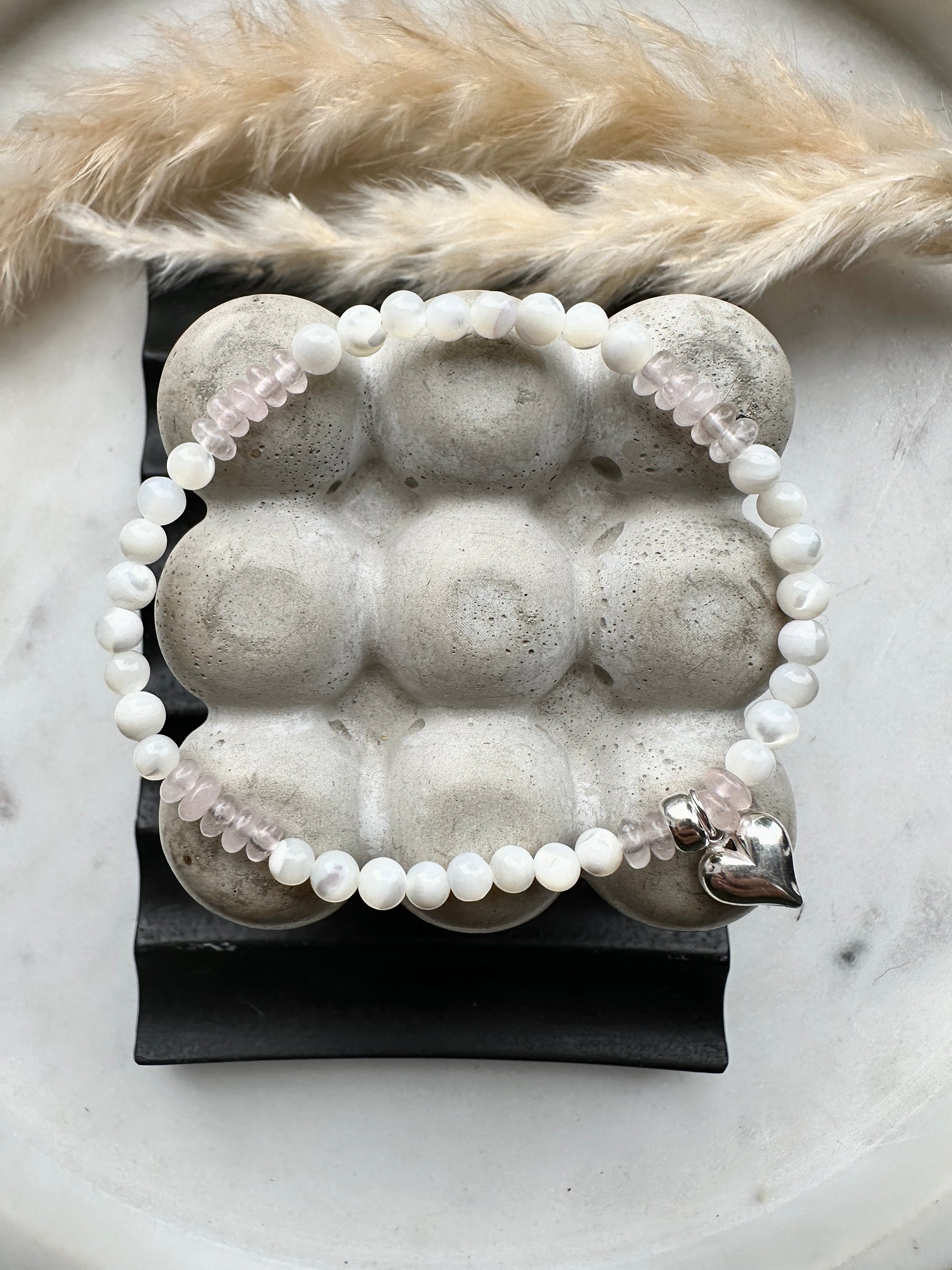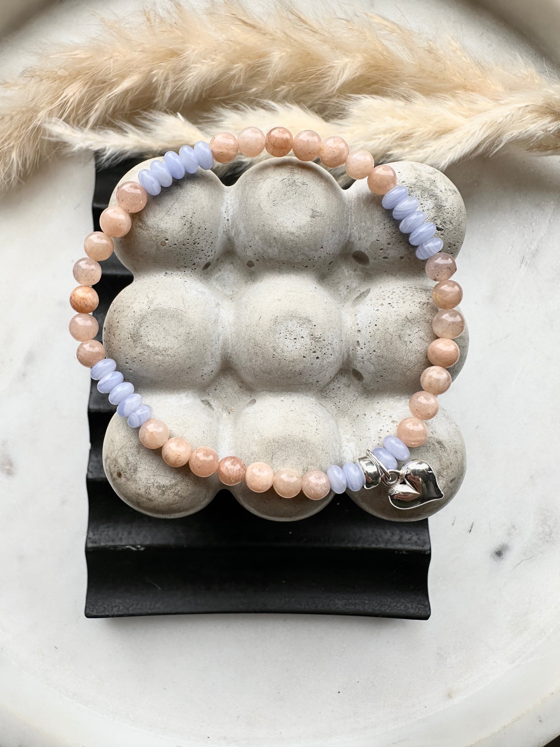 Sterling silver heart charms paired with your choice of Sunstone & Blue Lace Agate, Mother of Pearl & Rose Quartz or Red Jade & Aventurine