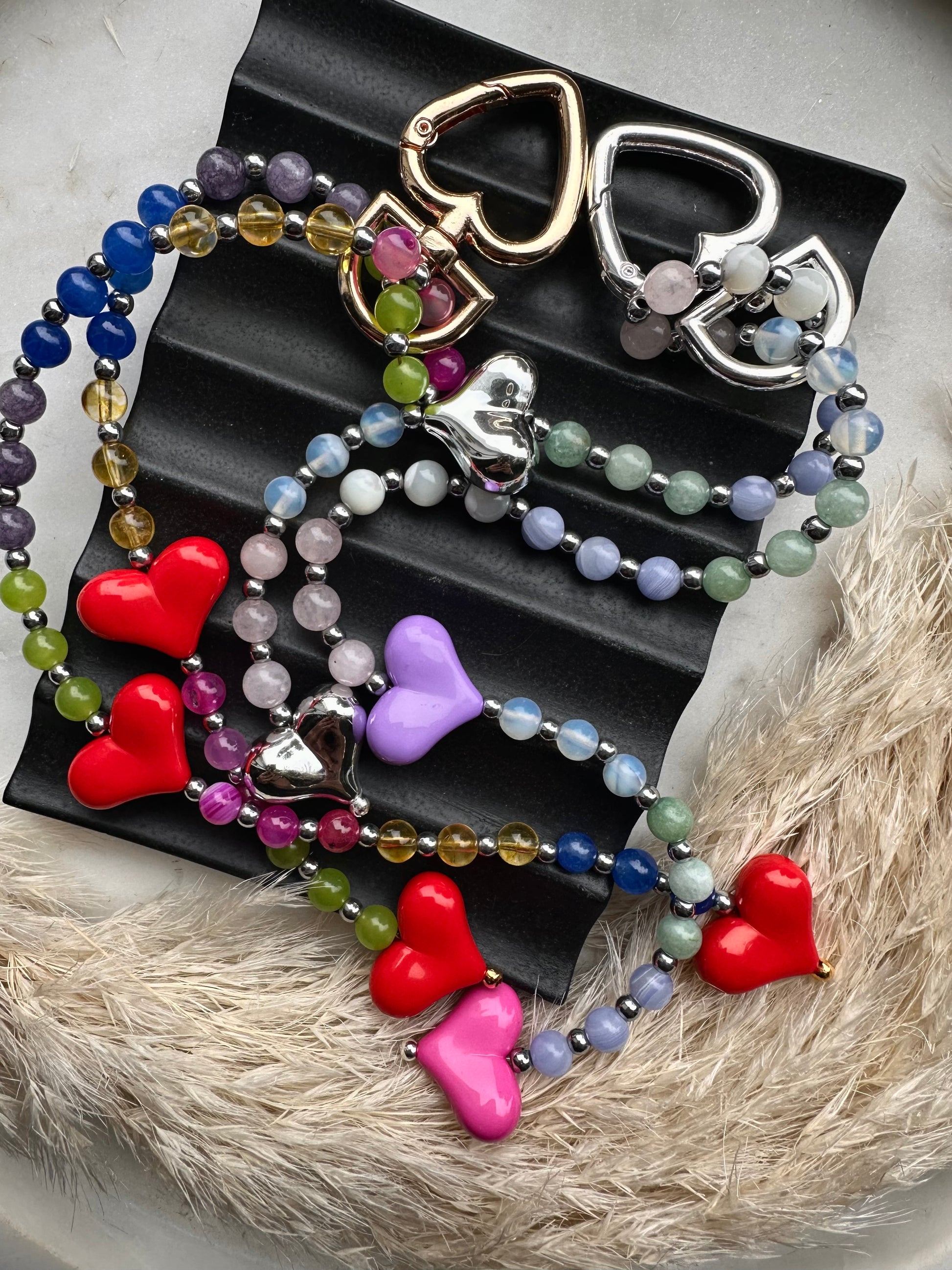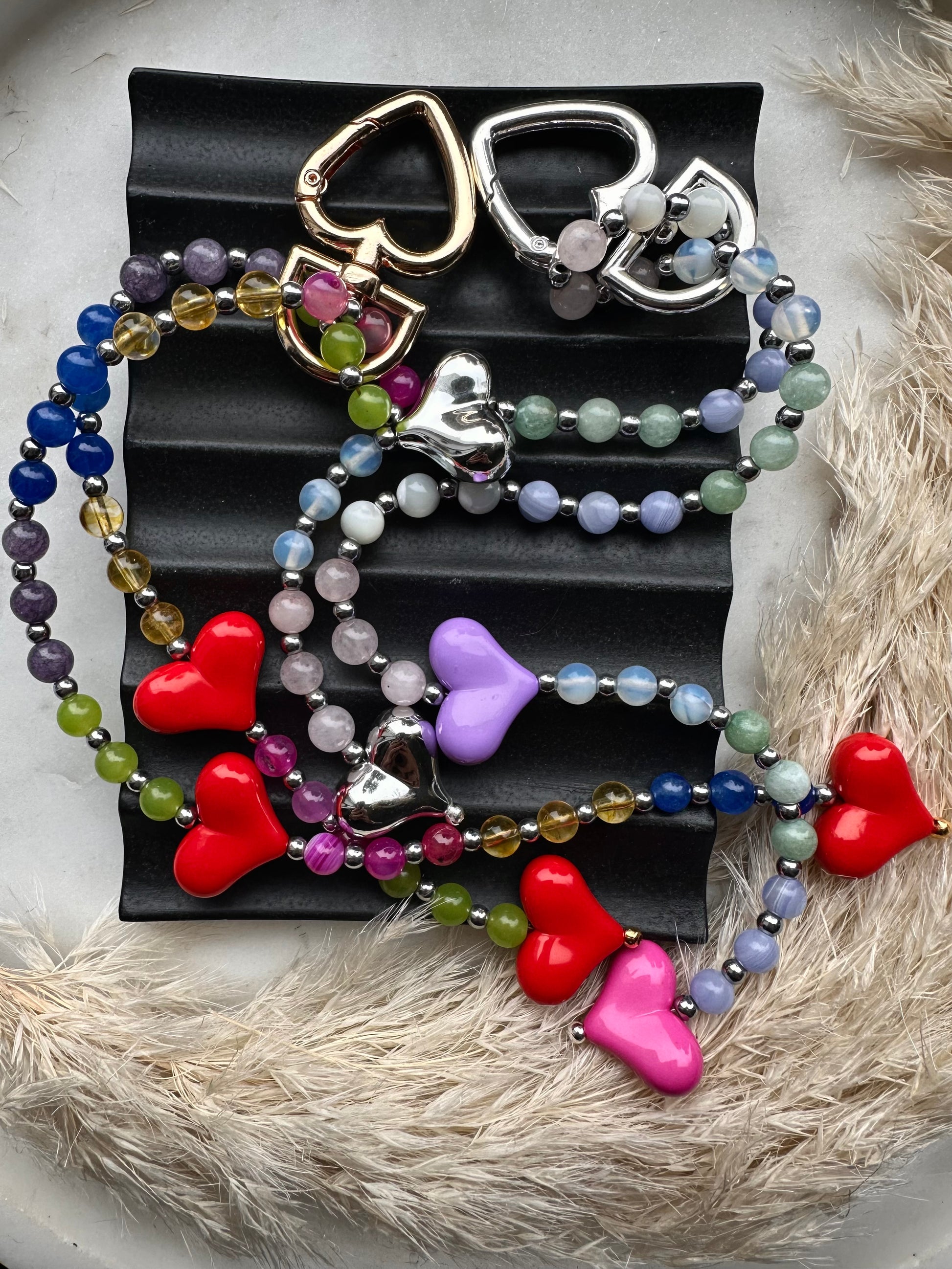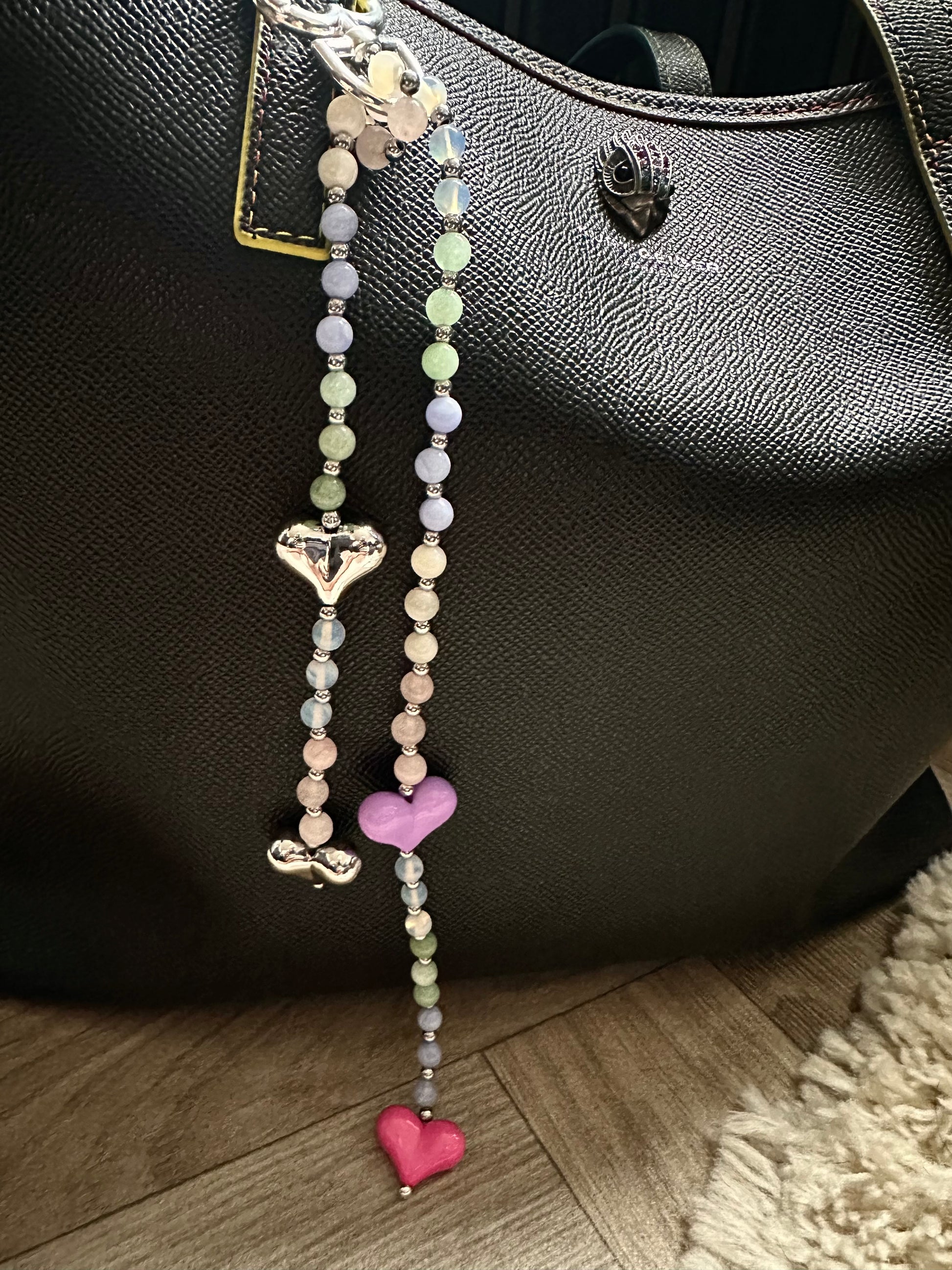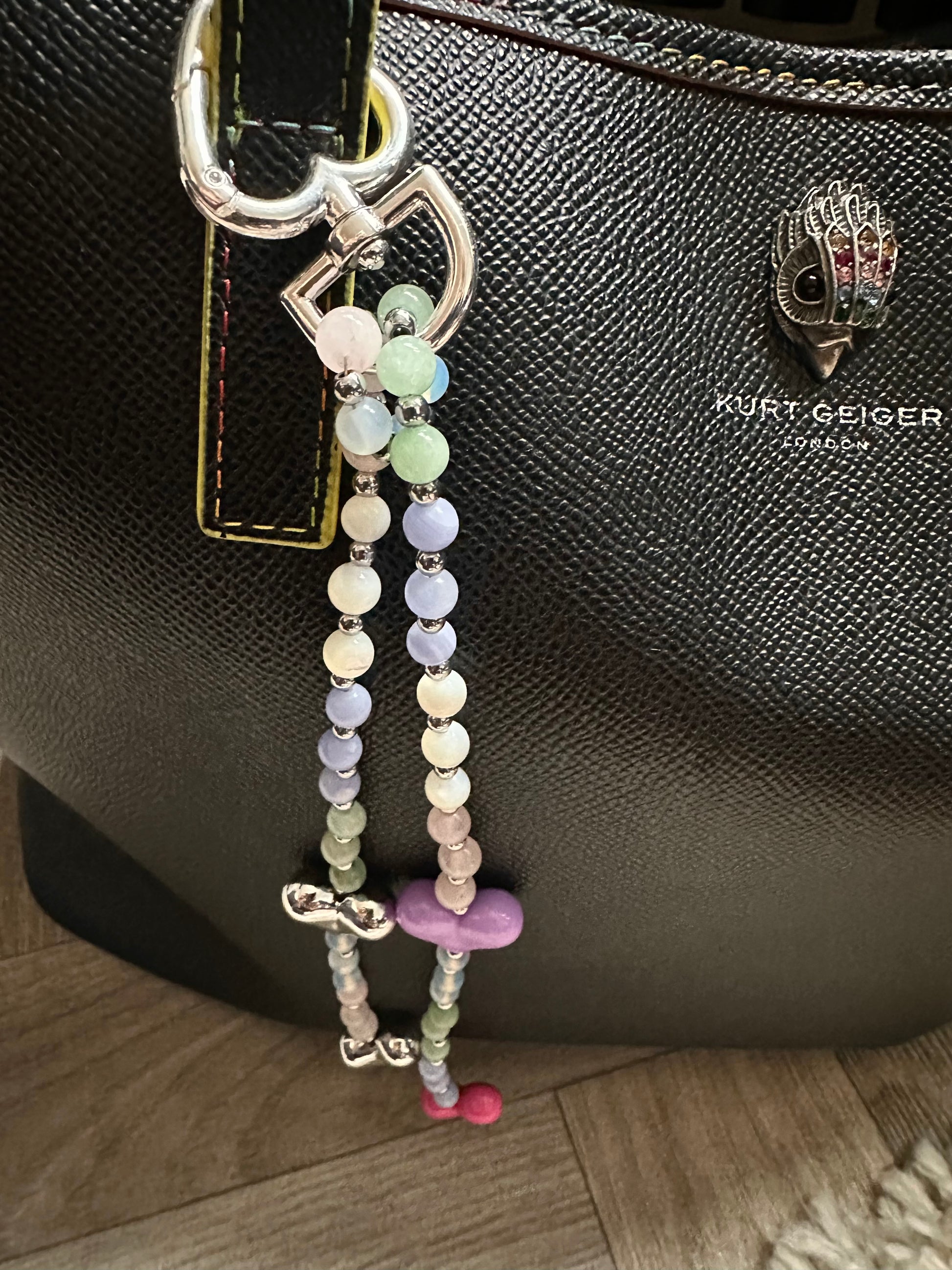 mixed gemstone bag charms available in pastel or rainbow mix with a gold or silver bag clip.