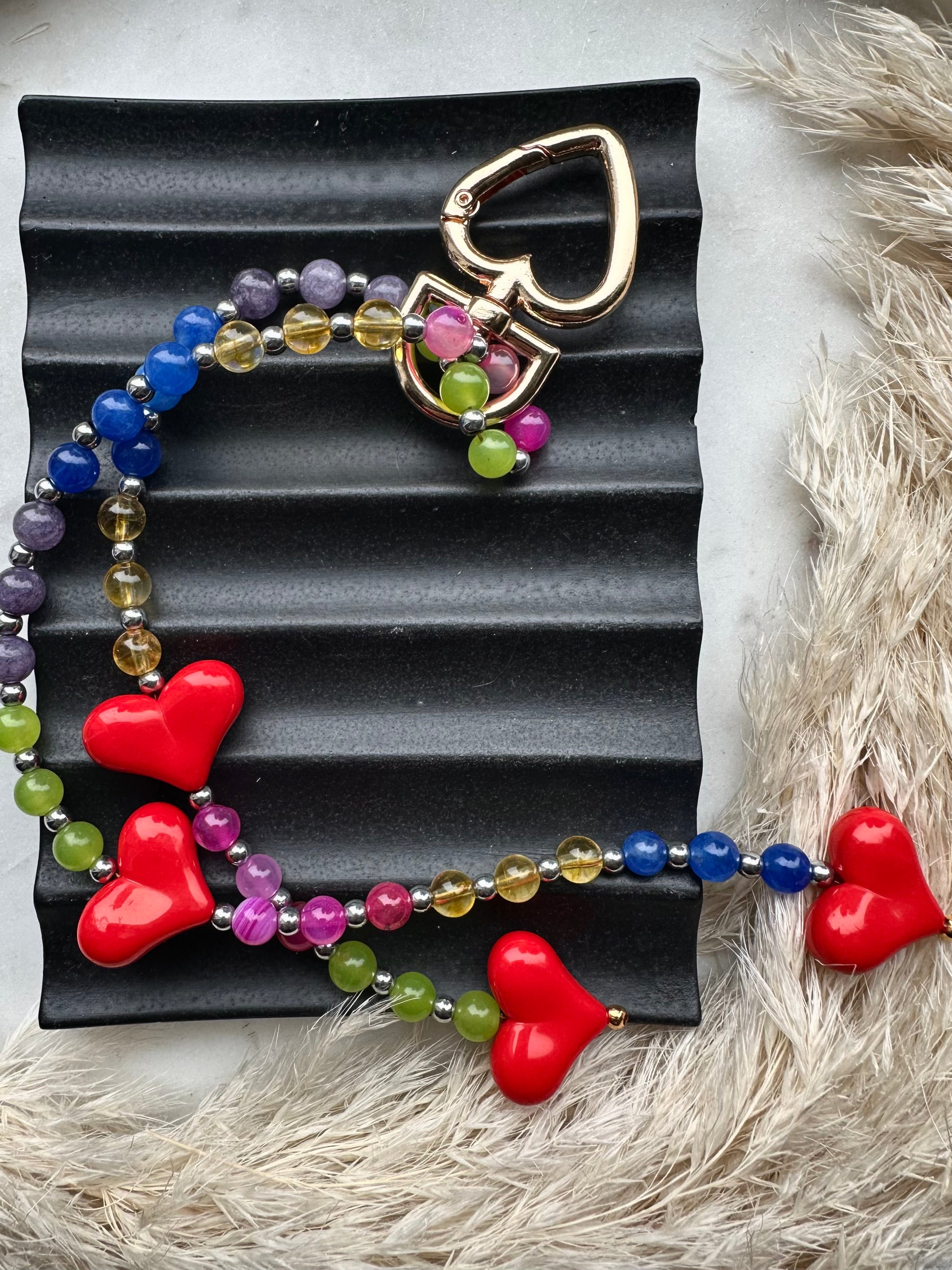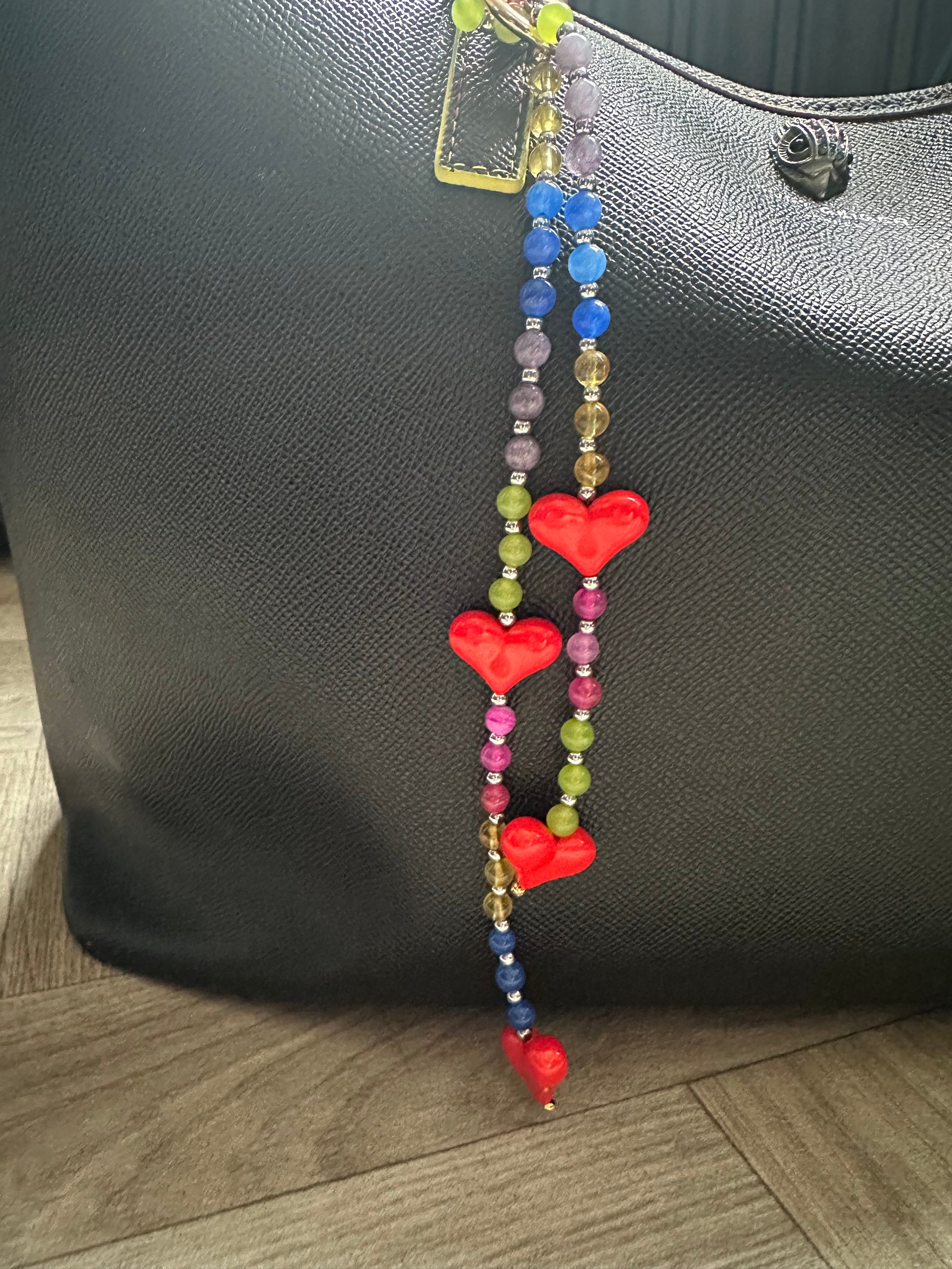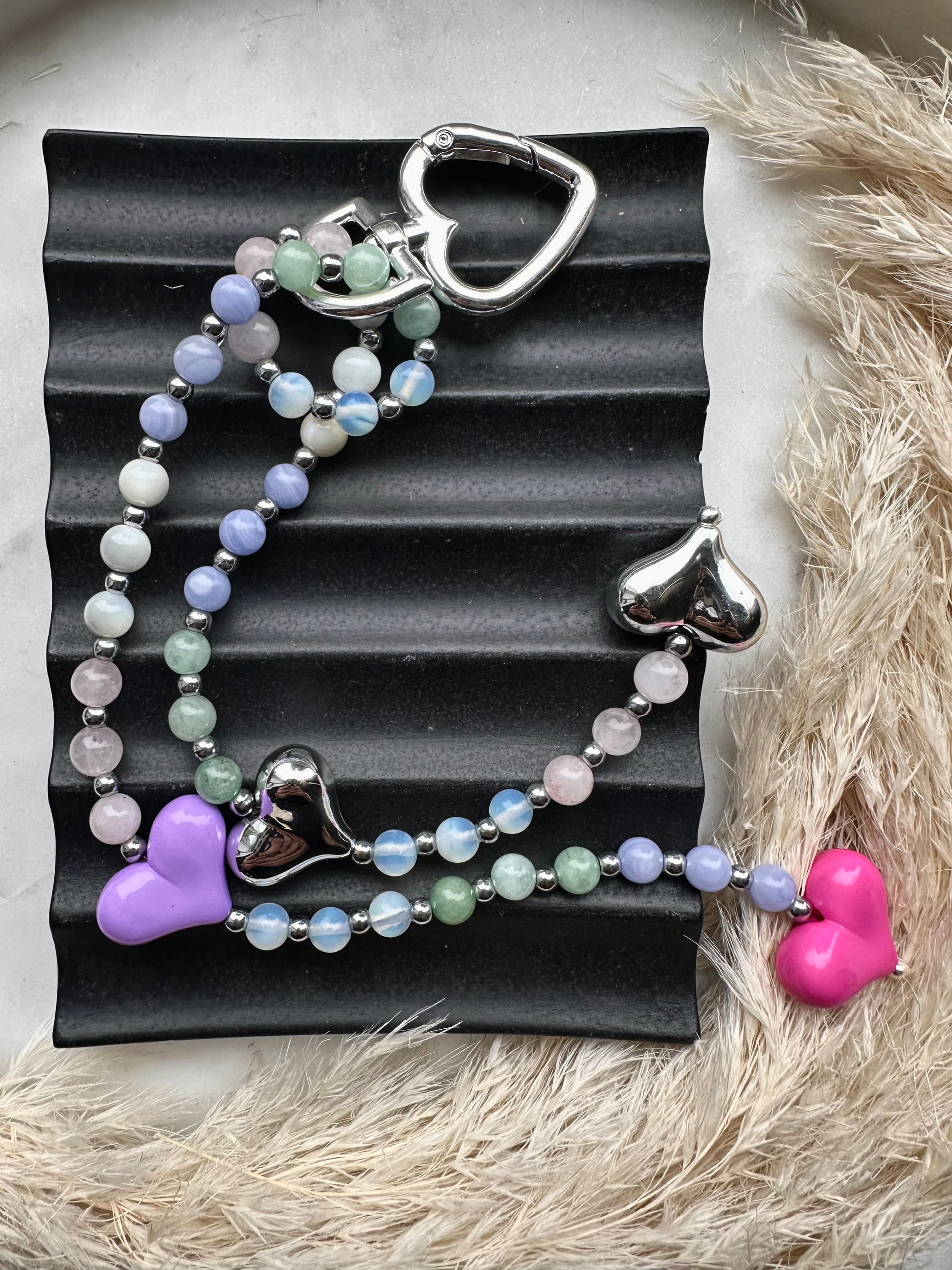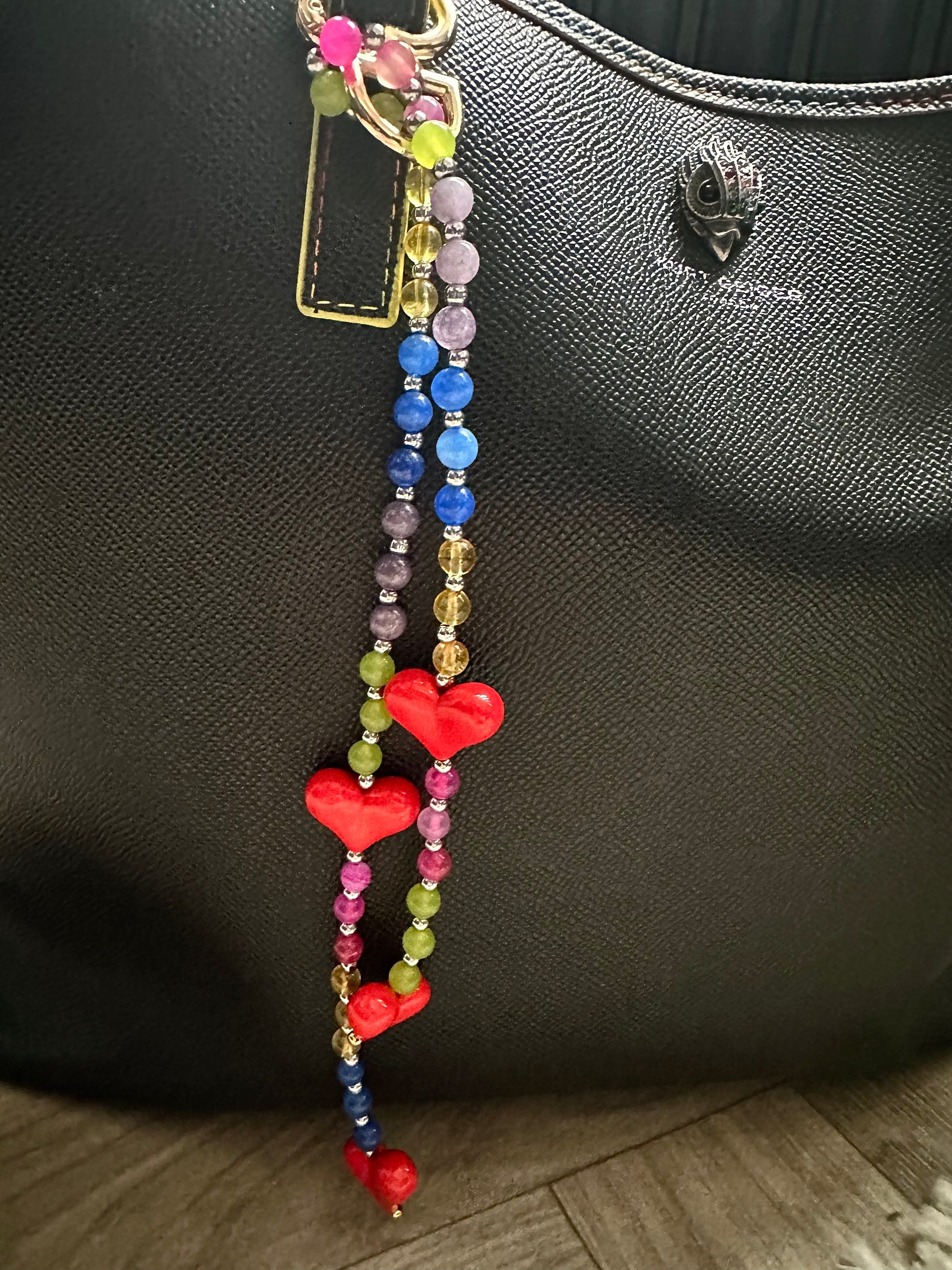 mixed gemstone bag charms available in pastel or rainbow mix with a gold or silver bag clip.