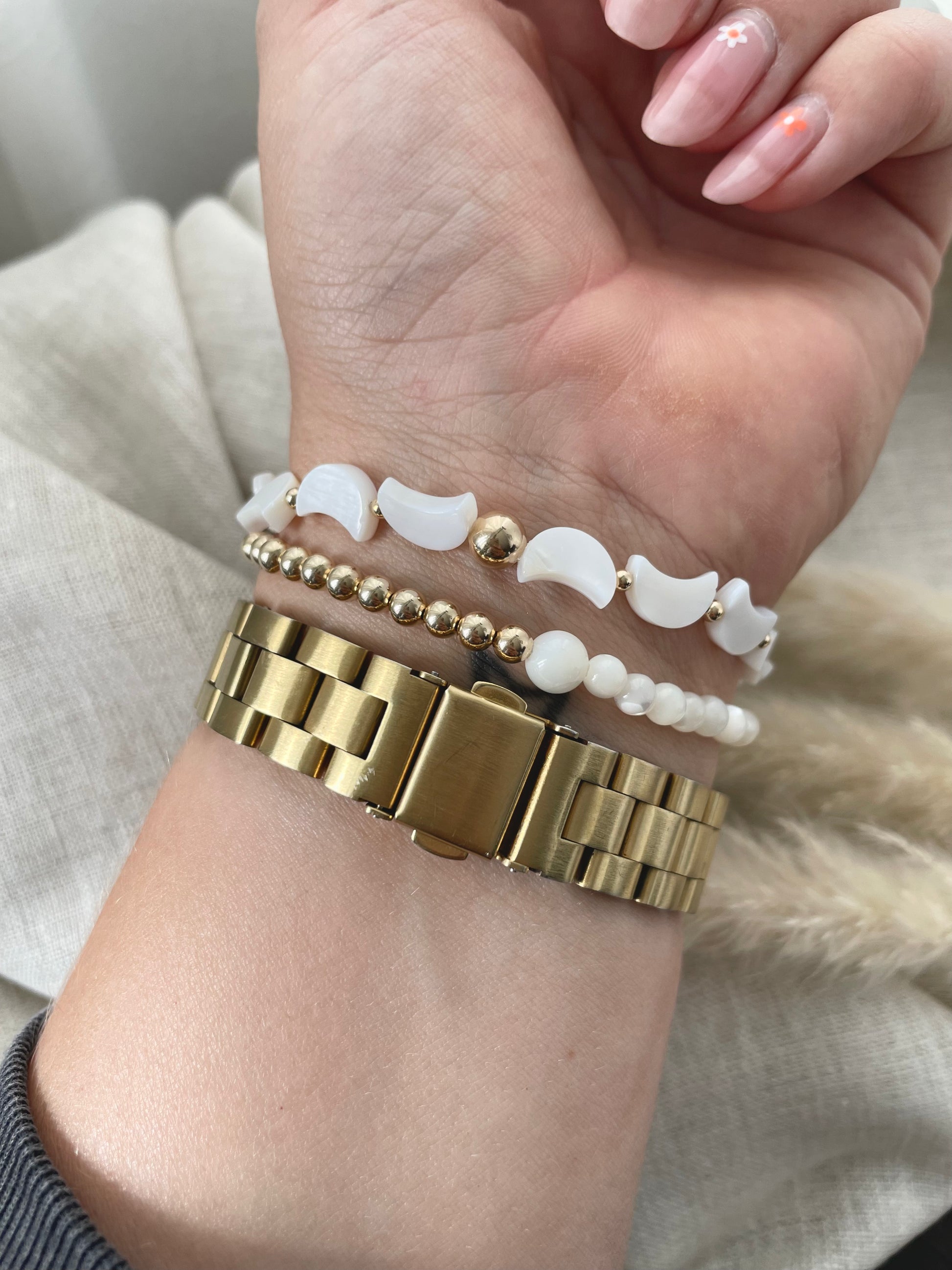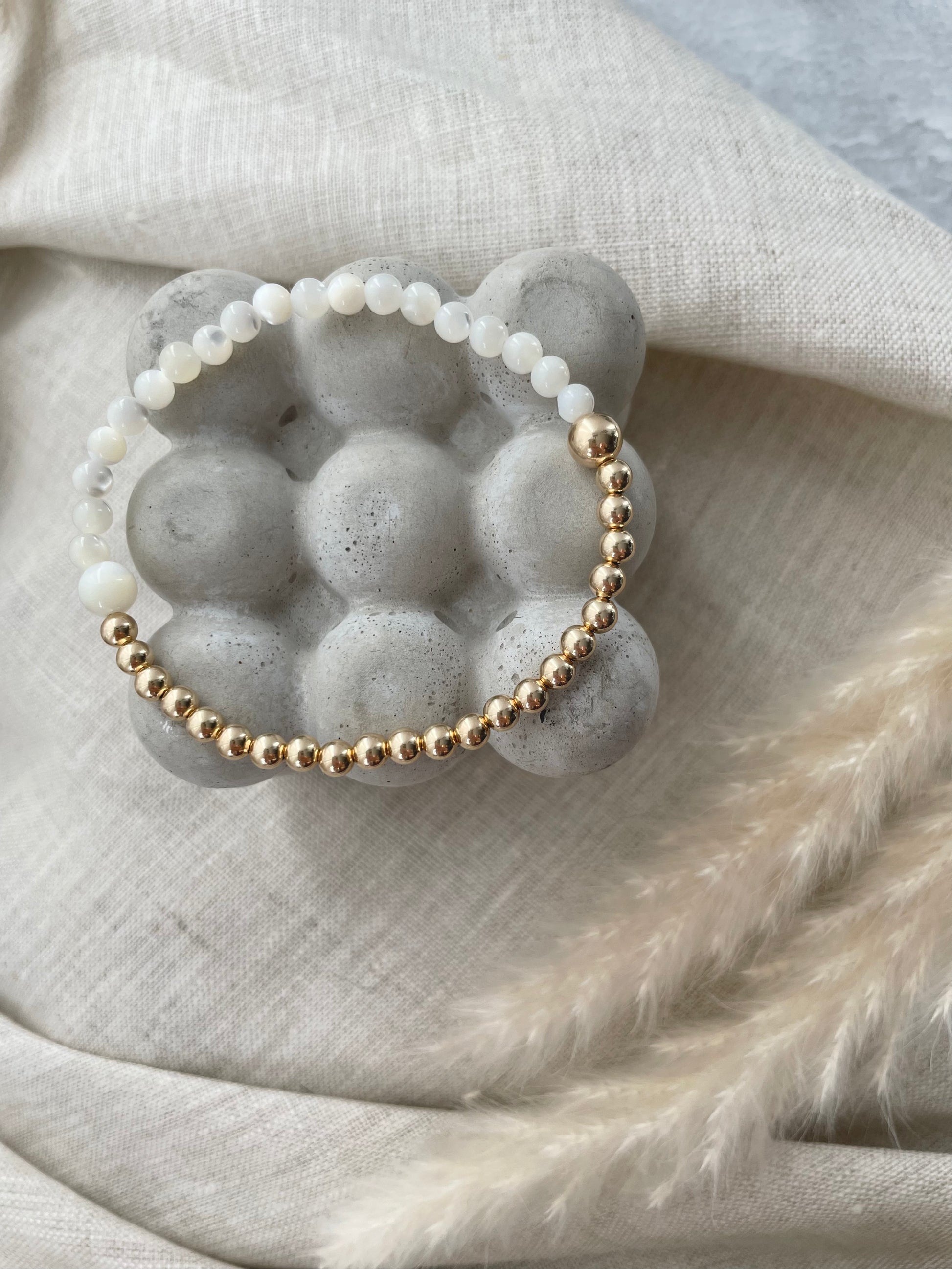 Gold filled & mother of pearl 4mm half & half bracelet - £22