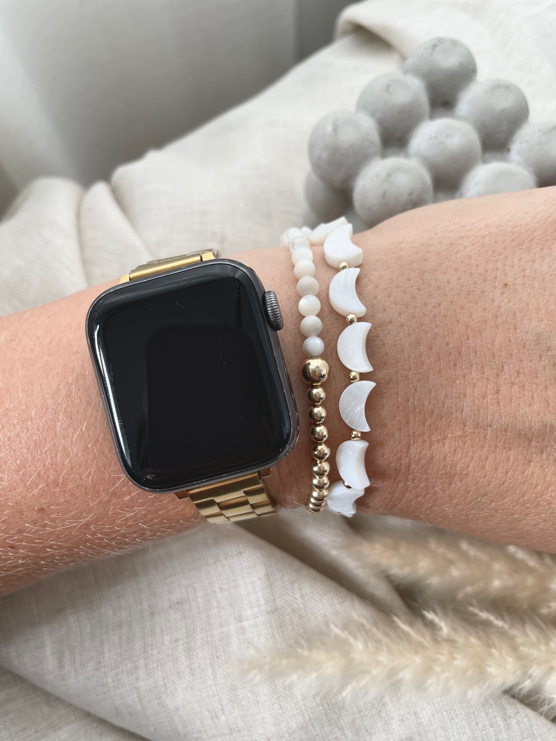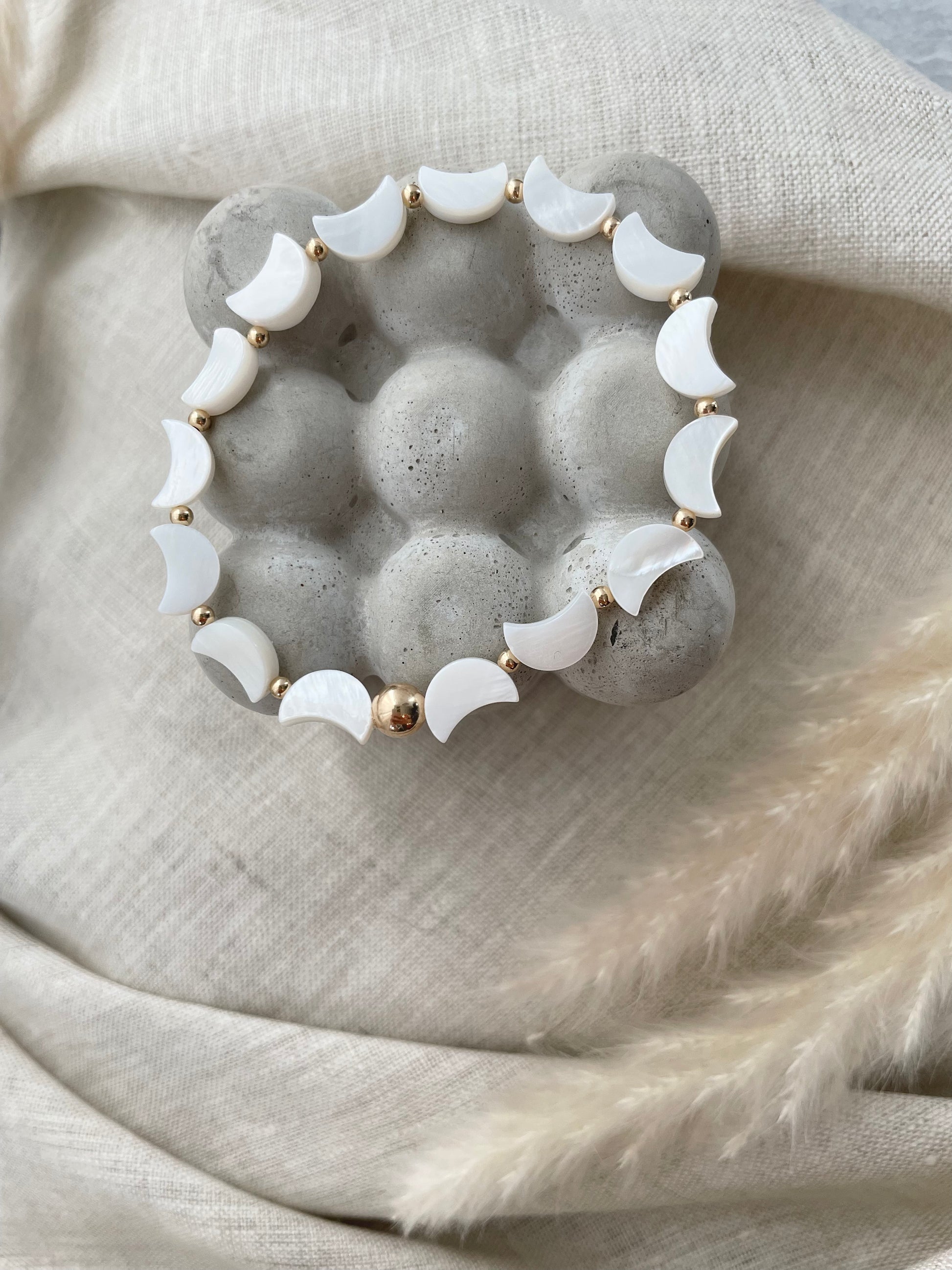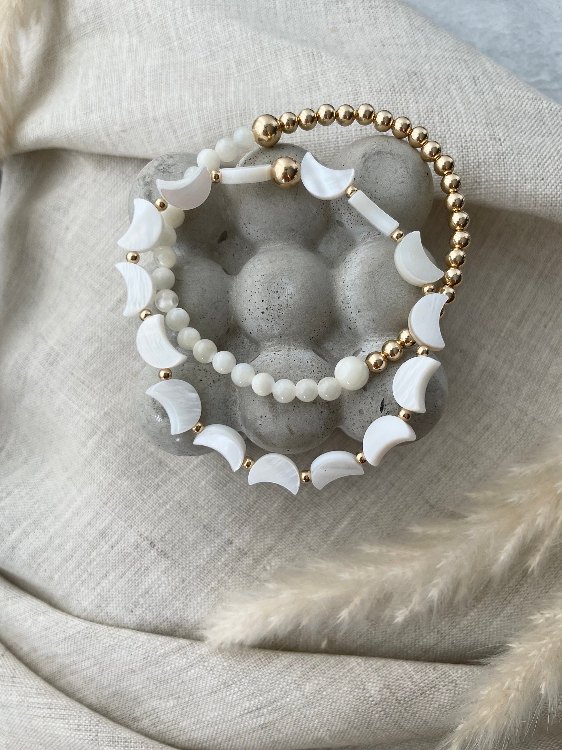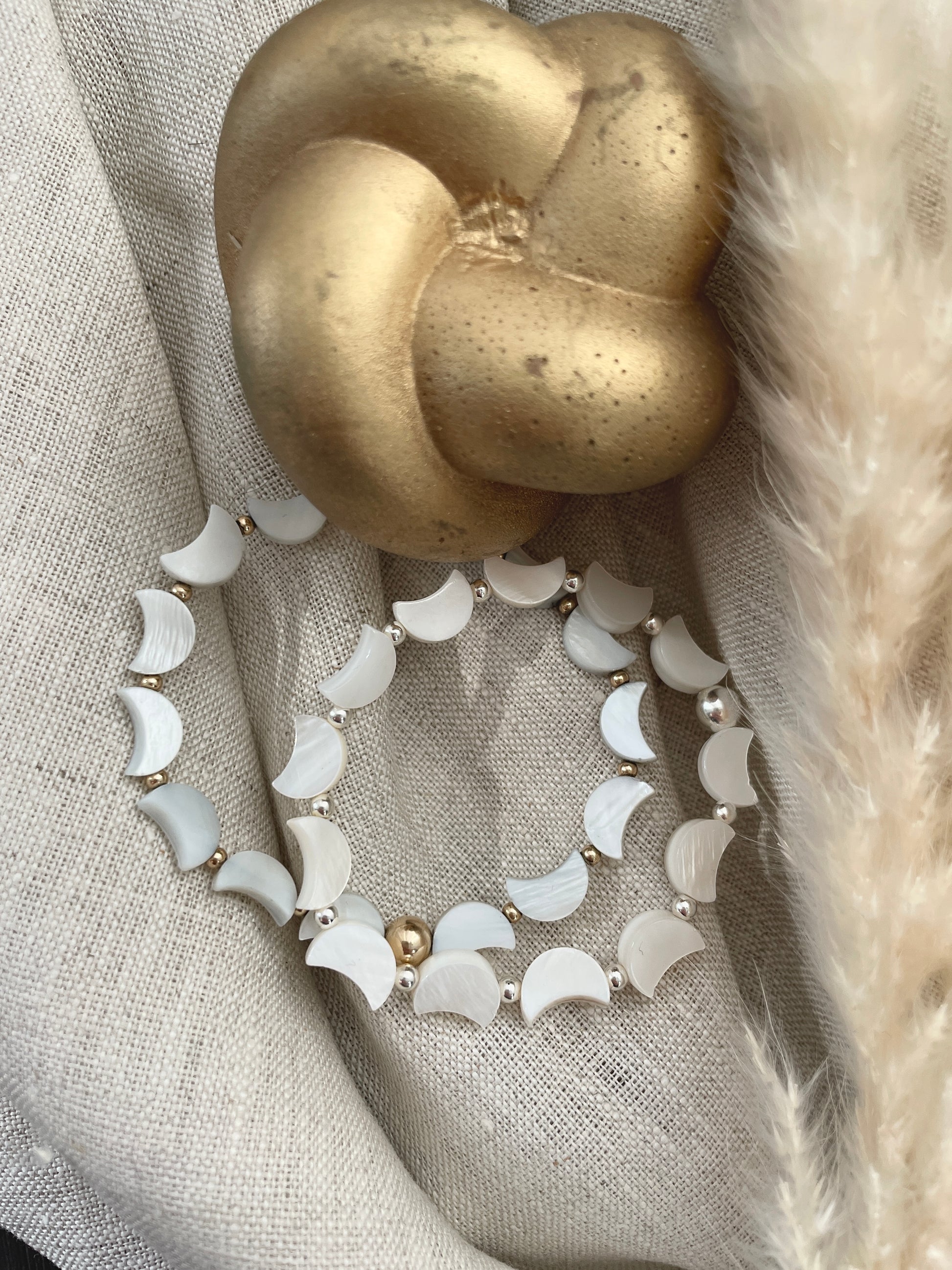 Mother of pearl moons with 2.5mm gold filled accent beads - £16