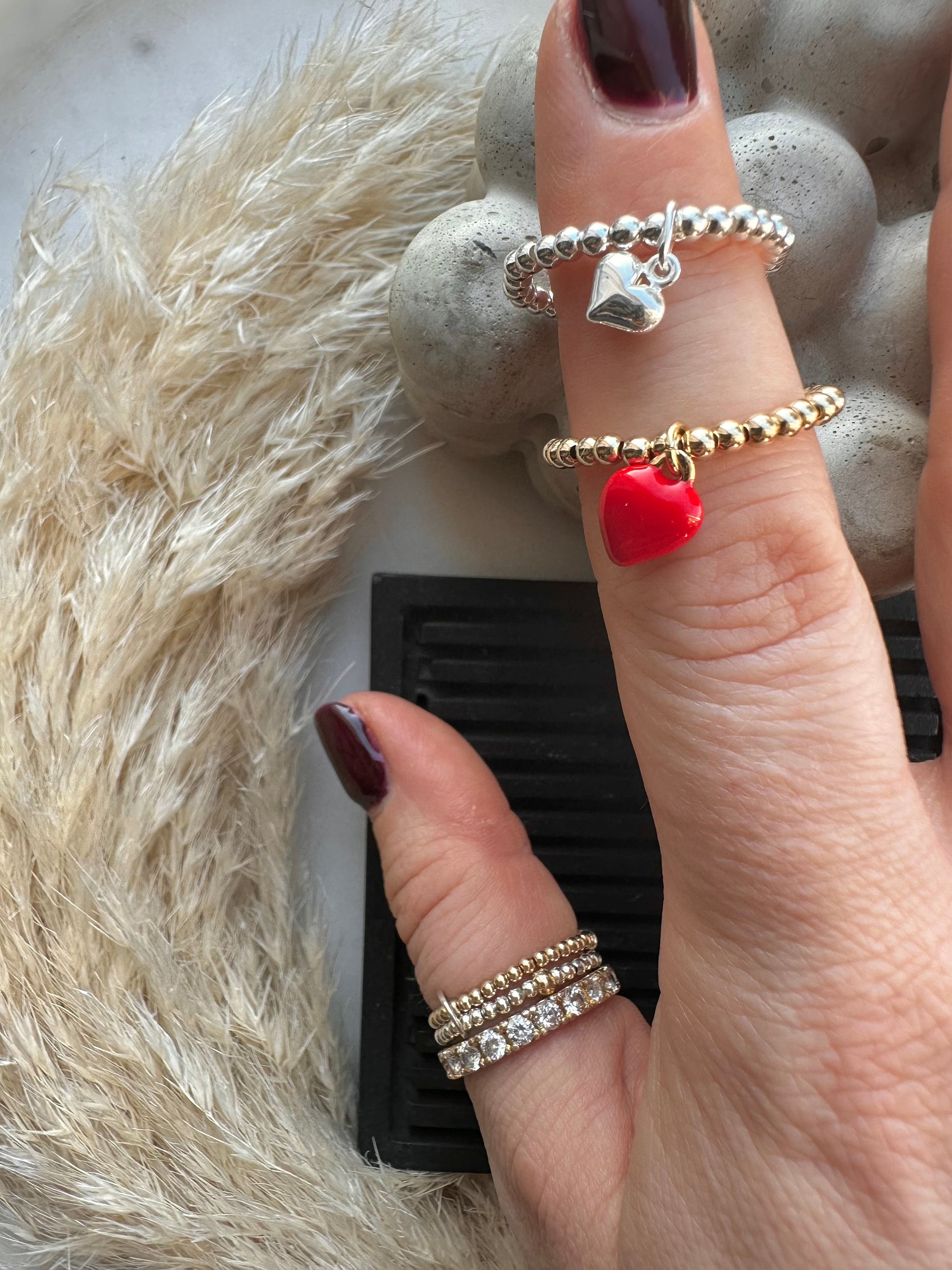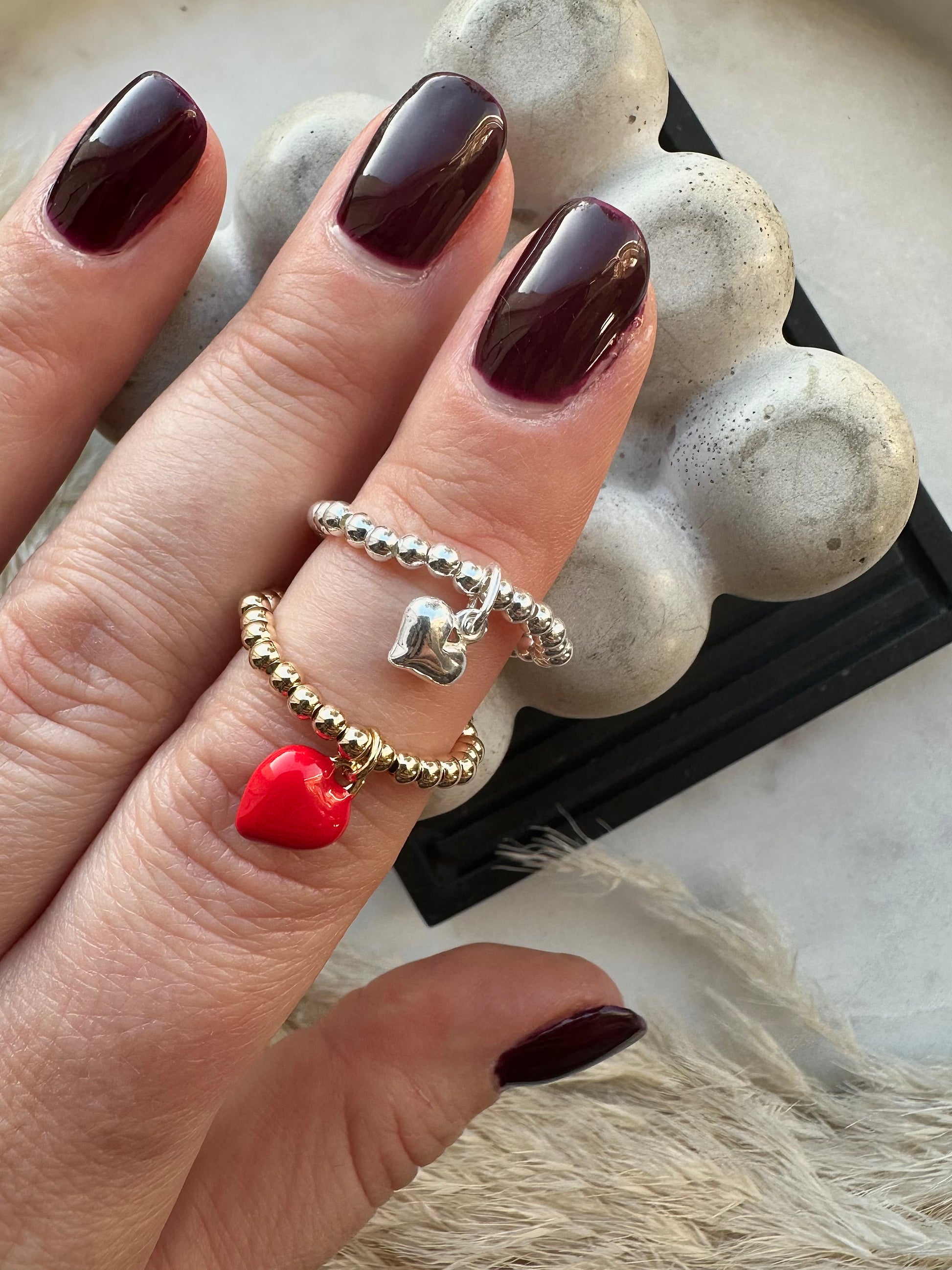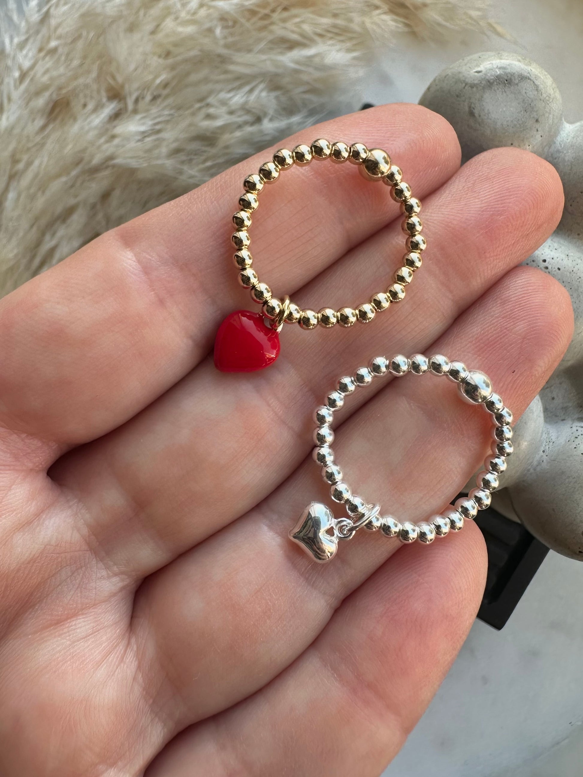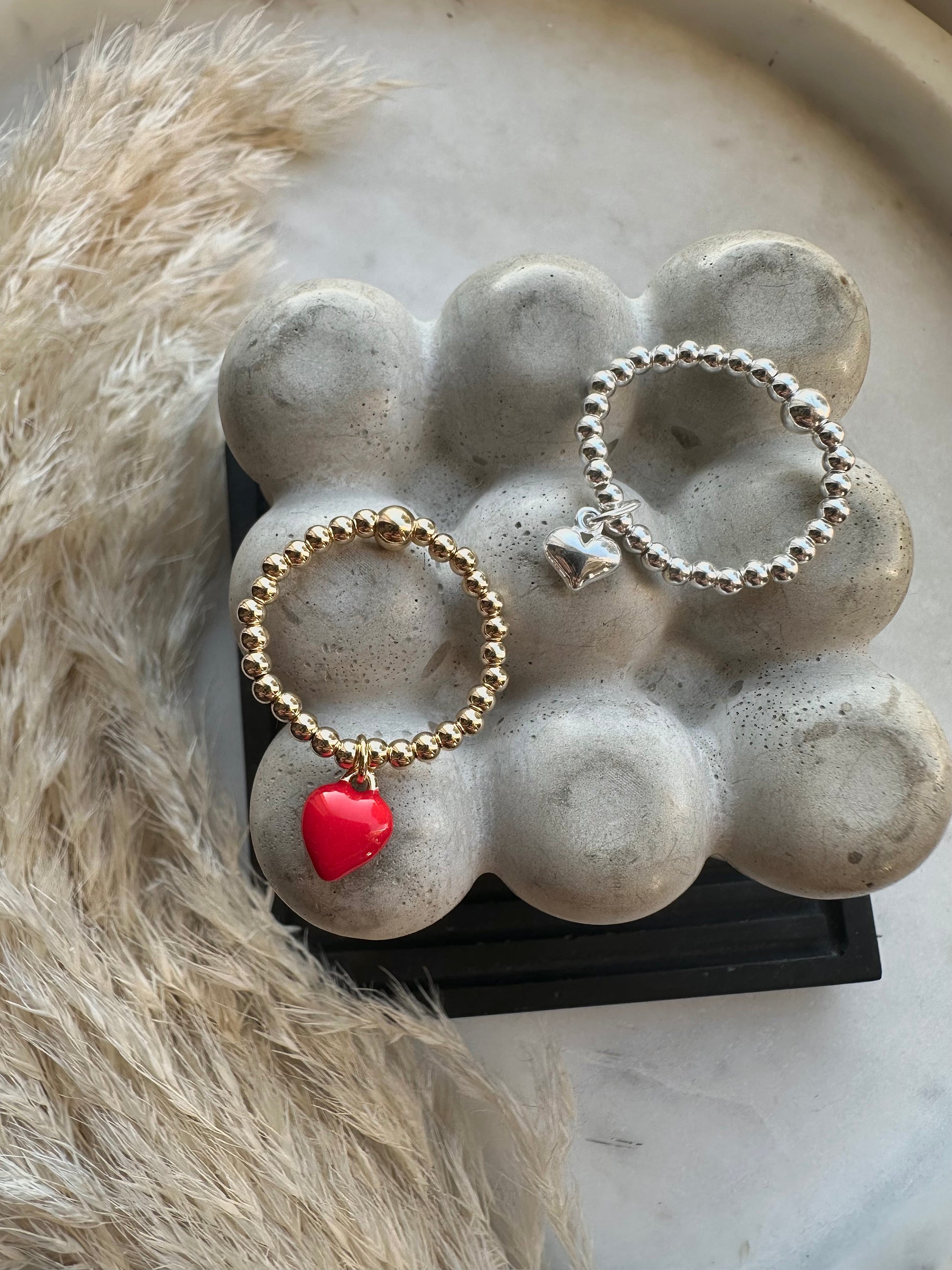 Choose from the classic sterling silver with a matching heart charm or go bold with the gold filled with red enamel heart charm.