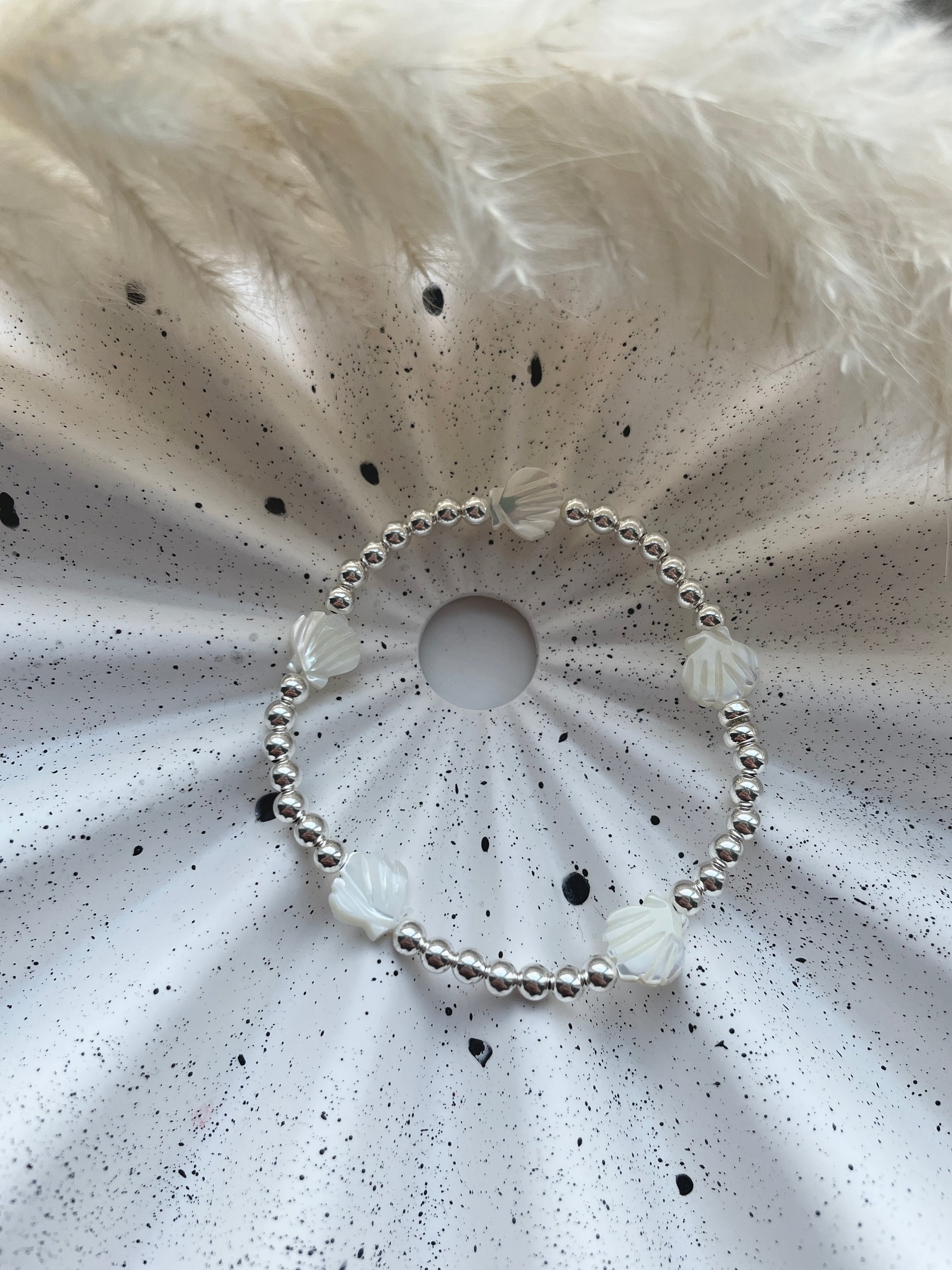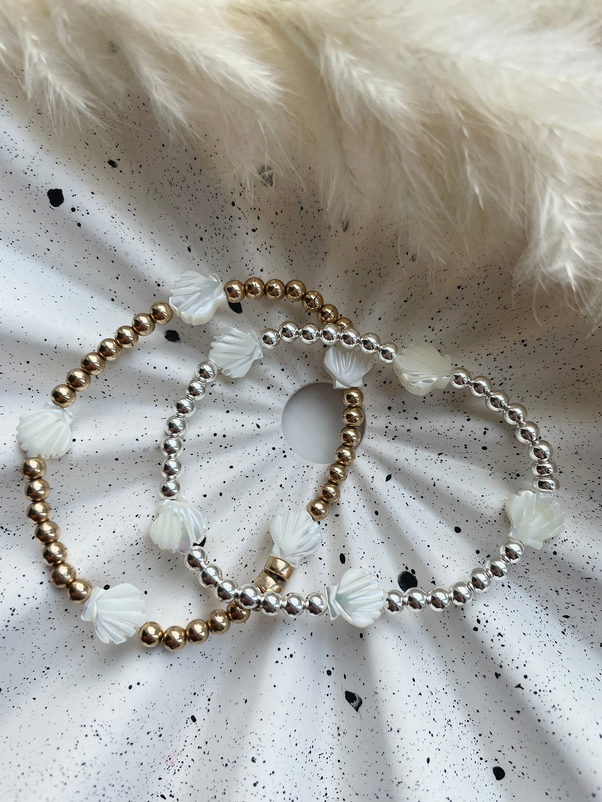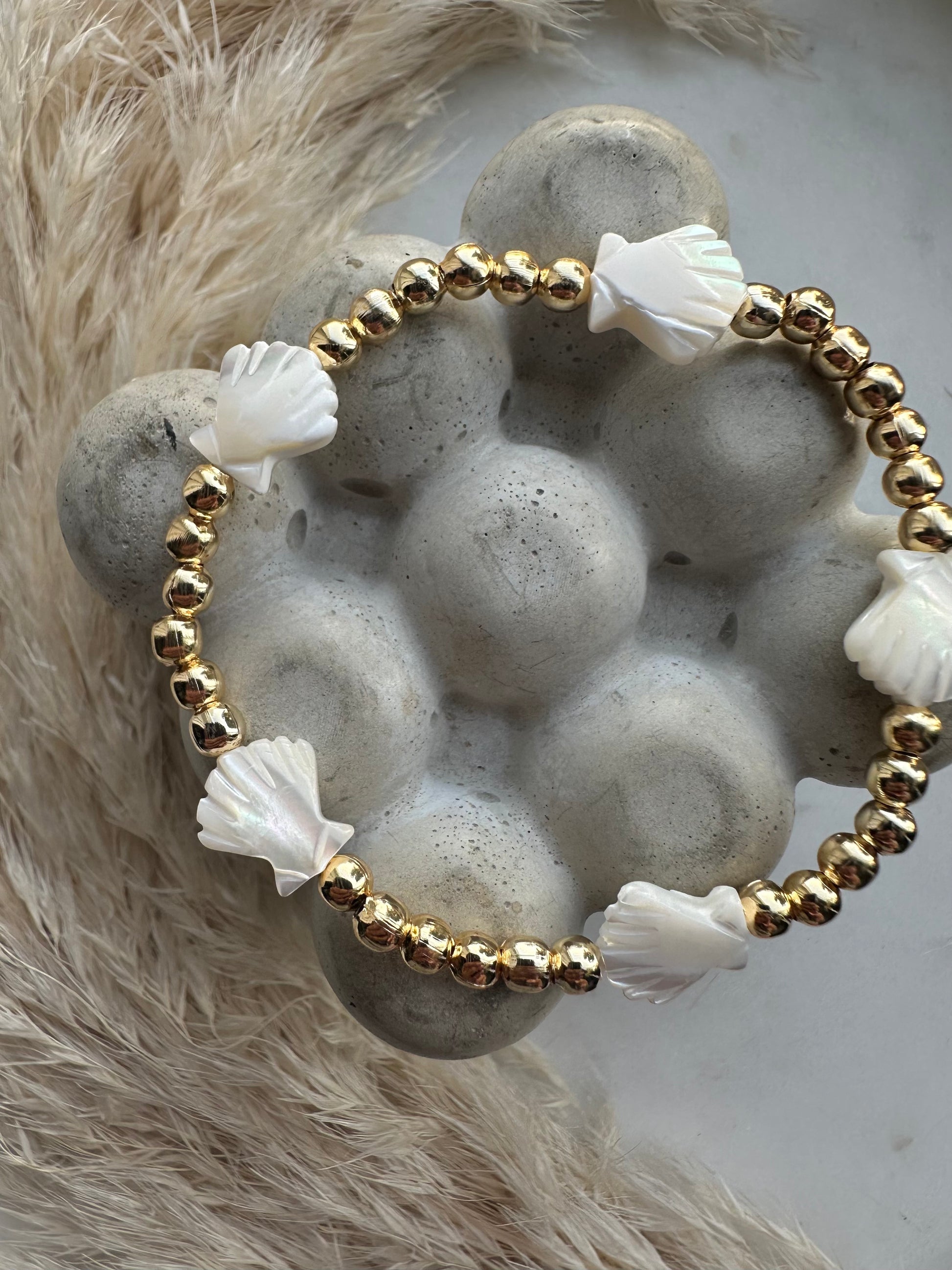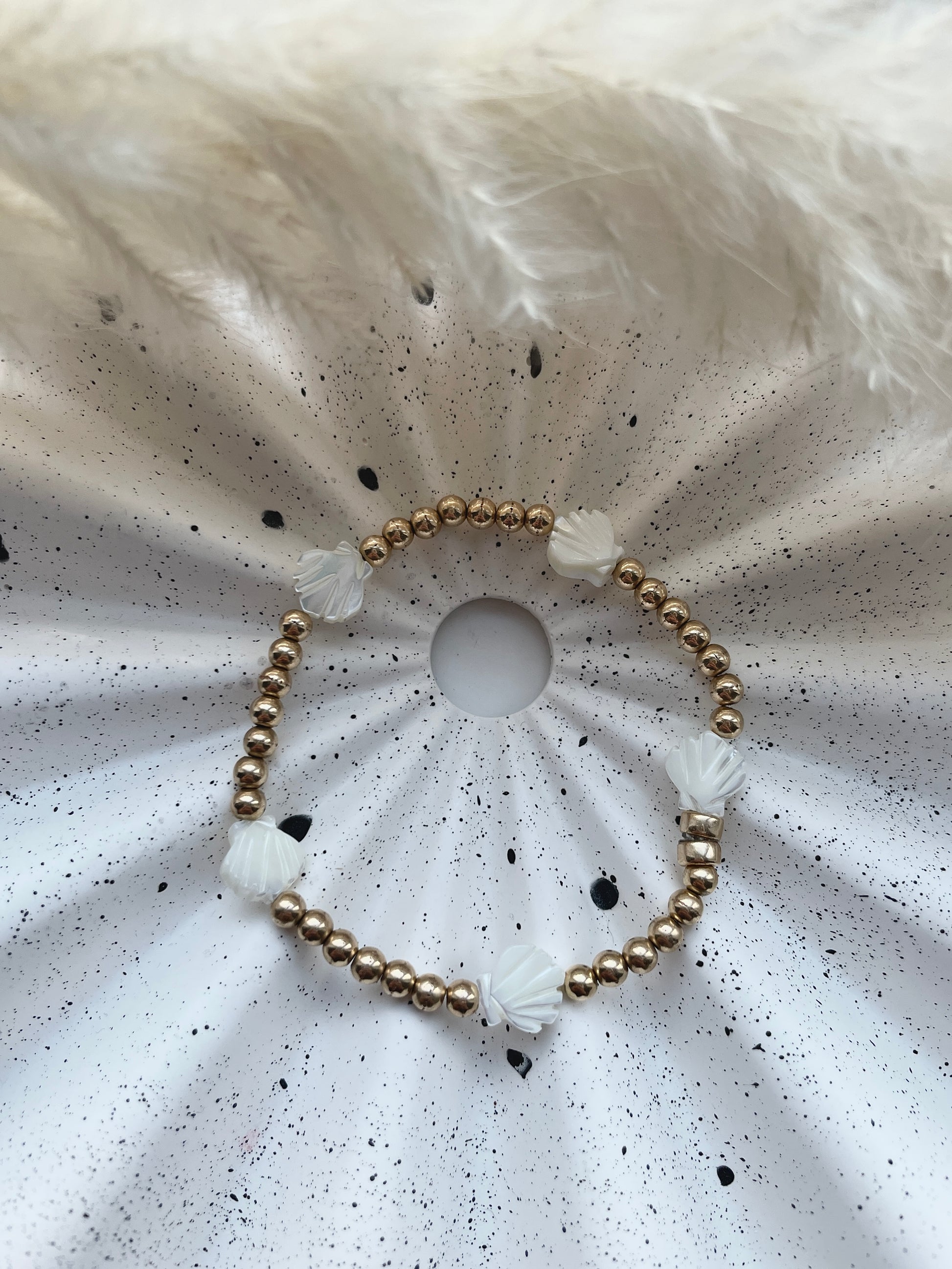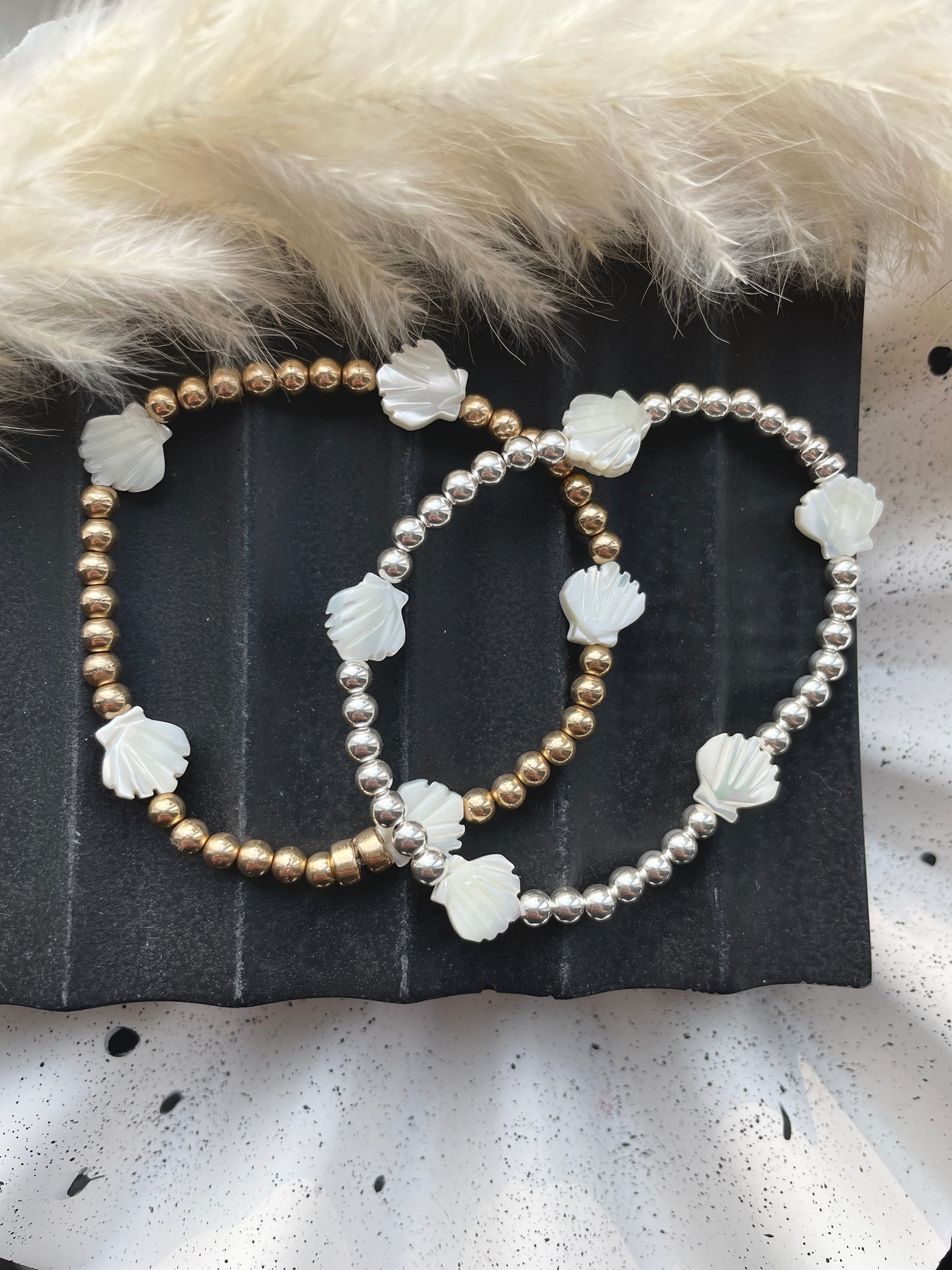 Mother of pearl shell beads paired with your choice of gold filled, sterling silver and gold or silver plated 4mm beads.