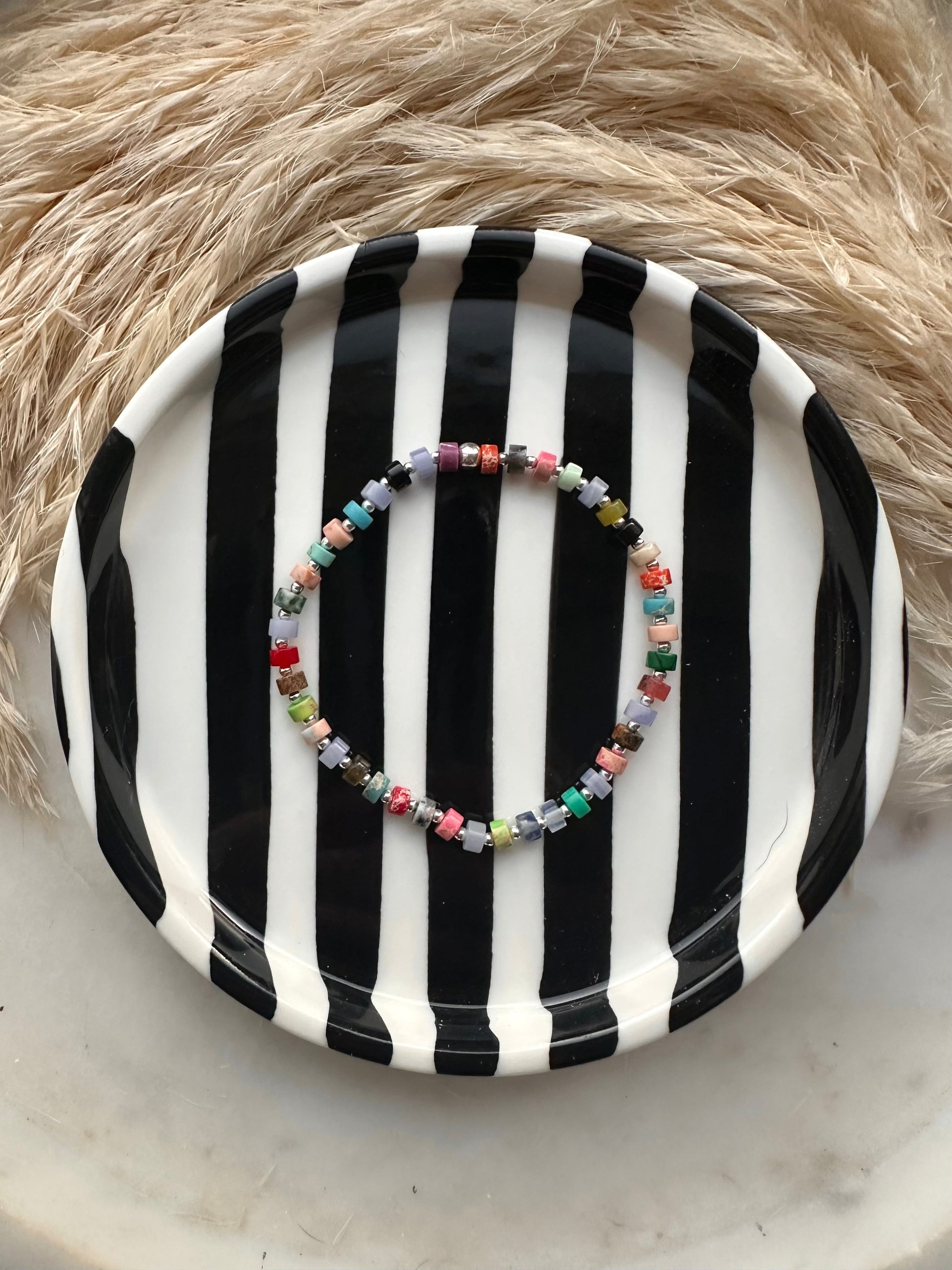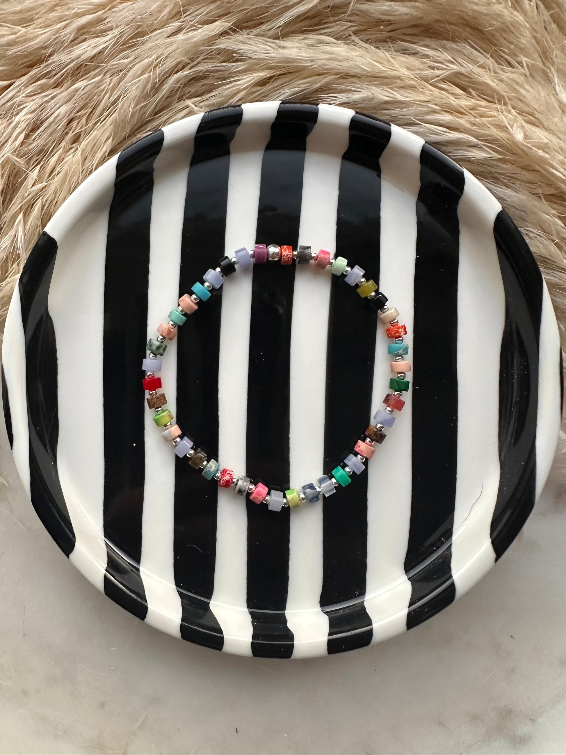 a kaleidoscope of rainbow gemstone rondelle beads paired with your choice of gold filled or sterling silver accents. the perfect addition to any wrist stack if you ask me!