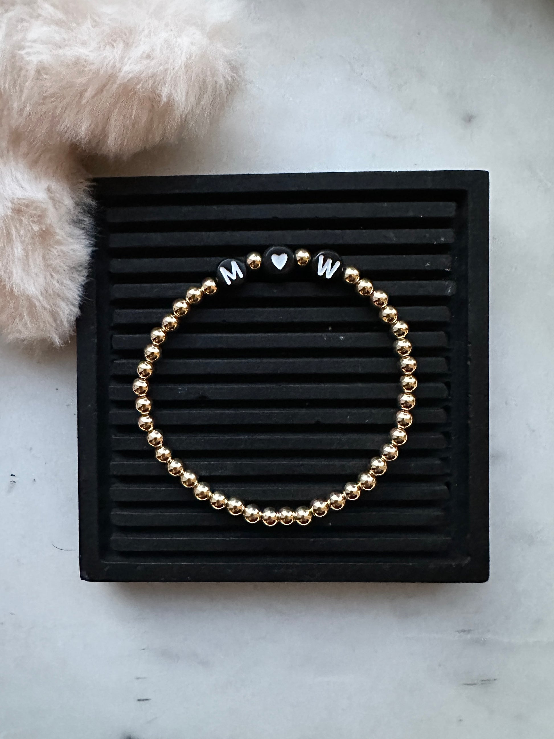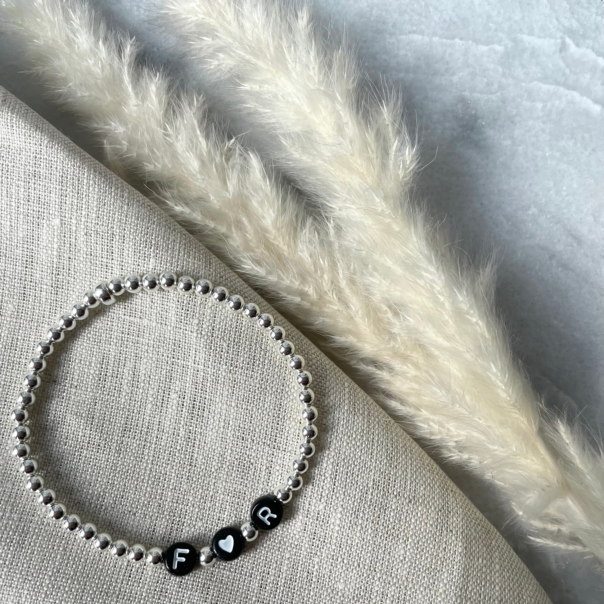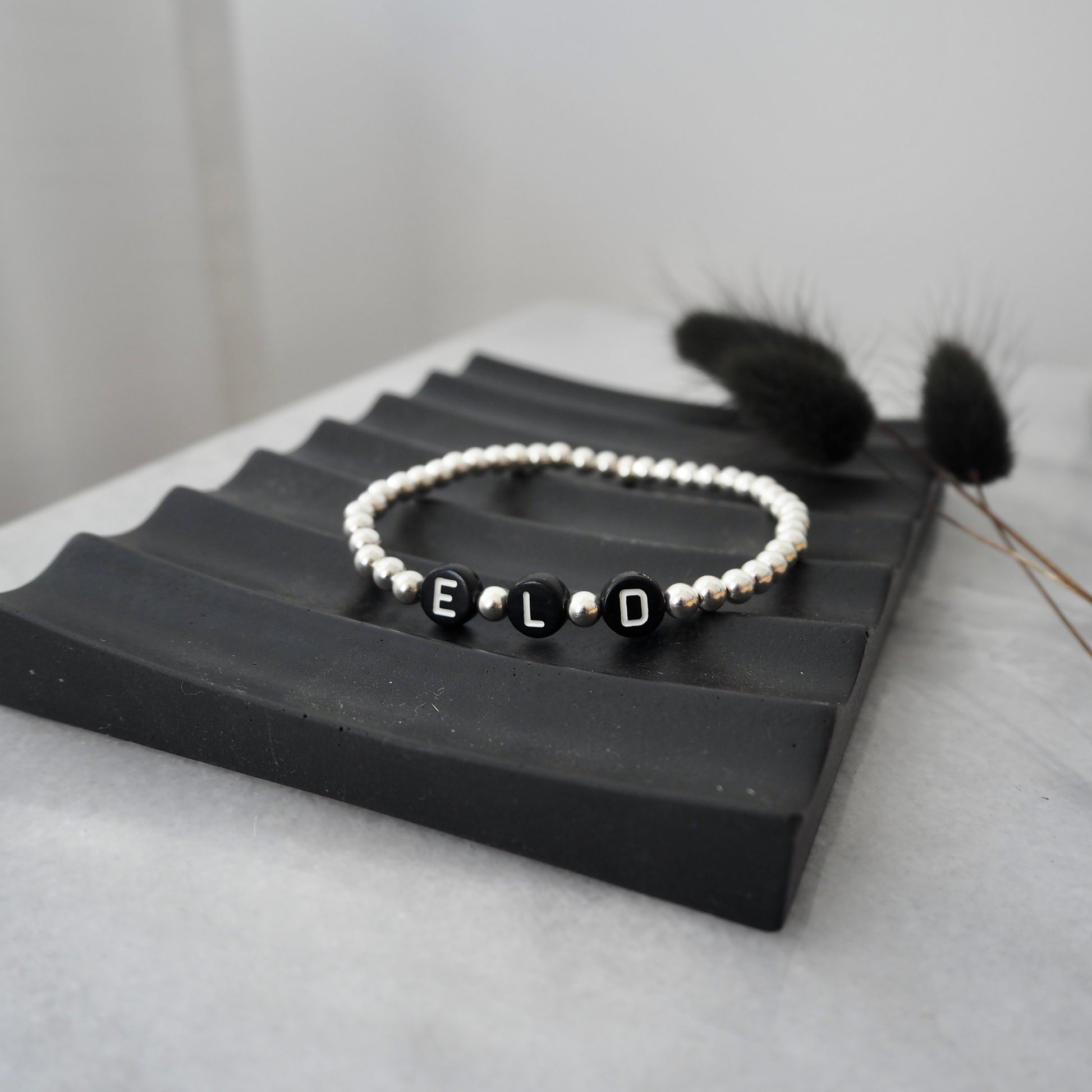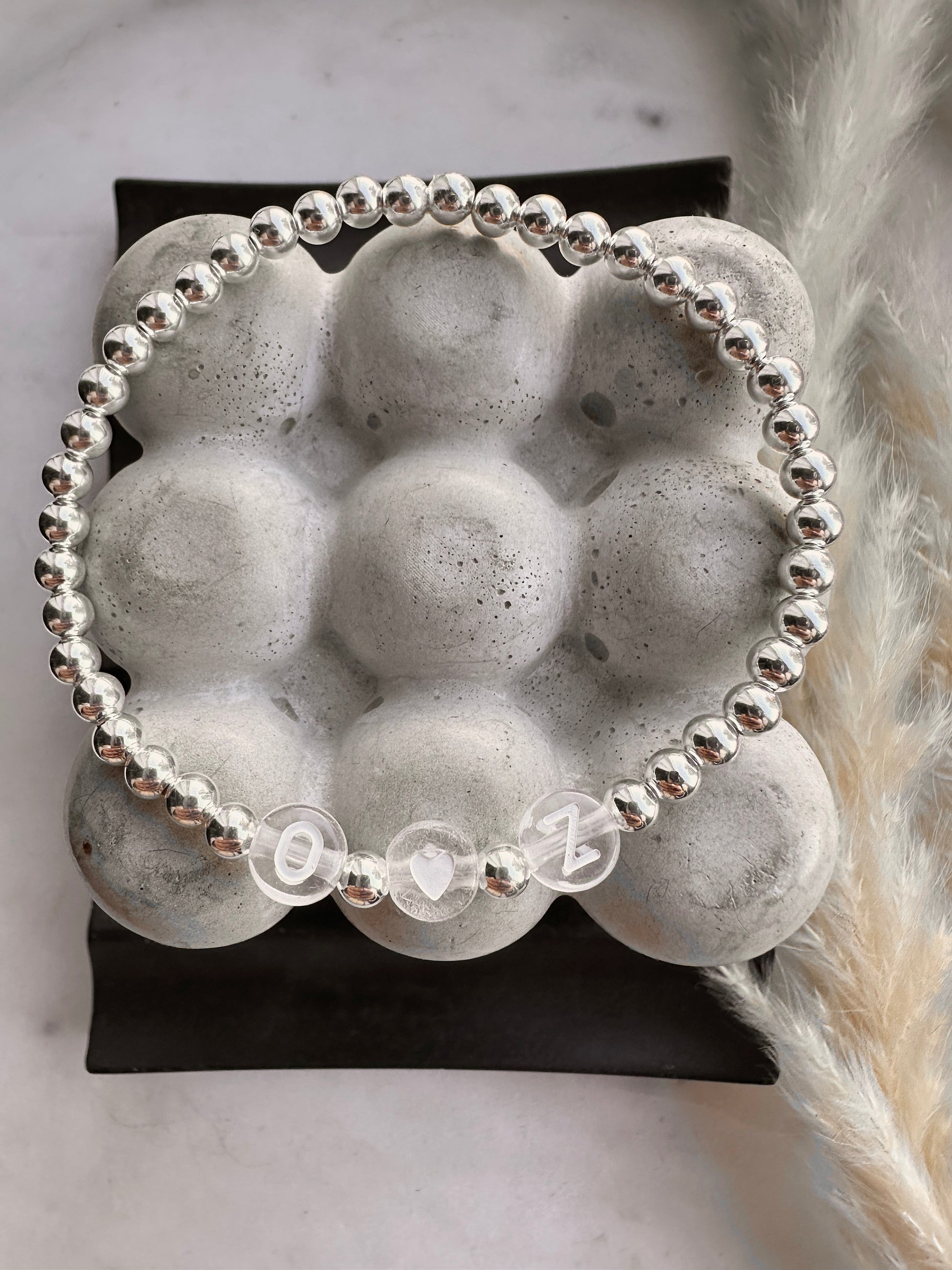 Gold filled or sterling silver 4mm beads and your choice of personalisation.
