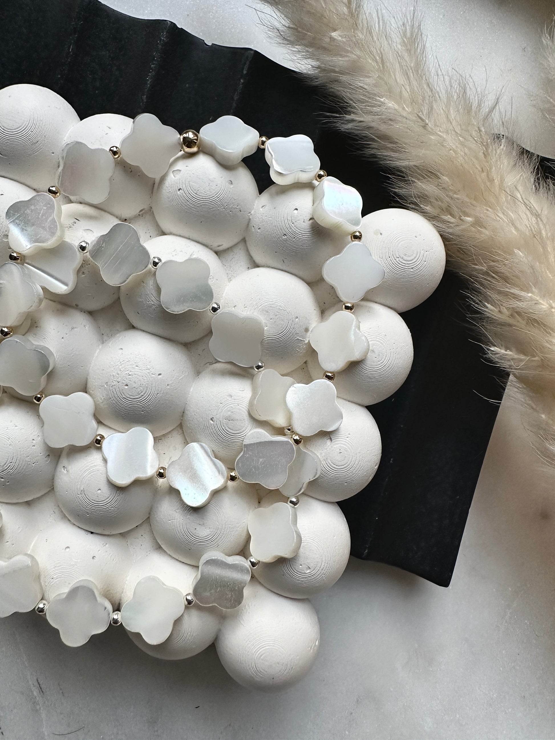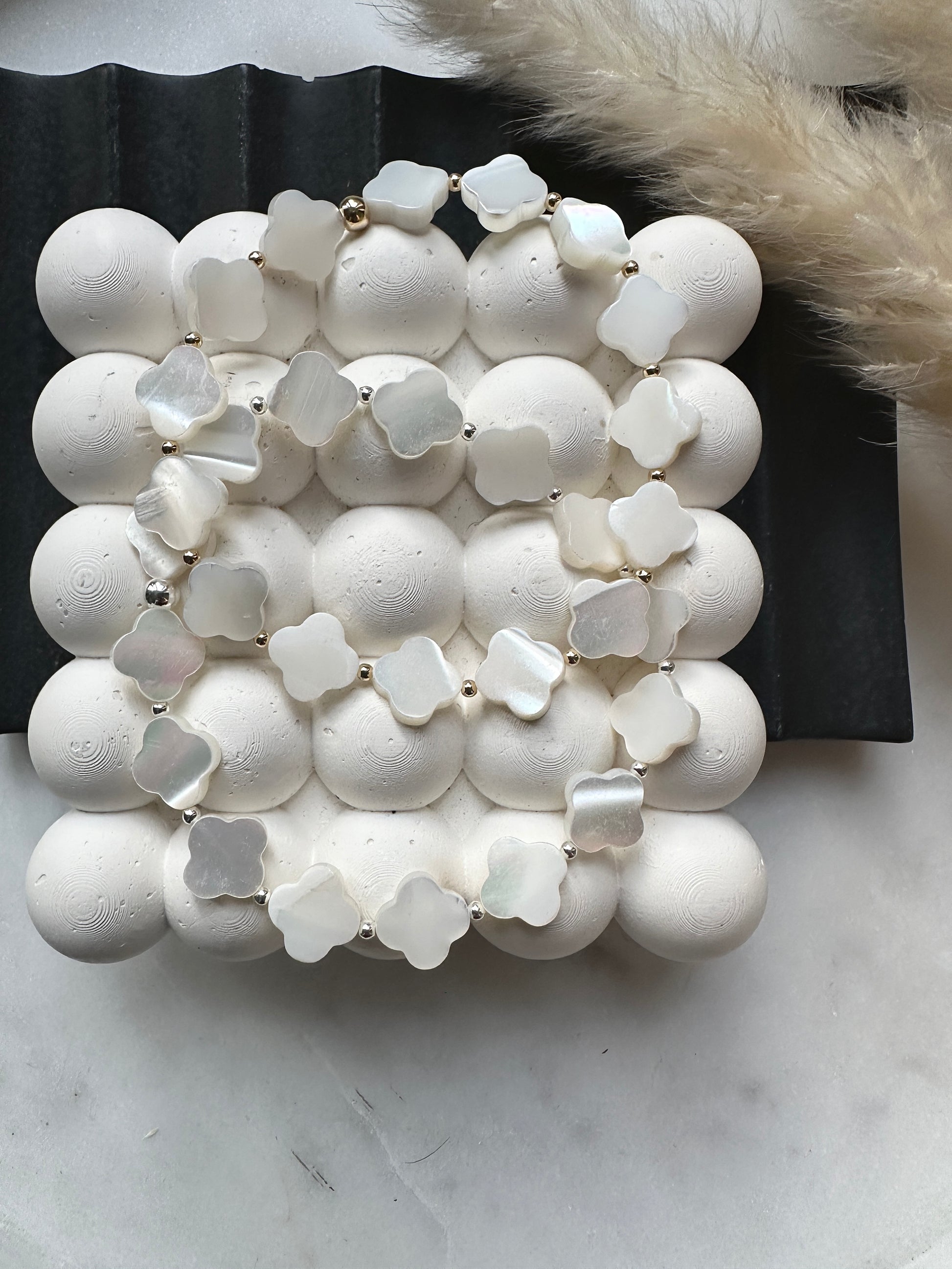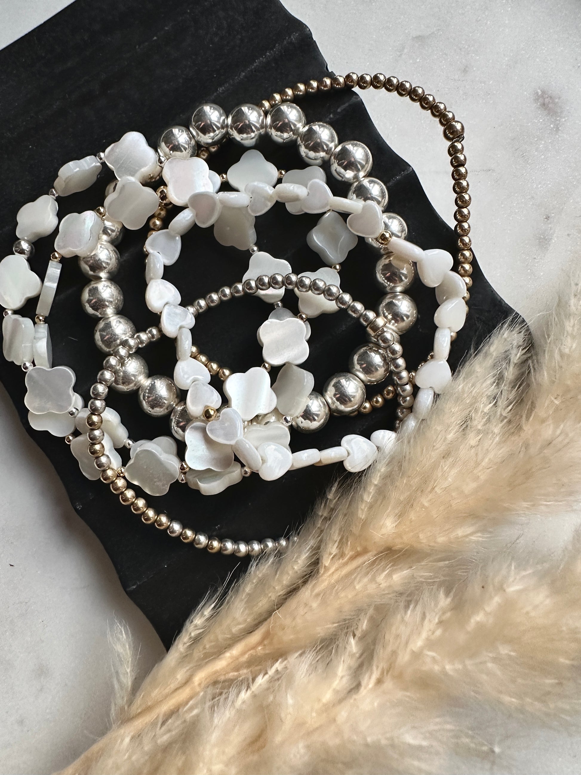 10mm mother of pearl clover beads with your choice of sterling silver or gold filled 2mm beads.