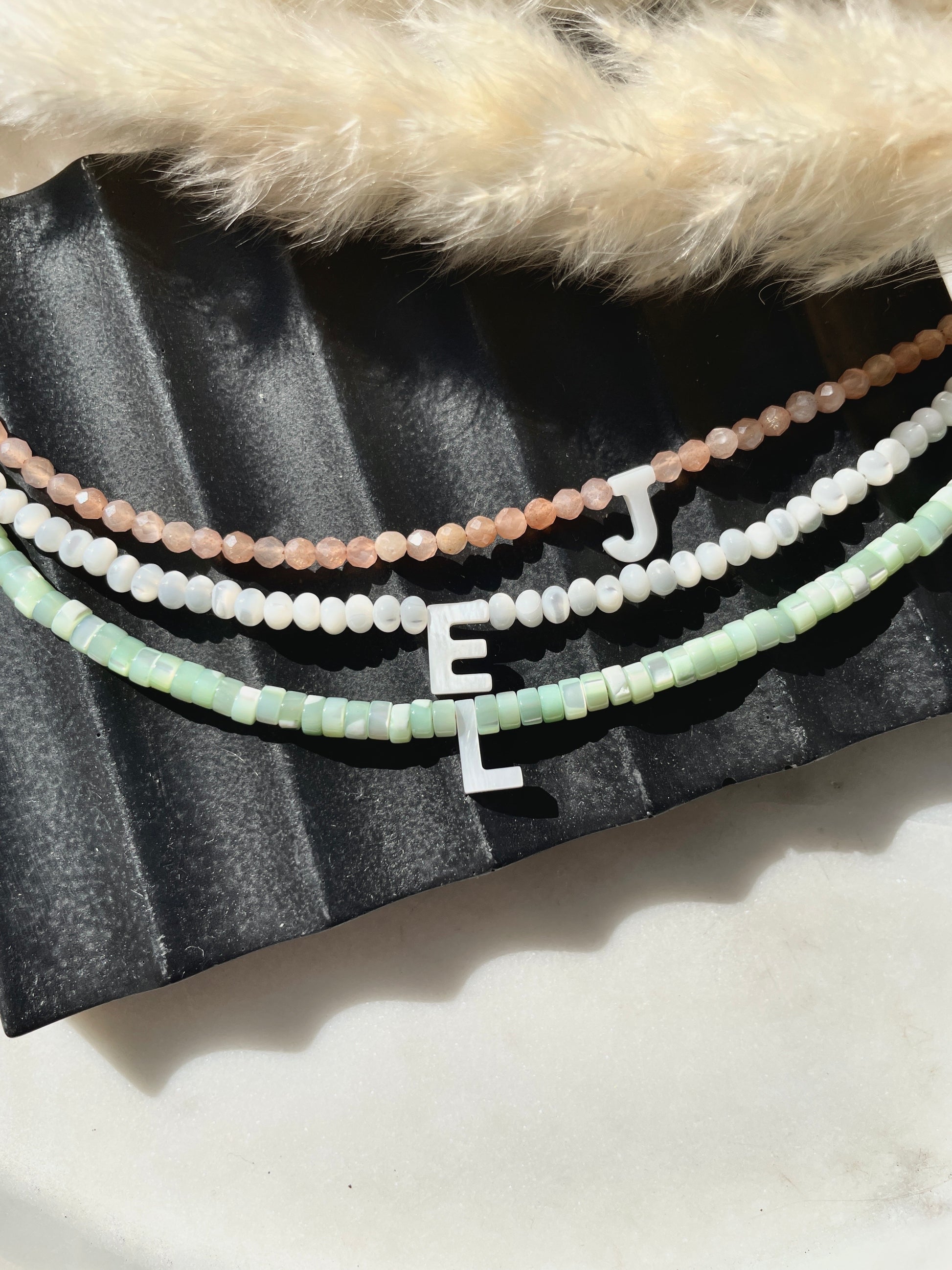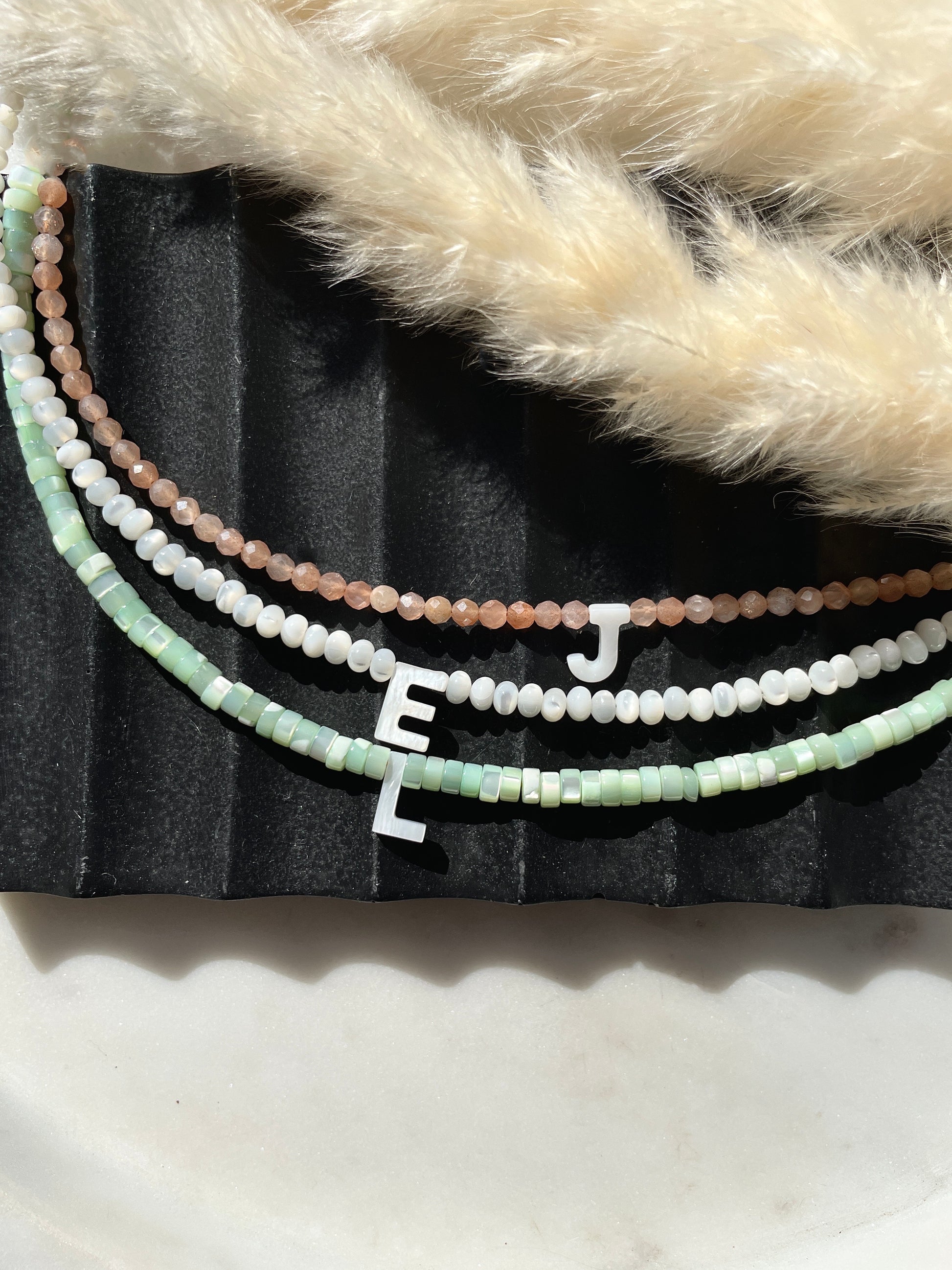 16” choker style gemstone necklace. Available with gold filled or sterling silver clasp fastening.