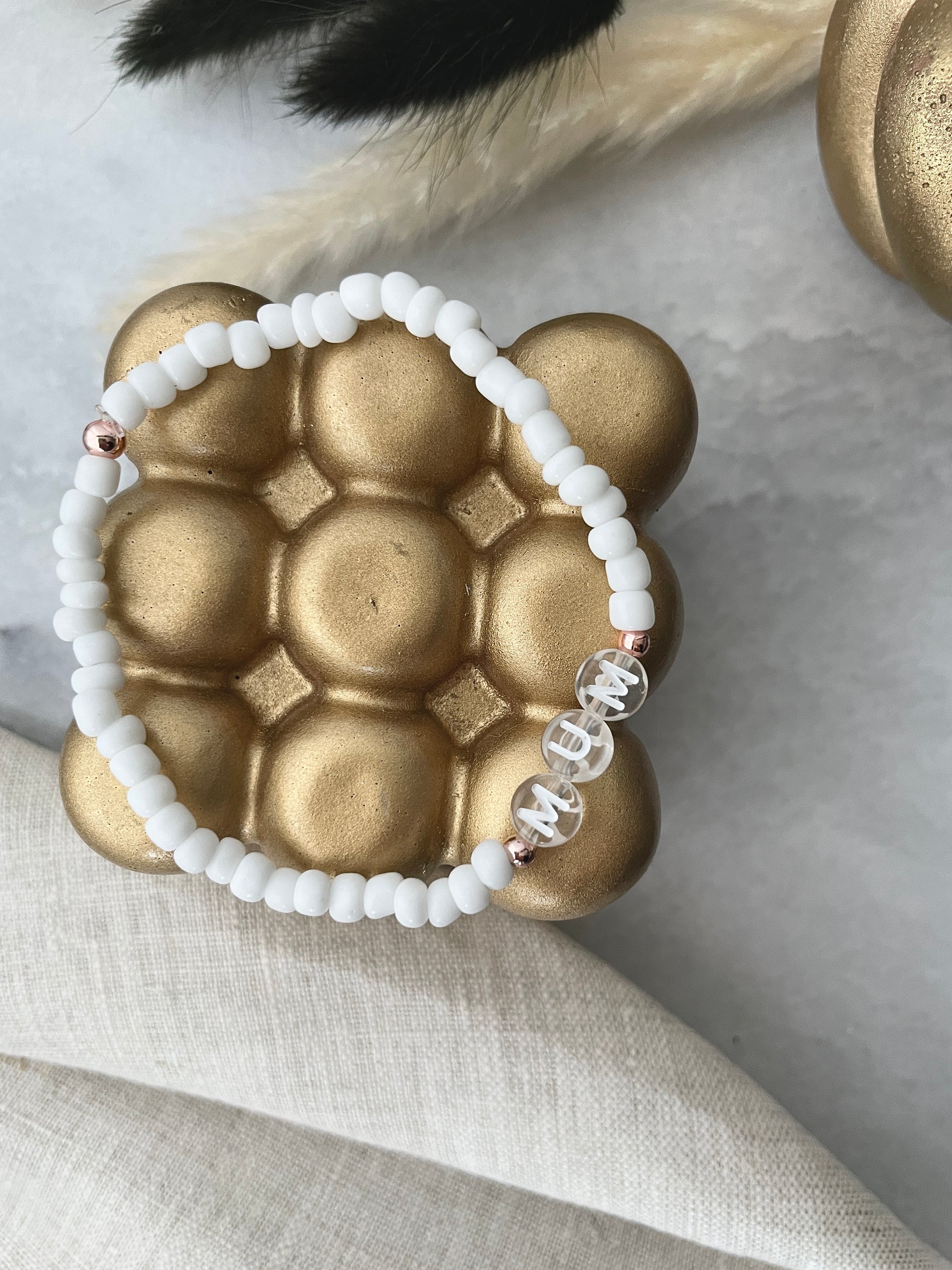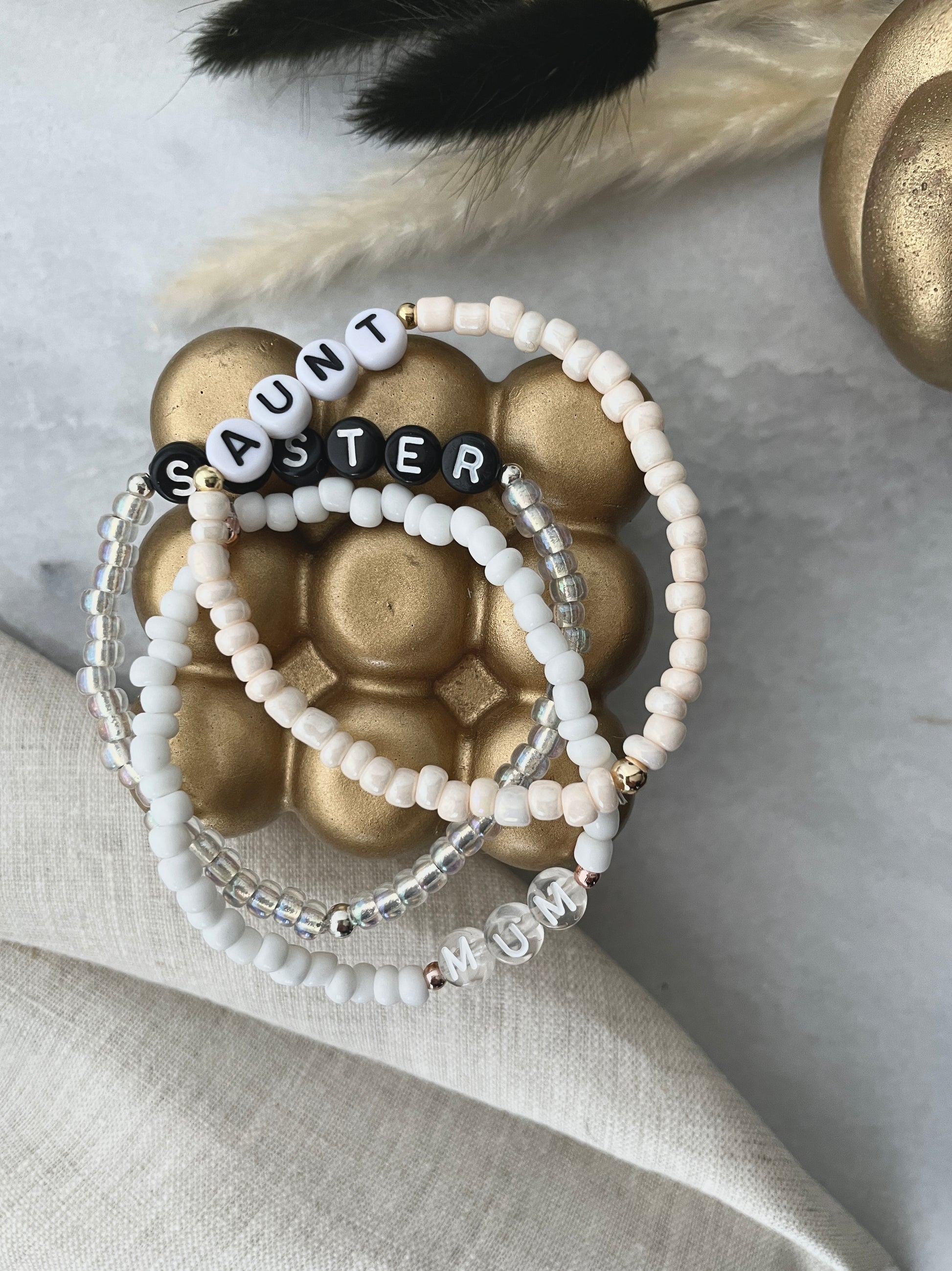 Choose your seed bead and letter bead colour and complimentary accent beads.