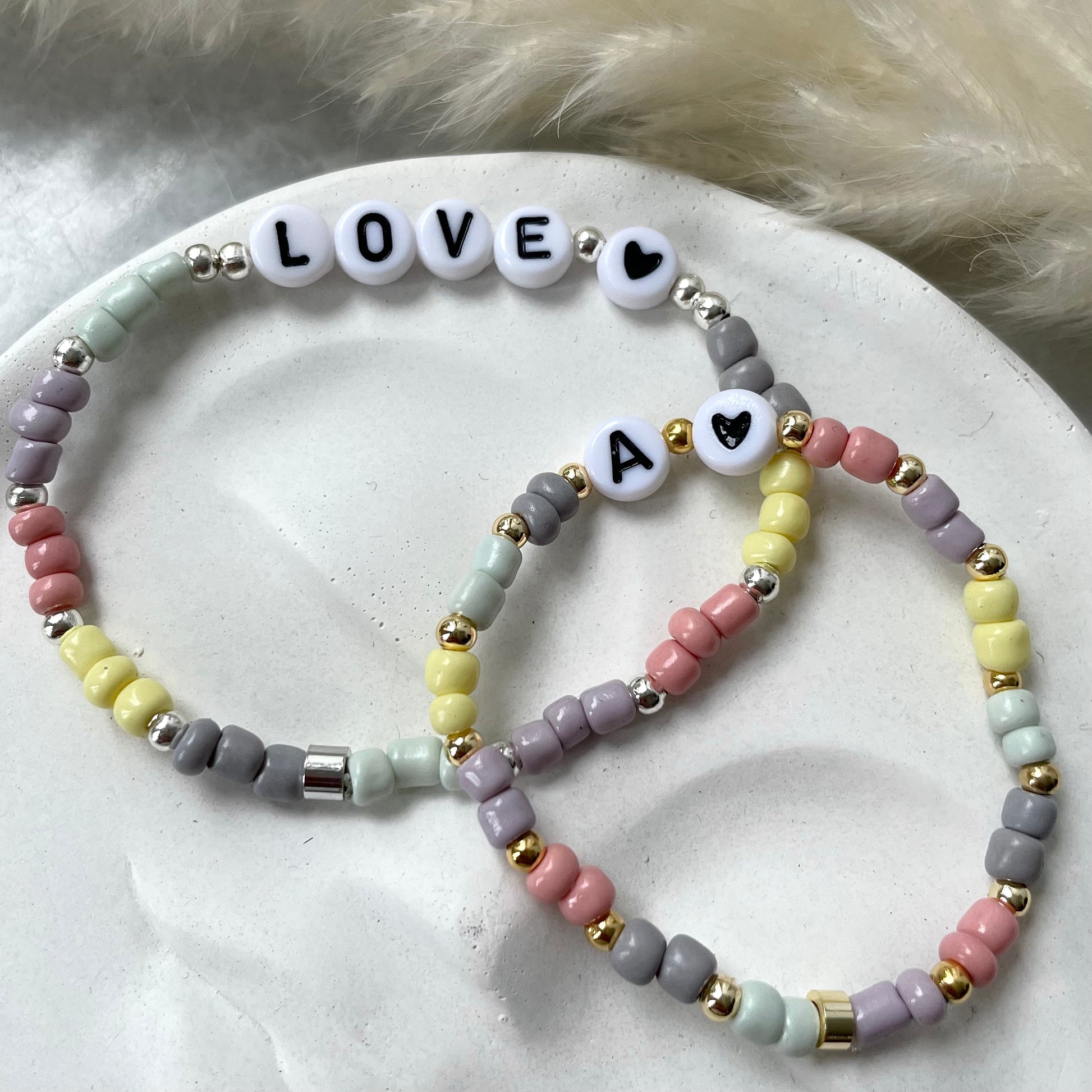 Pastel seed bead bracelet with your choice of silver, gold or rose gold accents.
