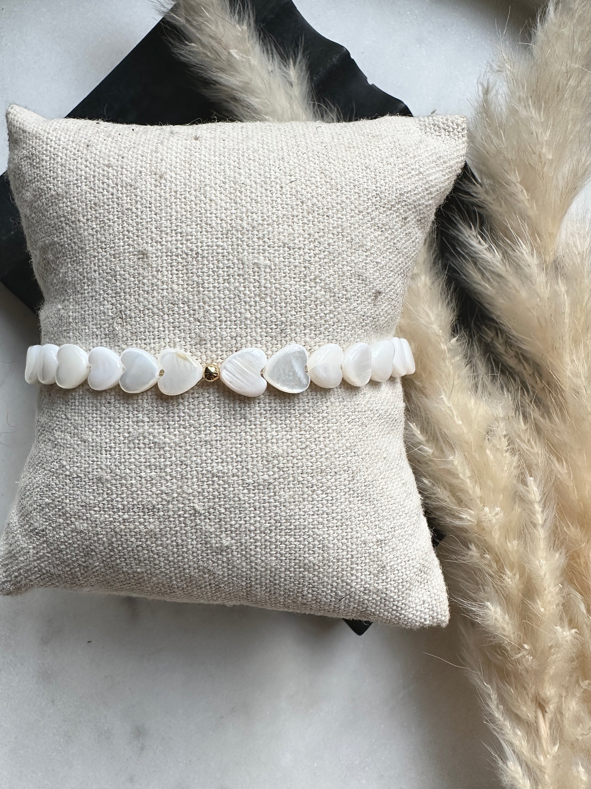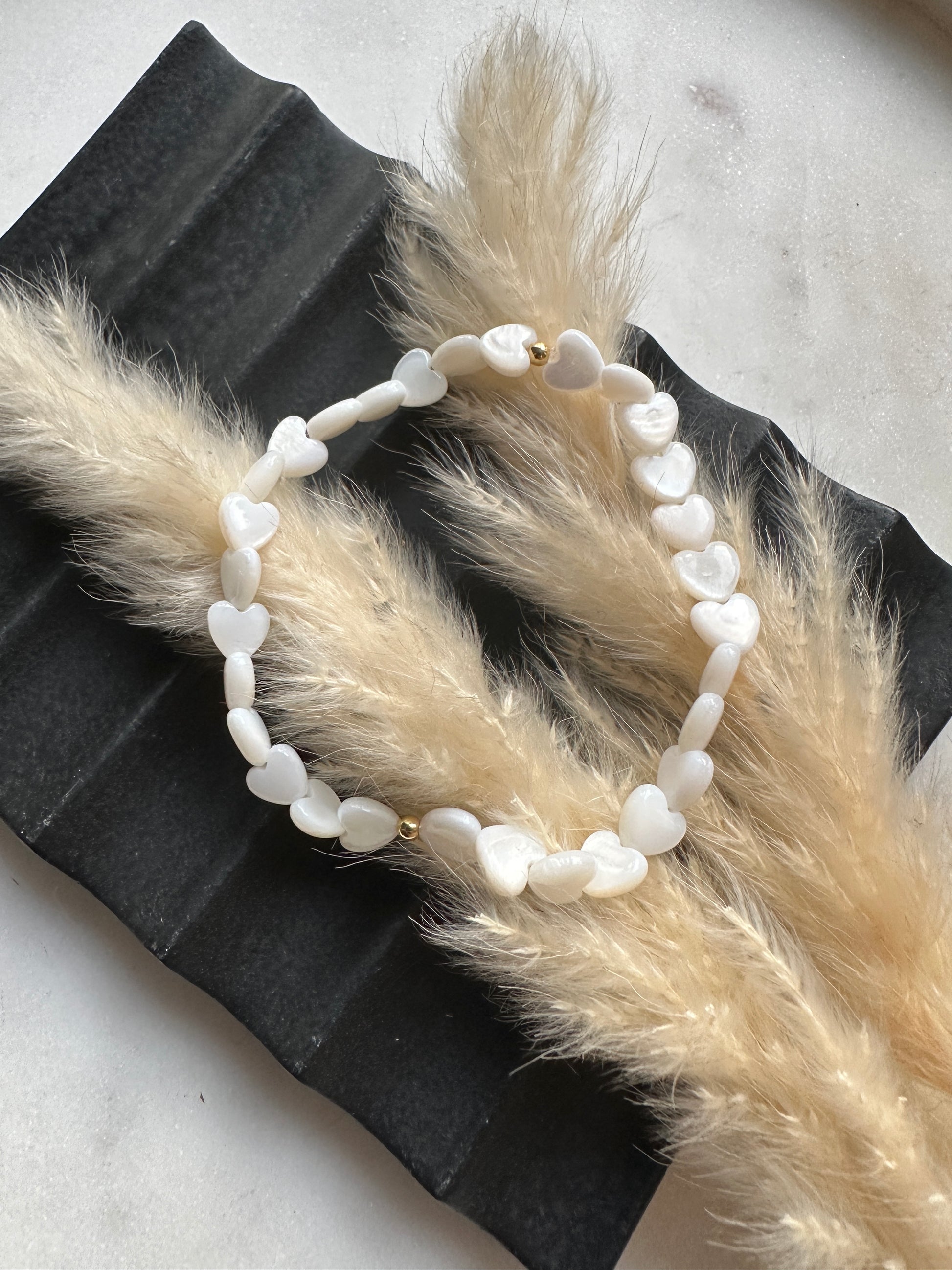 Mother of Pearl heart beads with your choice of sterling silver or gold filled 2.5mm accent bead.