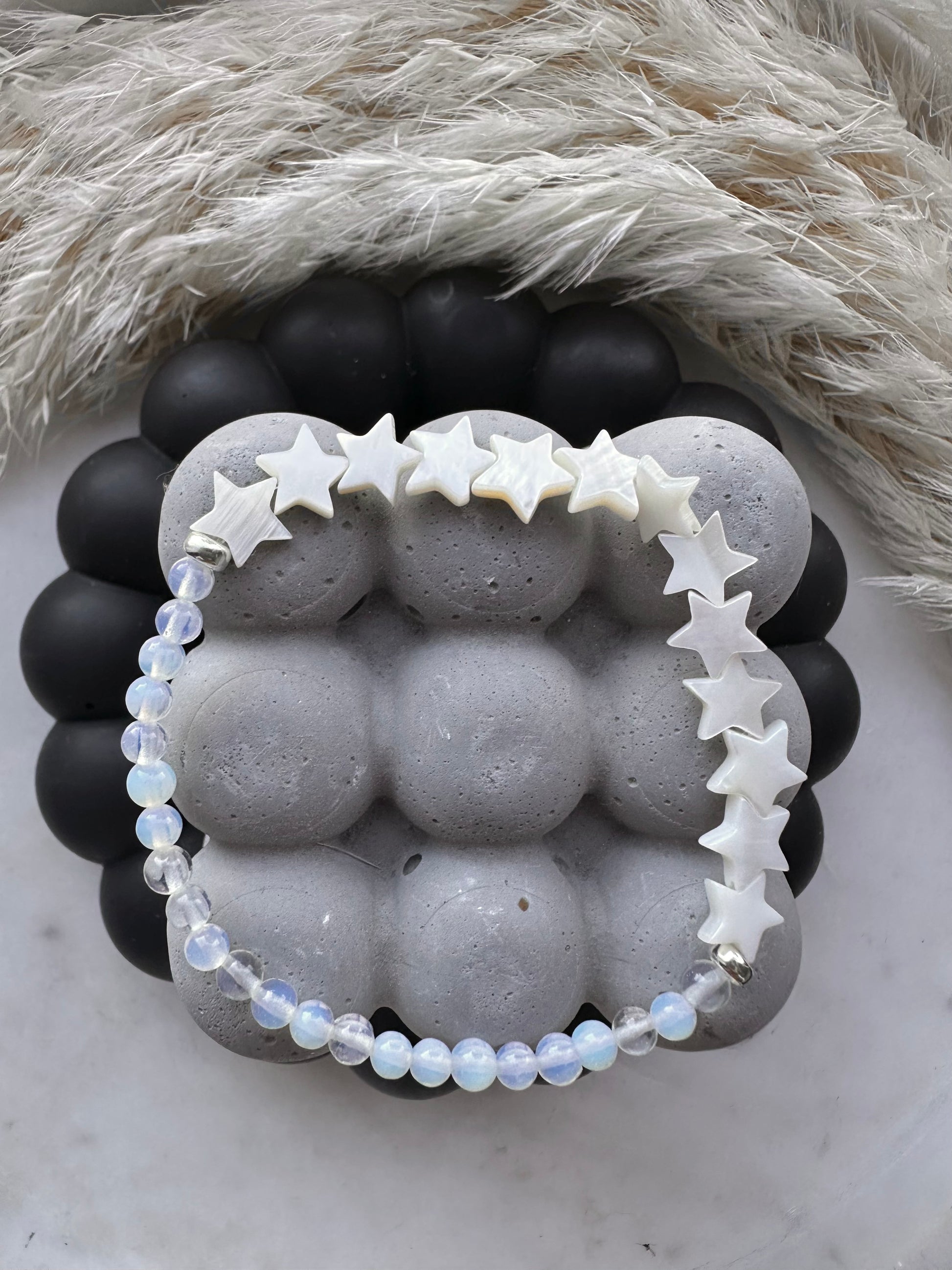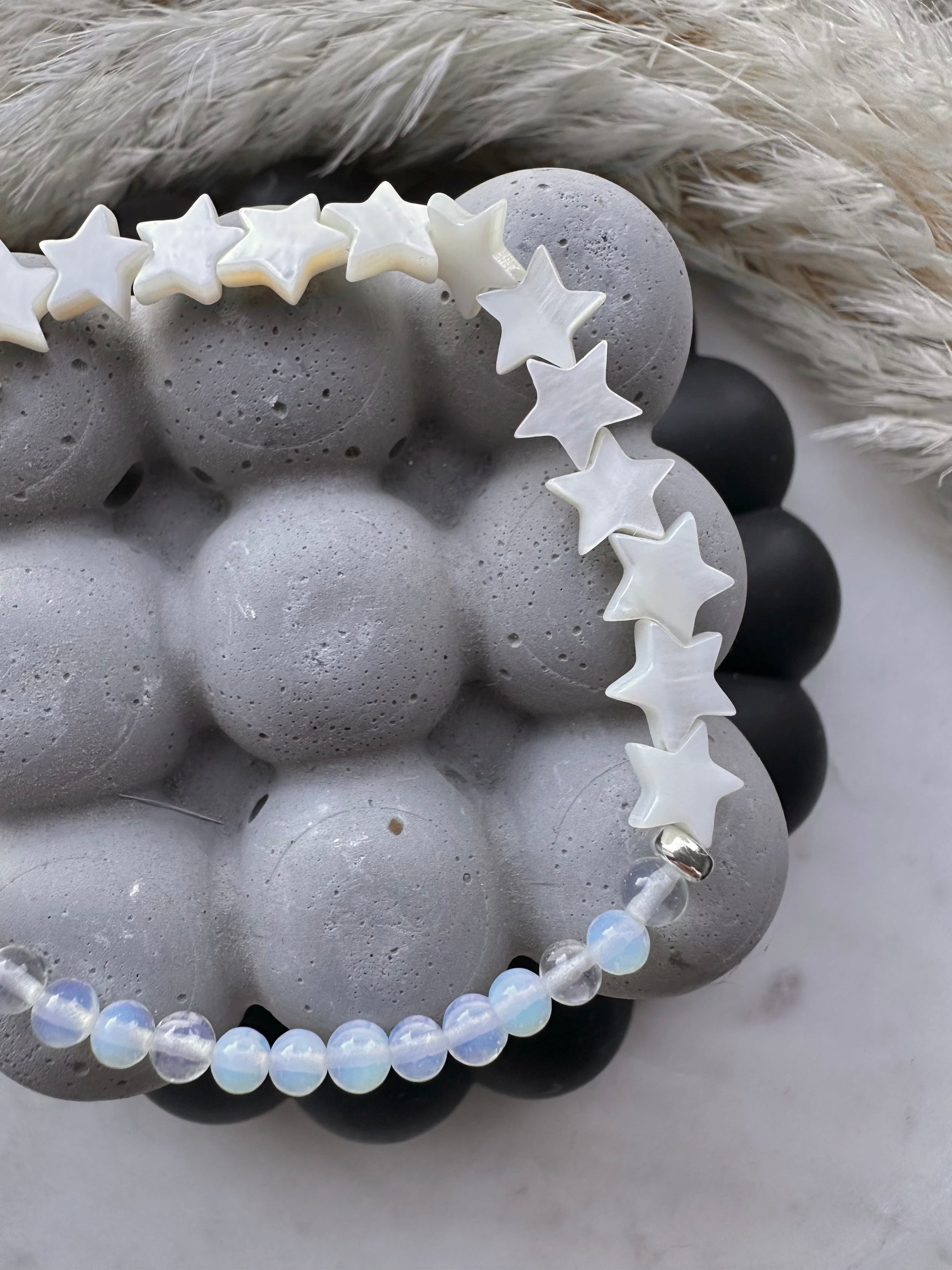 Mother of Pearl stars with 4mm moonstone beads