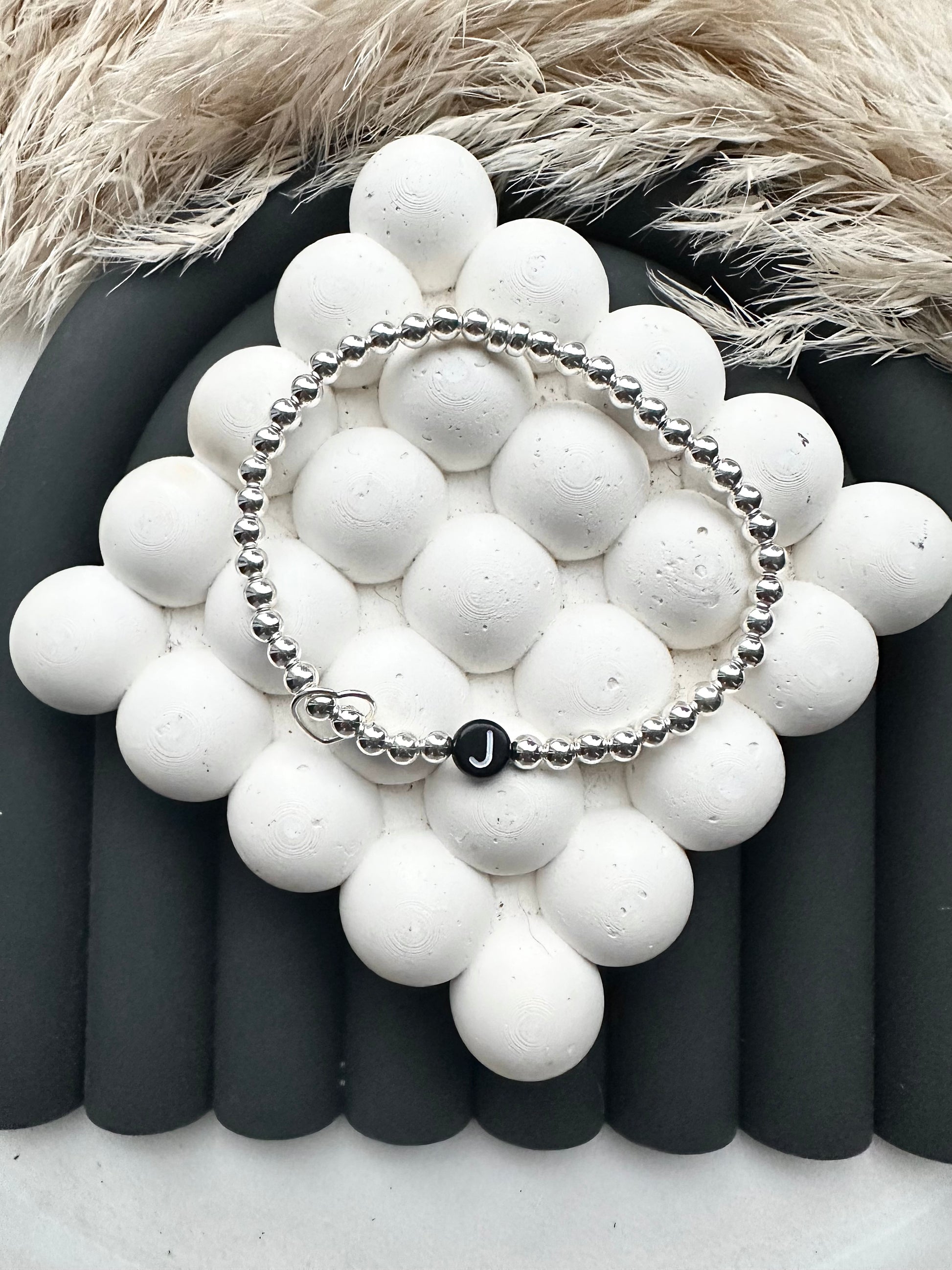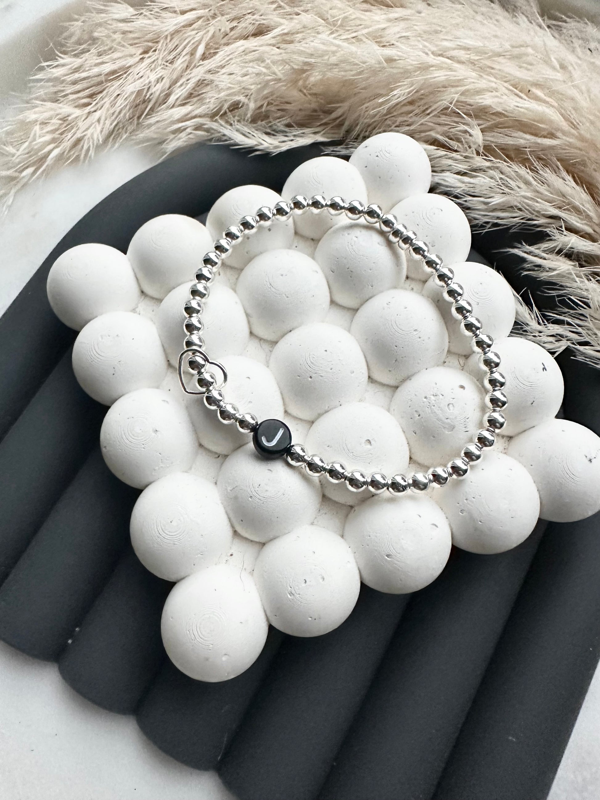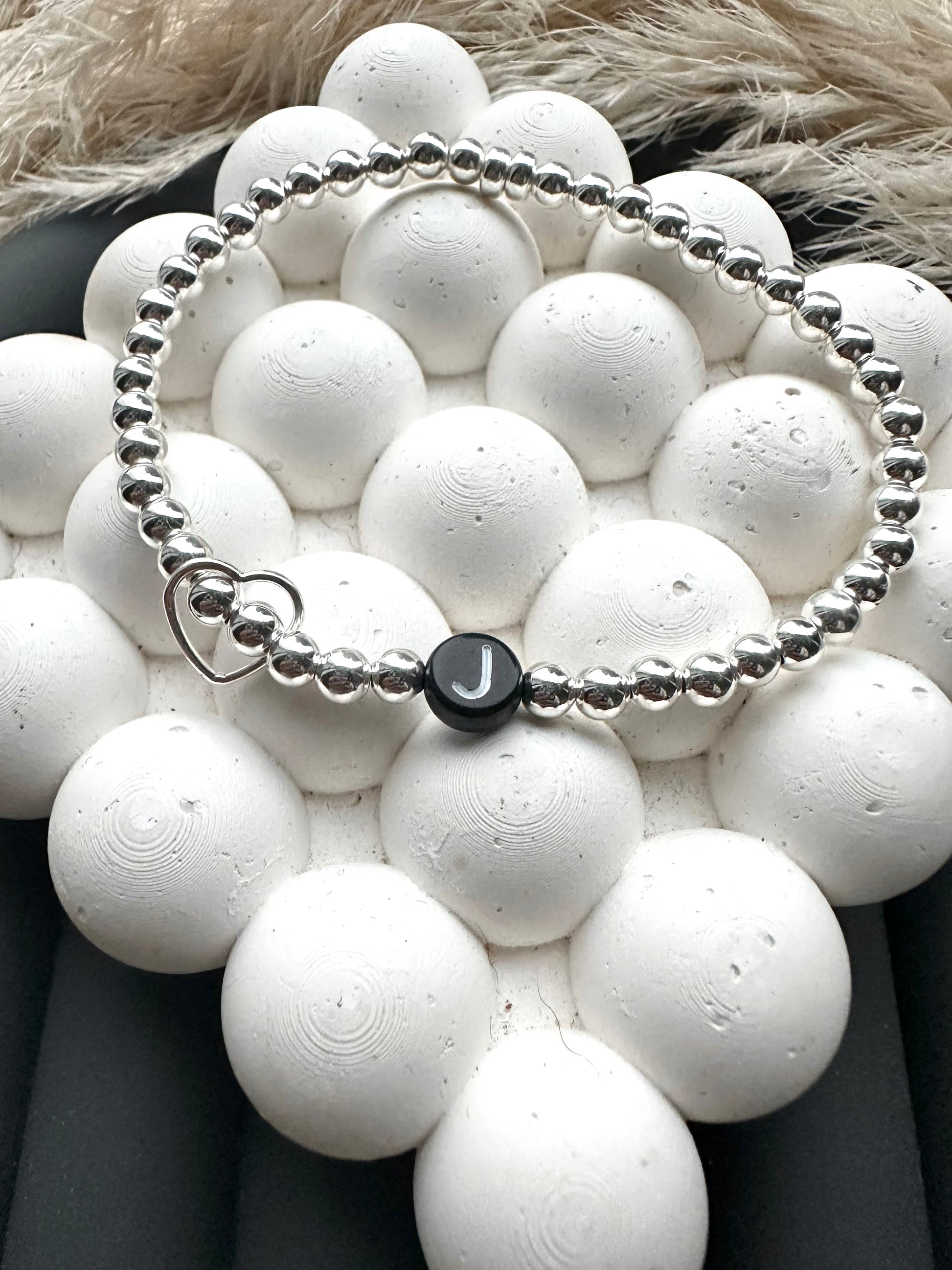 Sterling silver 4mm beads with a heart connector, personalised with the word of your choice!