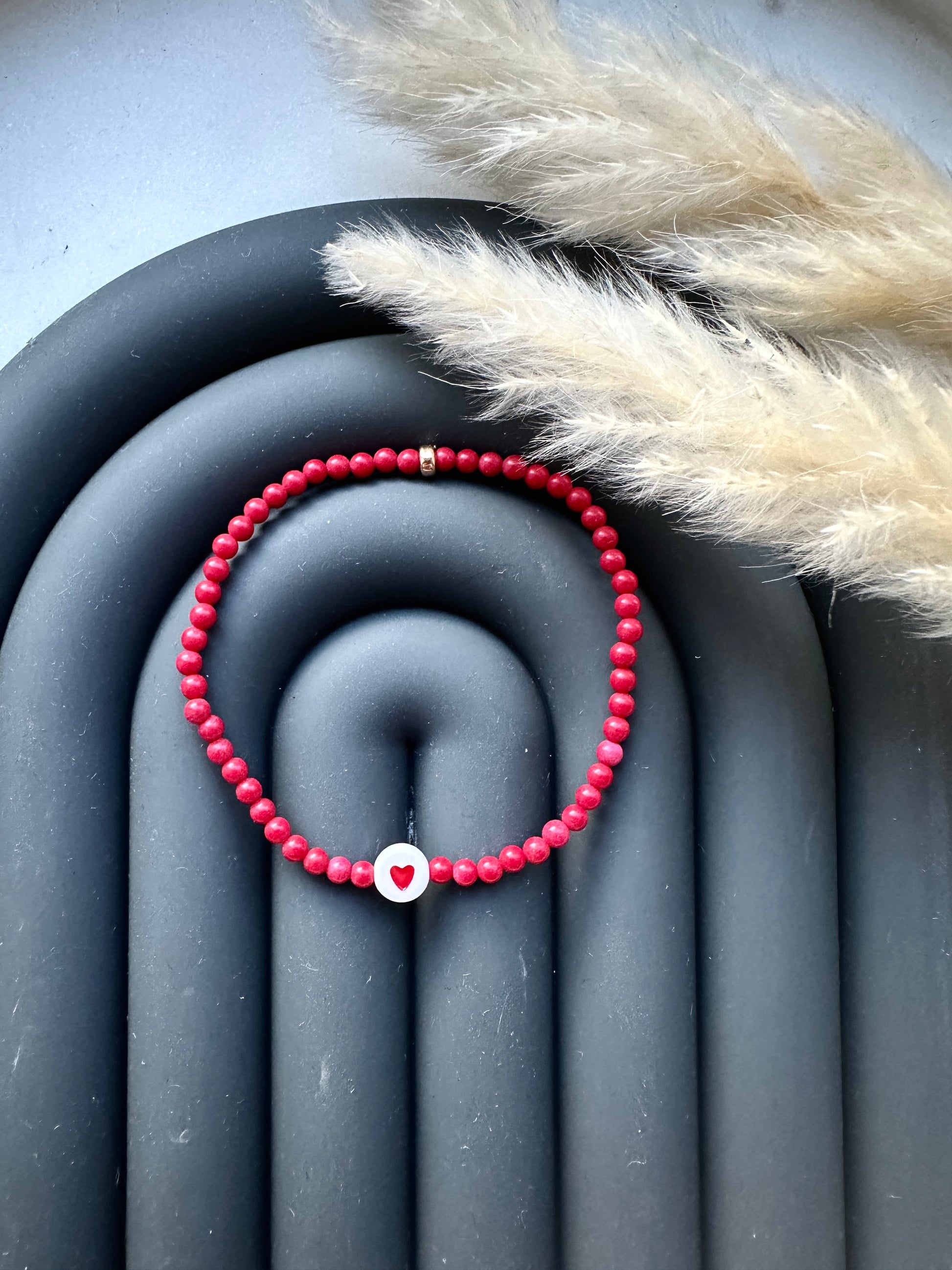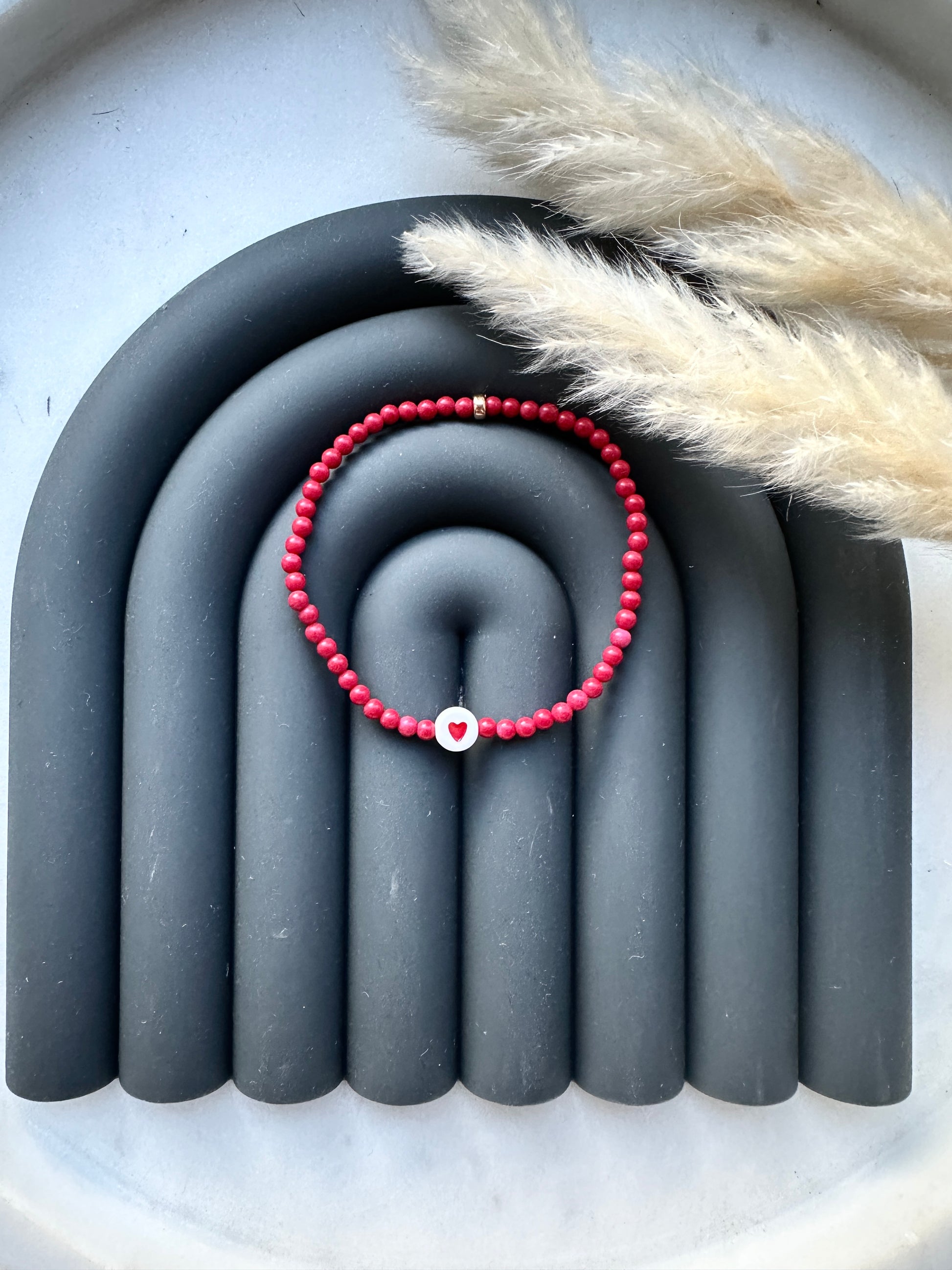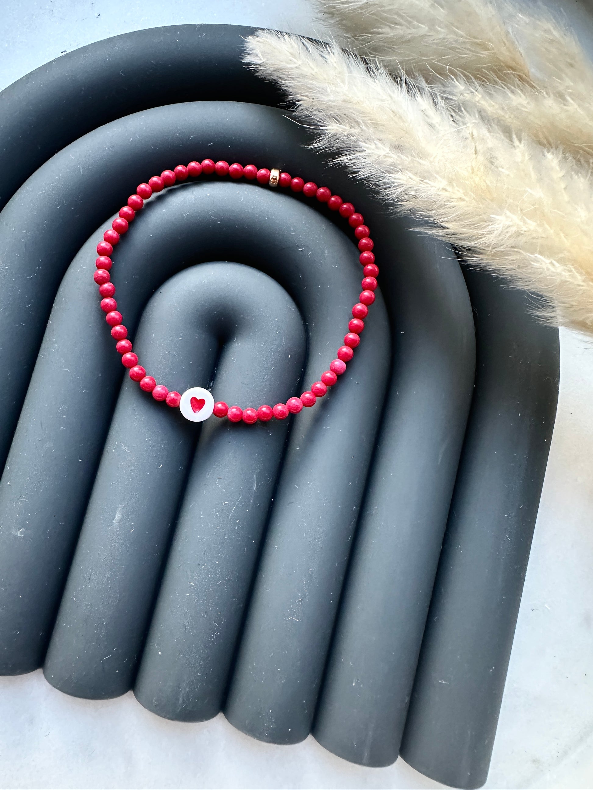 Red Jade 3mm gemstones with your personalisation of choice. Shown here with a red heart but you can add anything you like.