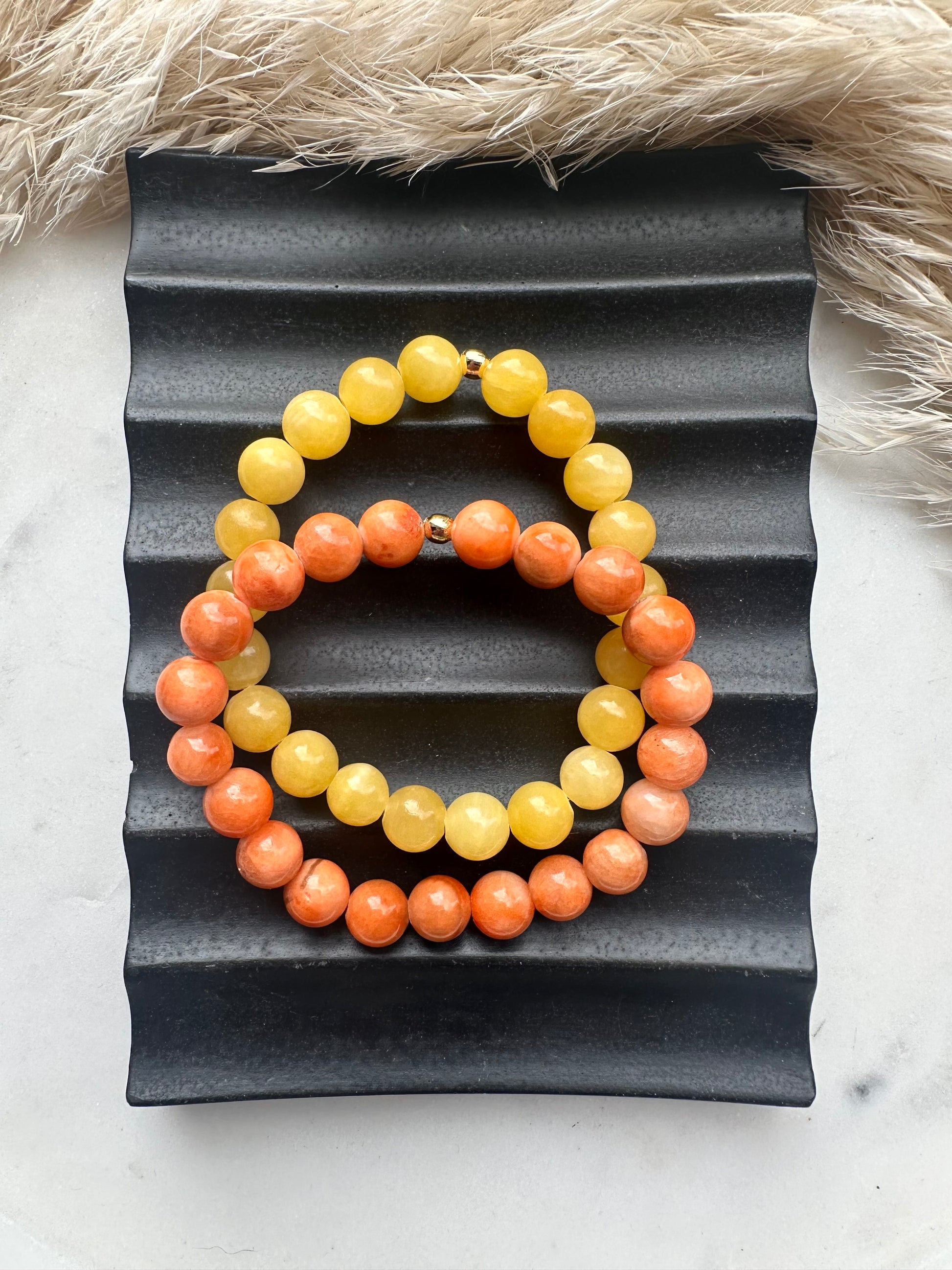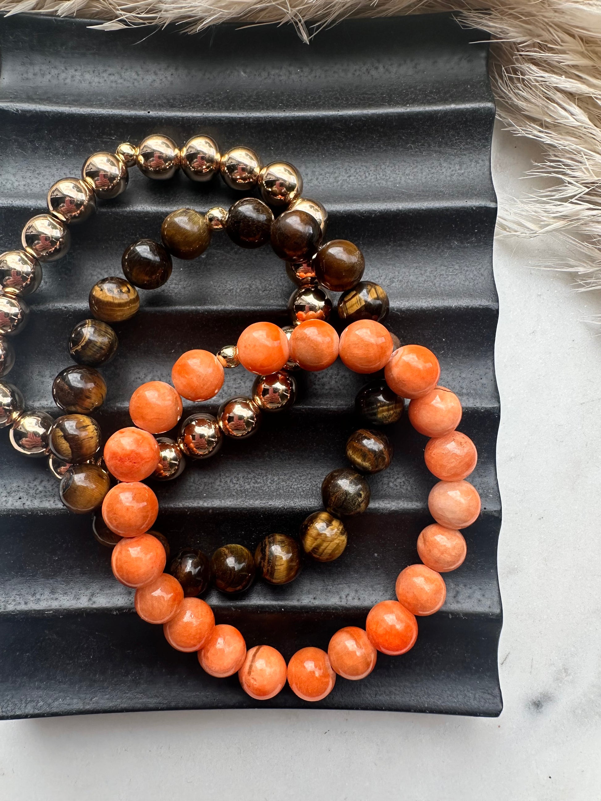 chunky 8mm beaded gemstone bracelets with your choice of gold filled or sterling silver centre