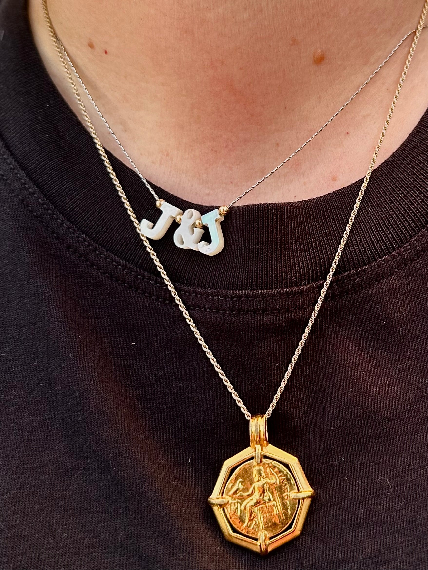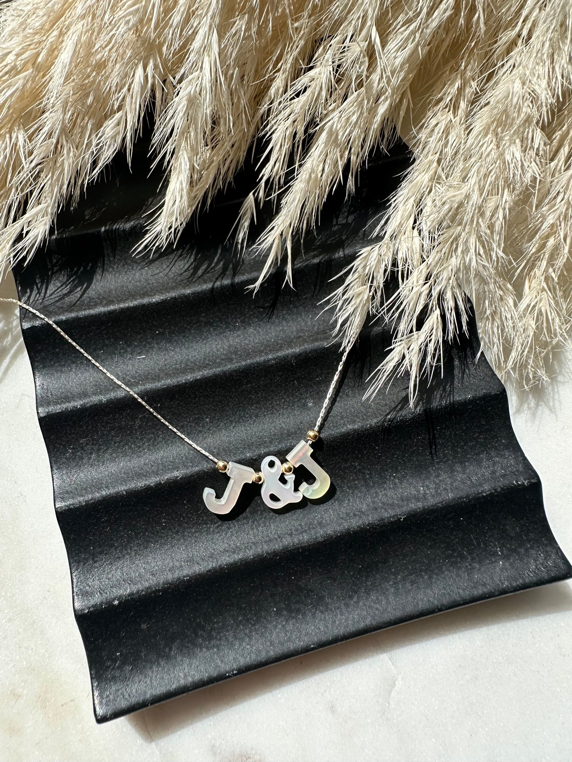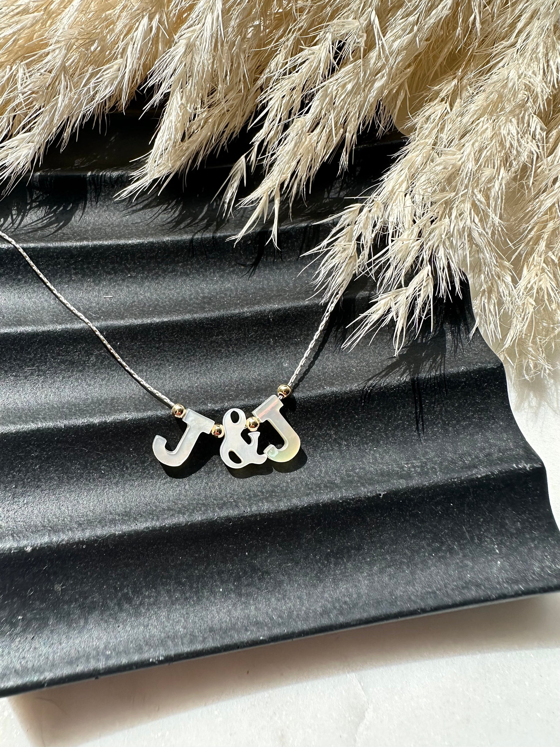 make a statement with these gorgeous mother of pearl initials strung on a delicate sterling silver beading chain & your choice of gold filled or sterling silver spacer beads.