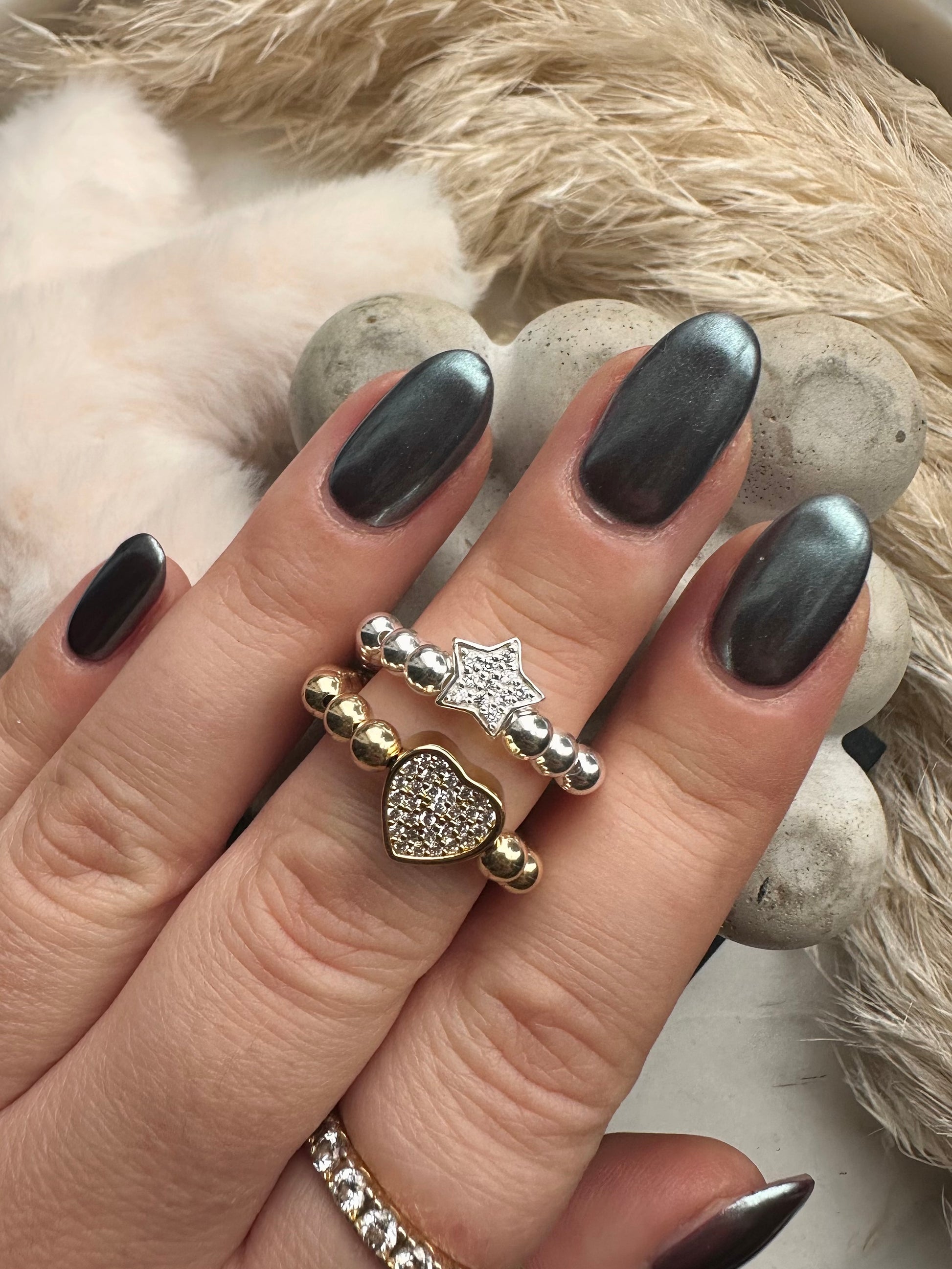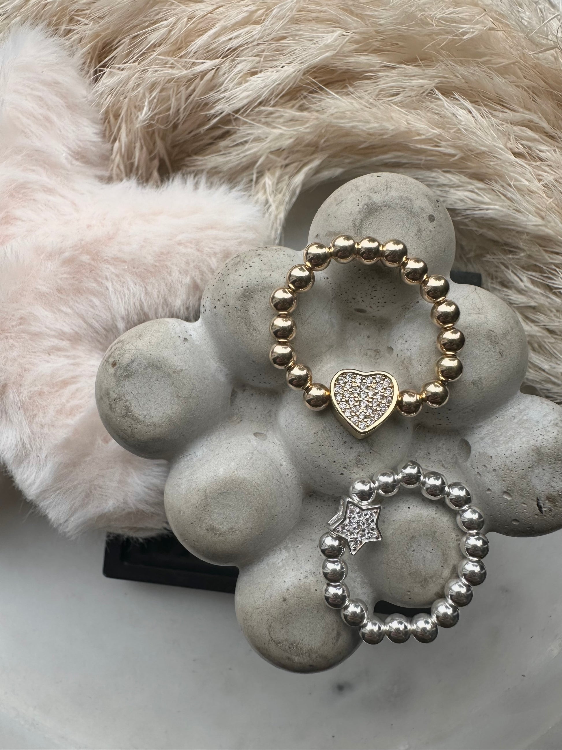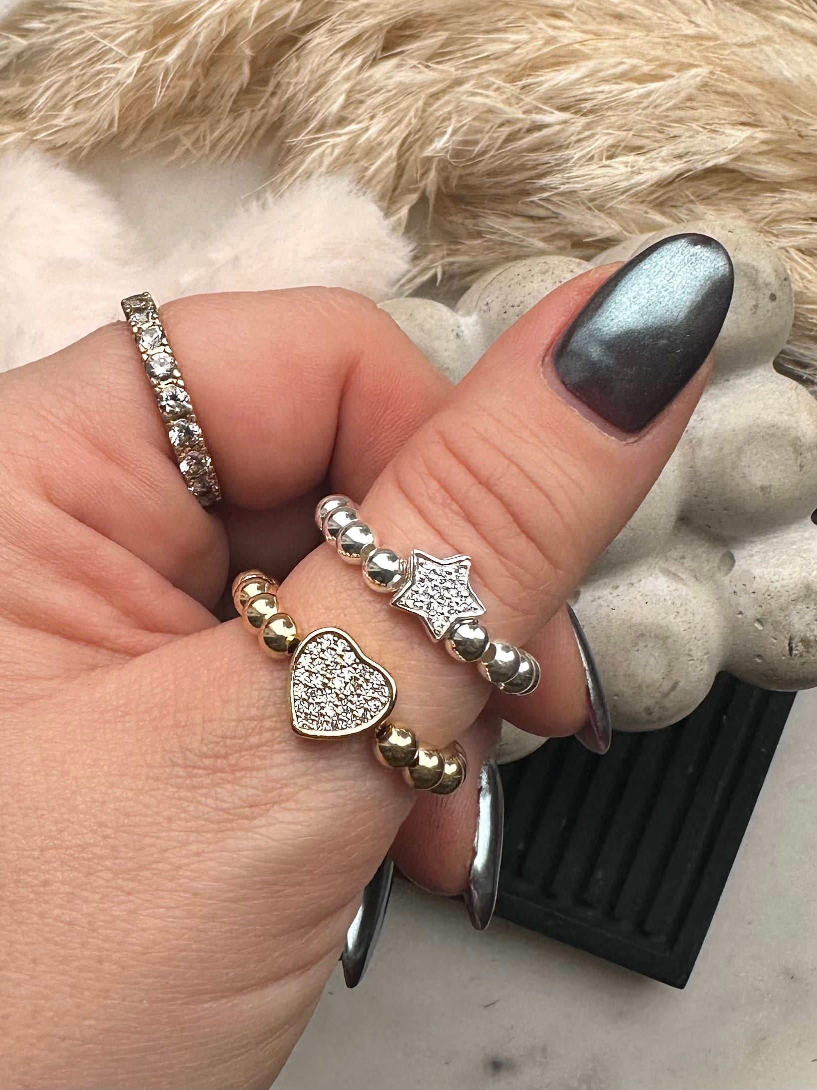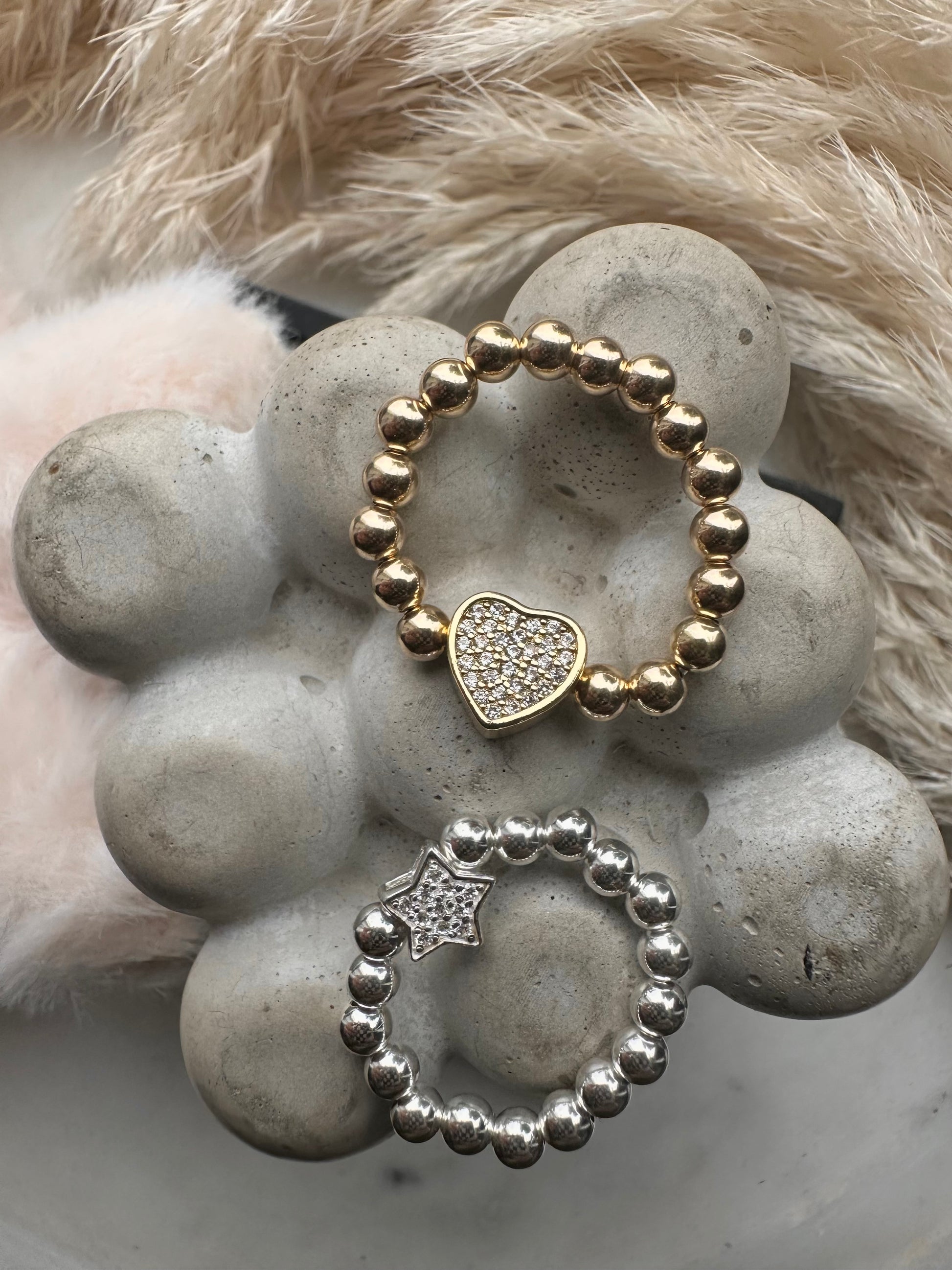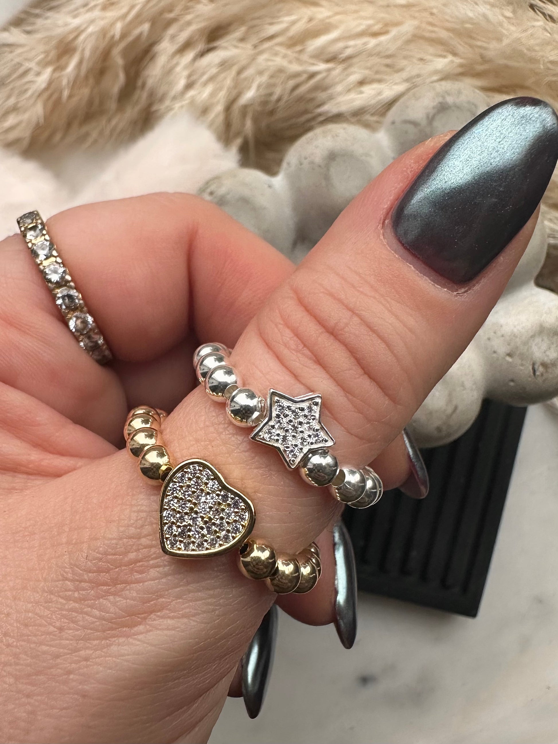 Choose 4mm sterling silver or gold filled beads, strung together with cubic zirconia silver star or gold heart for a truly statement piece that can be worn on any finger!