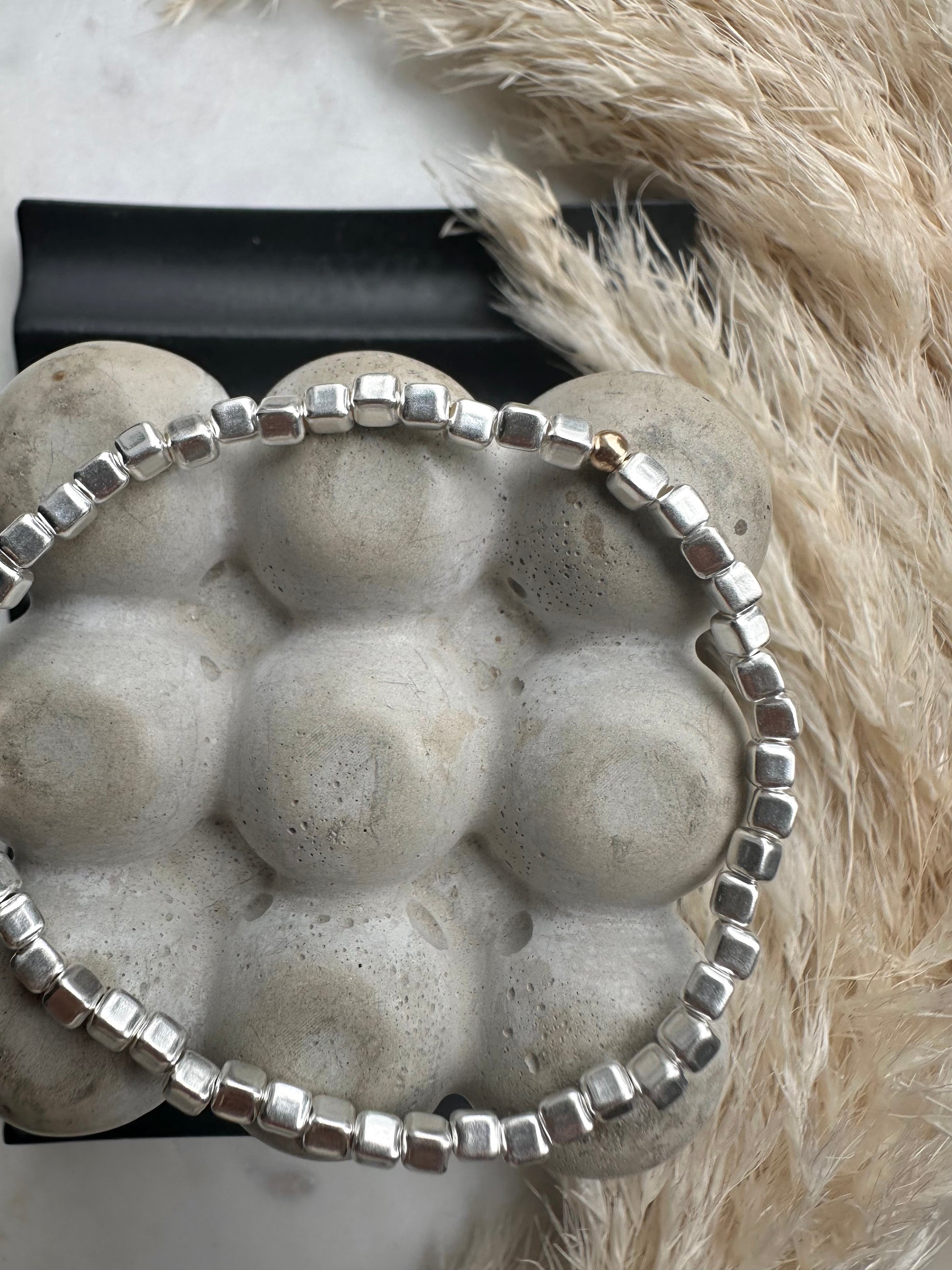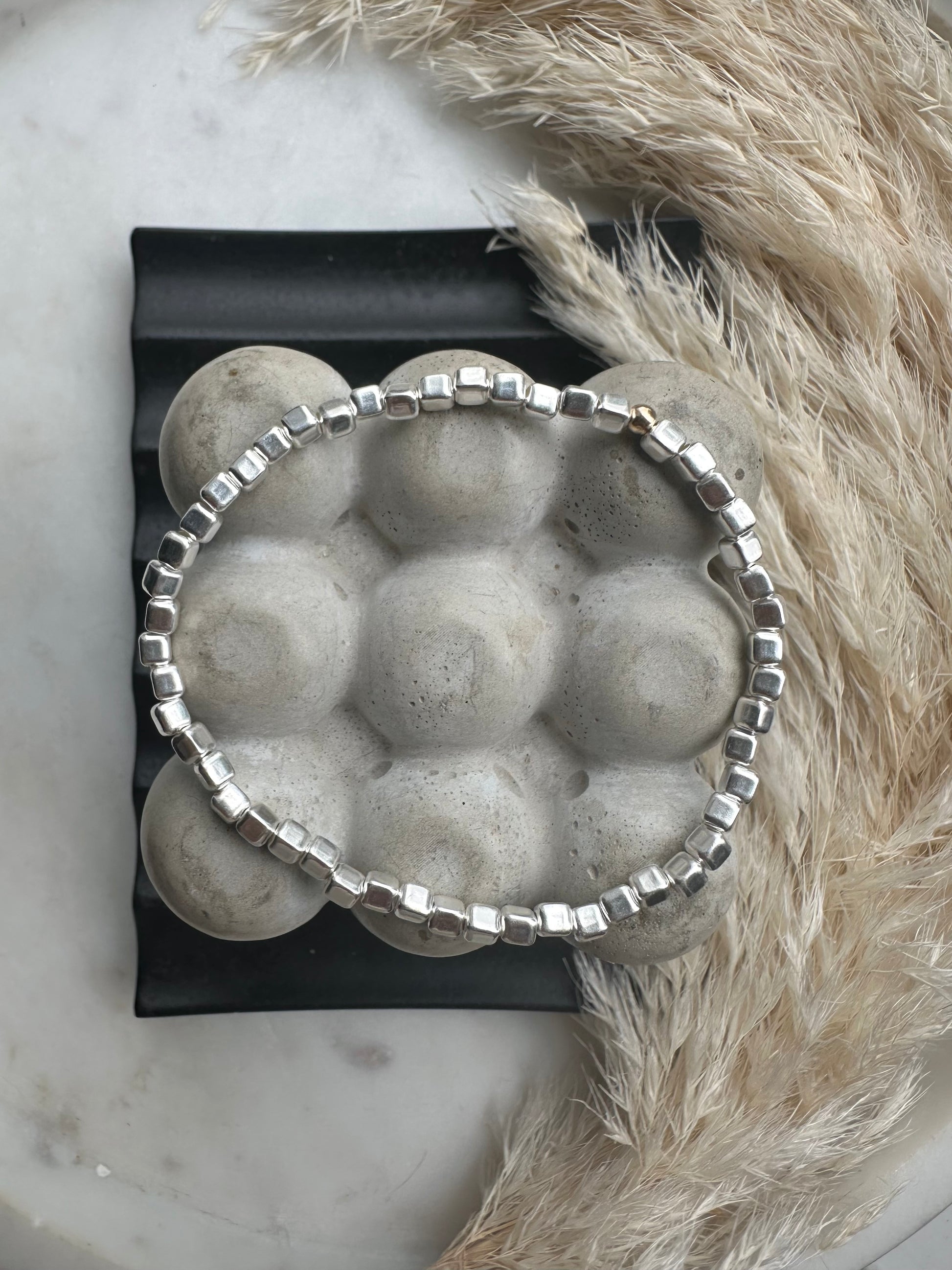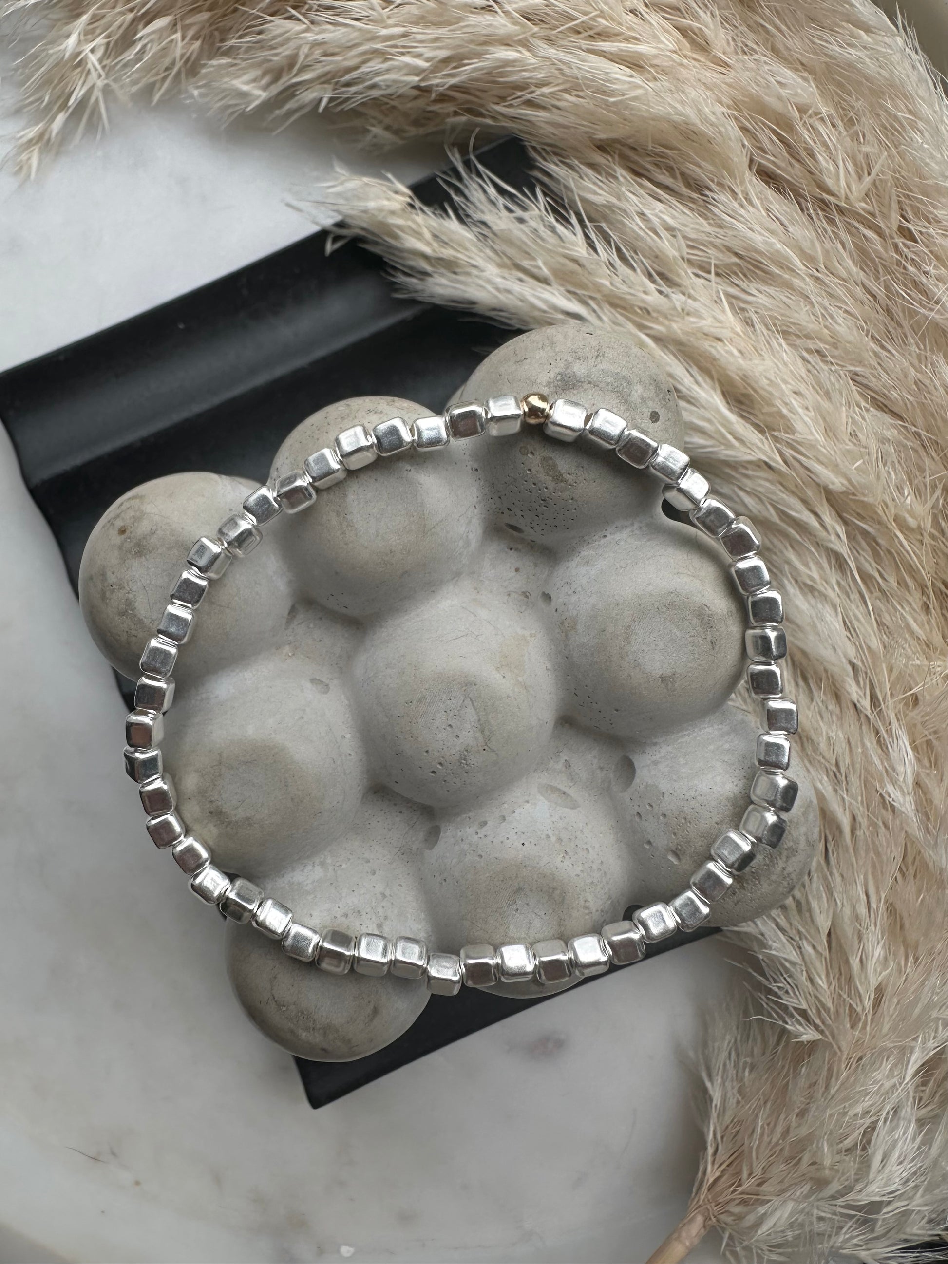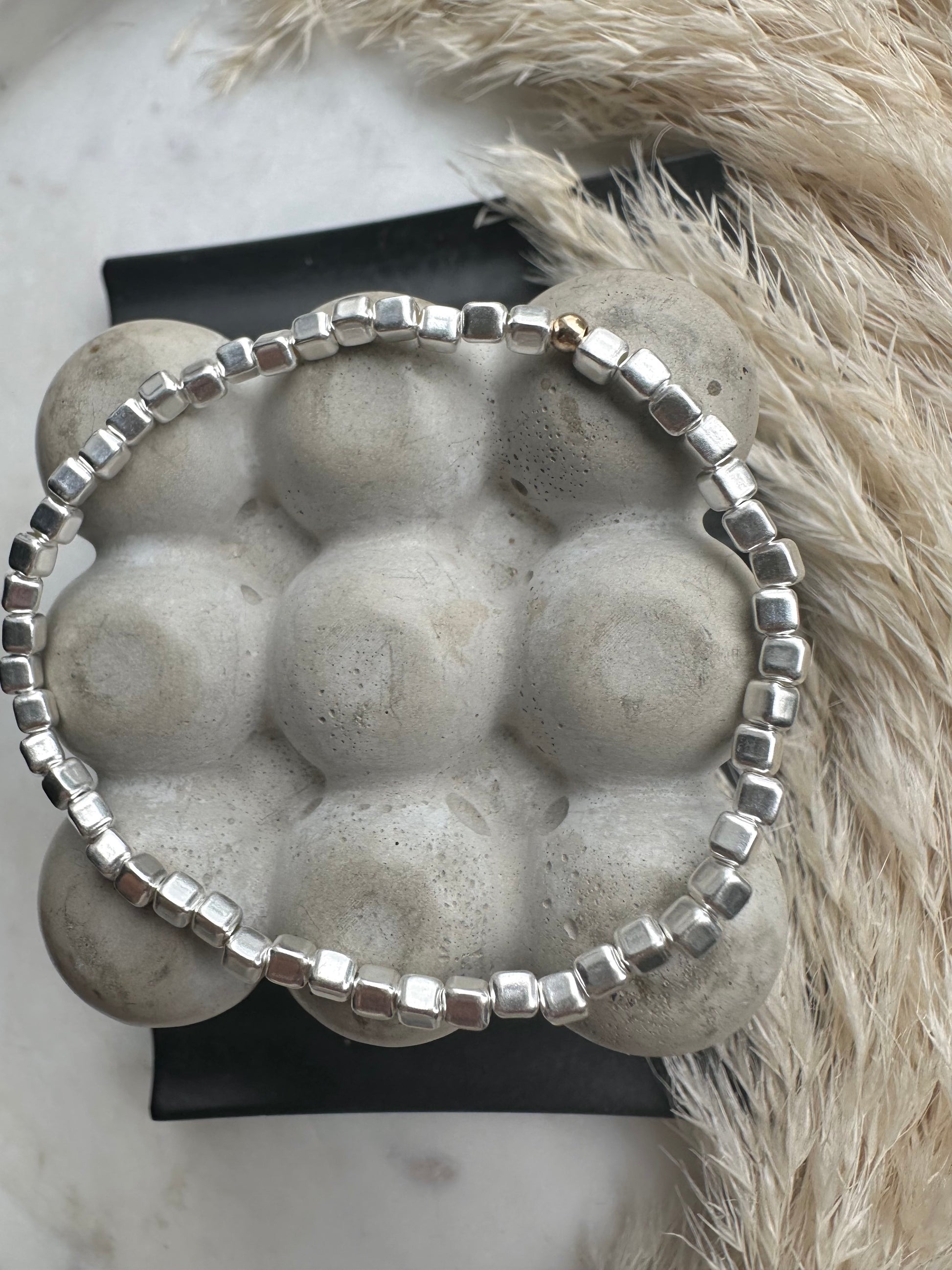 3mm sterling silver cube beads paired with your choice of sterling silver or gold filled centre bead.