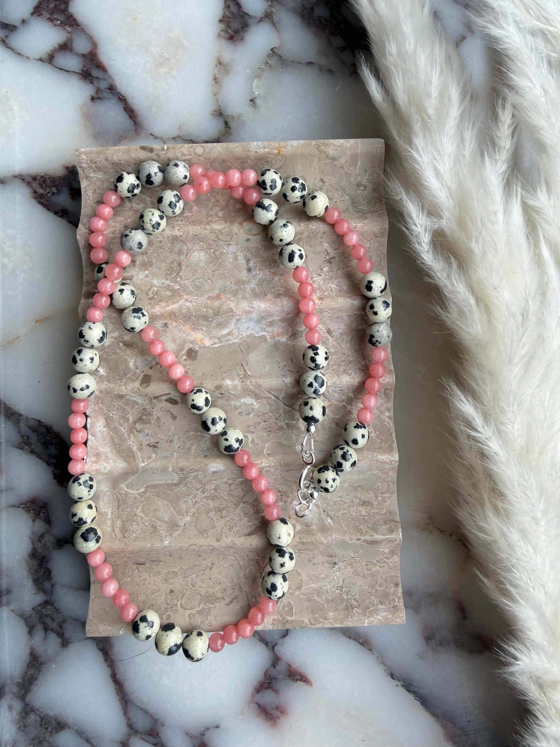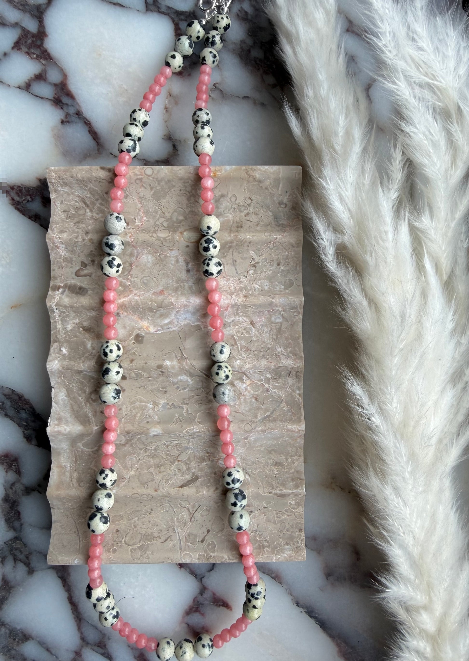Dalmatian Jasper stone strung with soft blush jade gemstones ~ the perfect layering piece