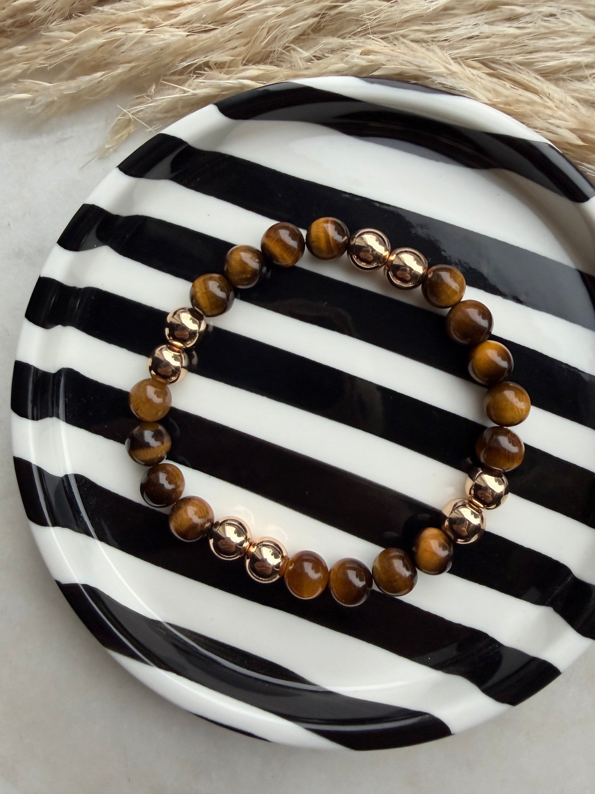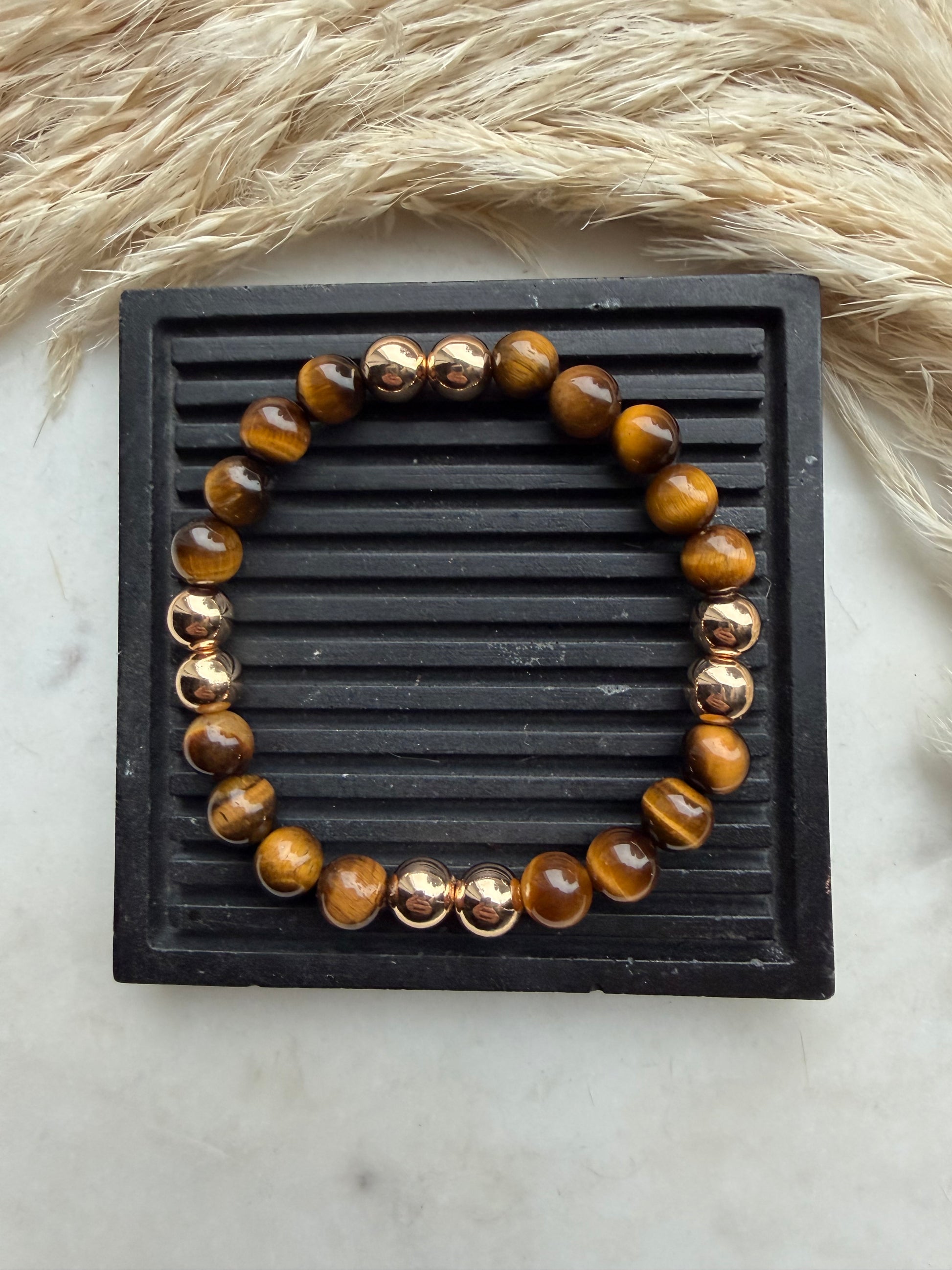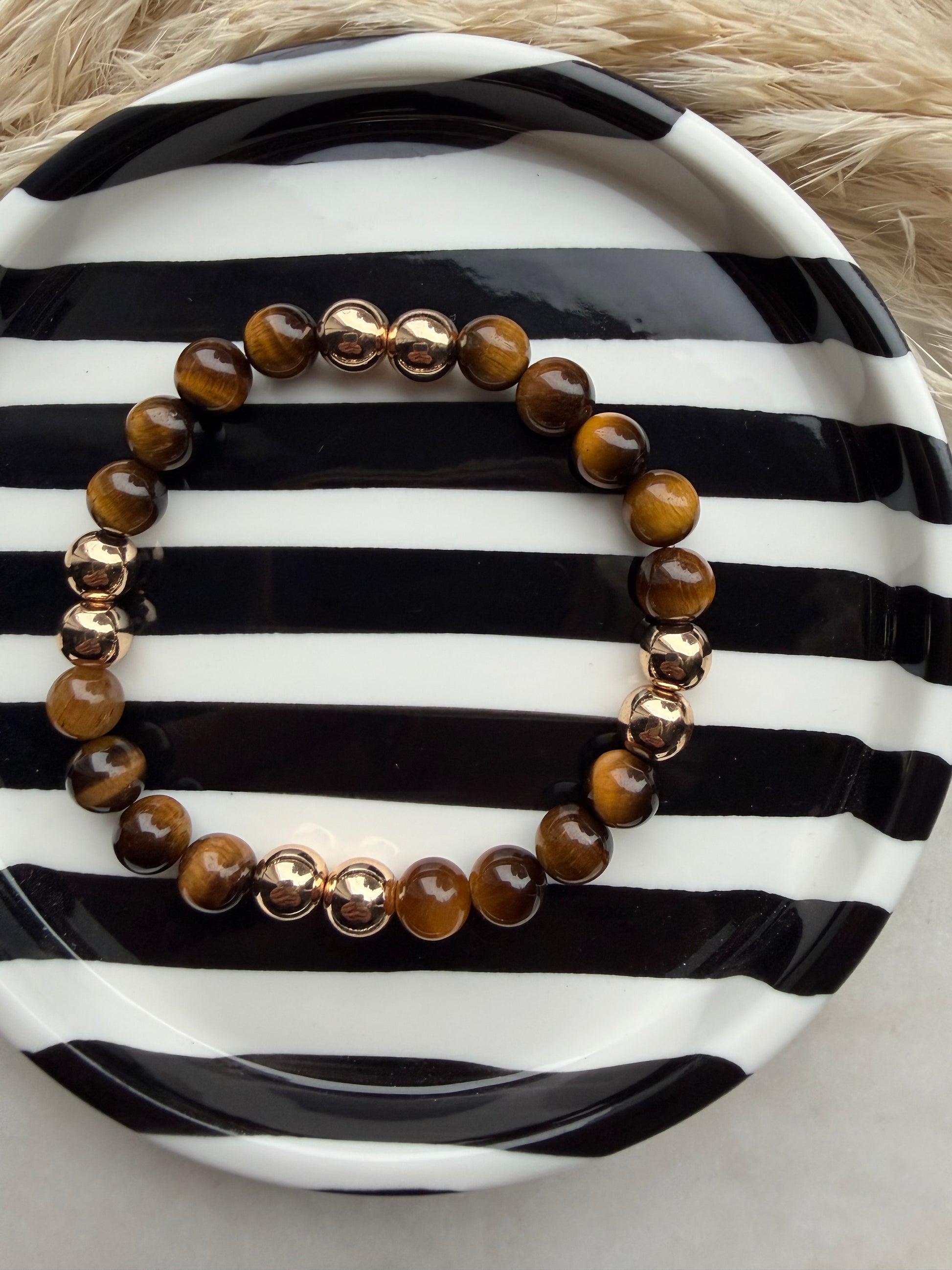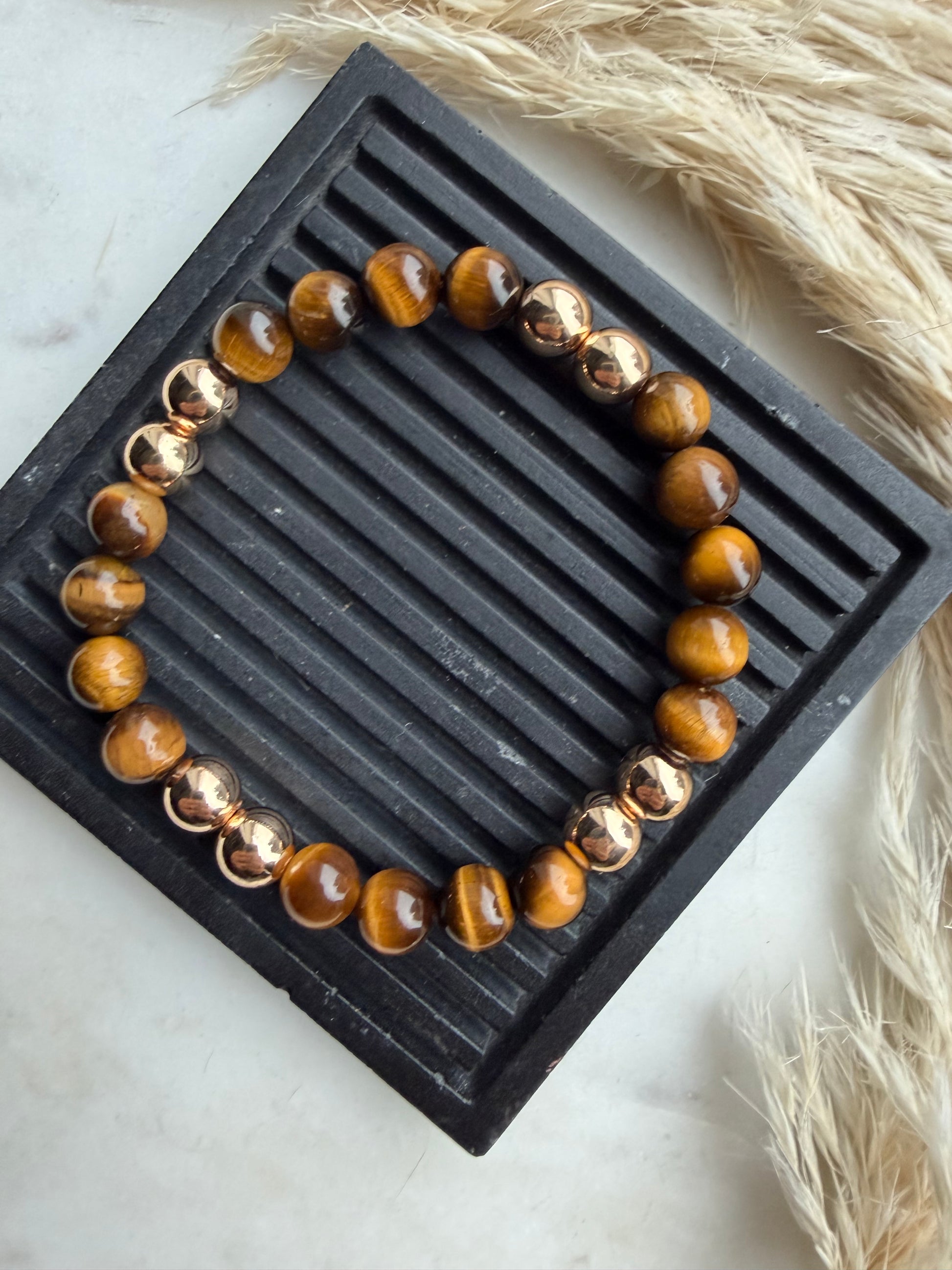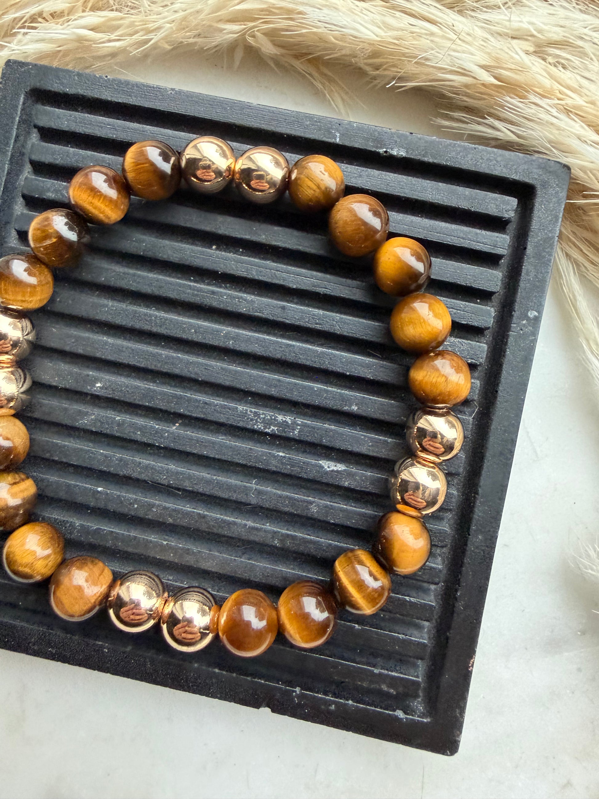 8mm gold hematite & tigers eye beads - the perfect statement for him