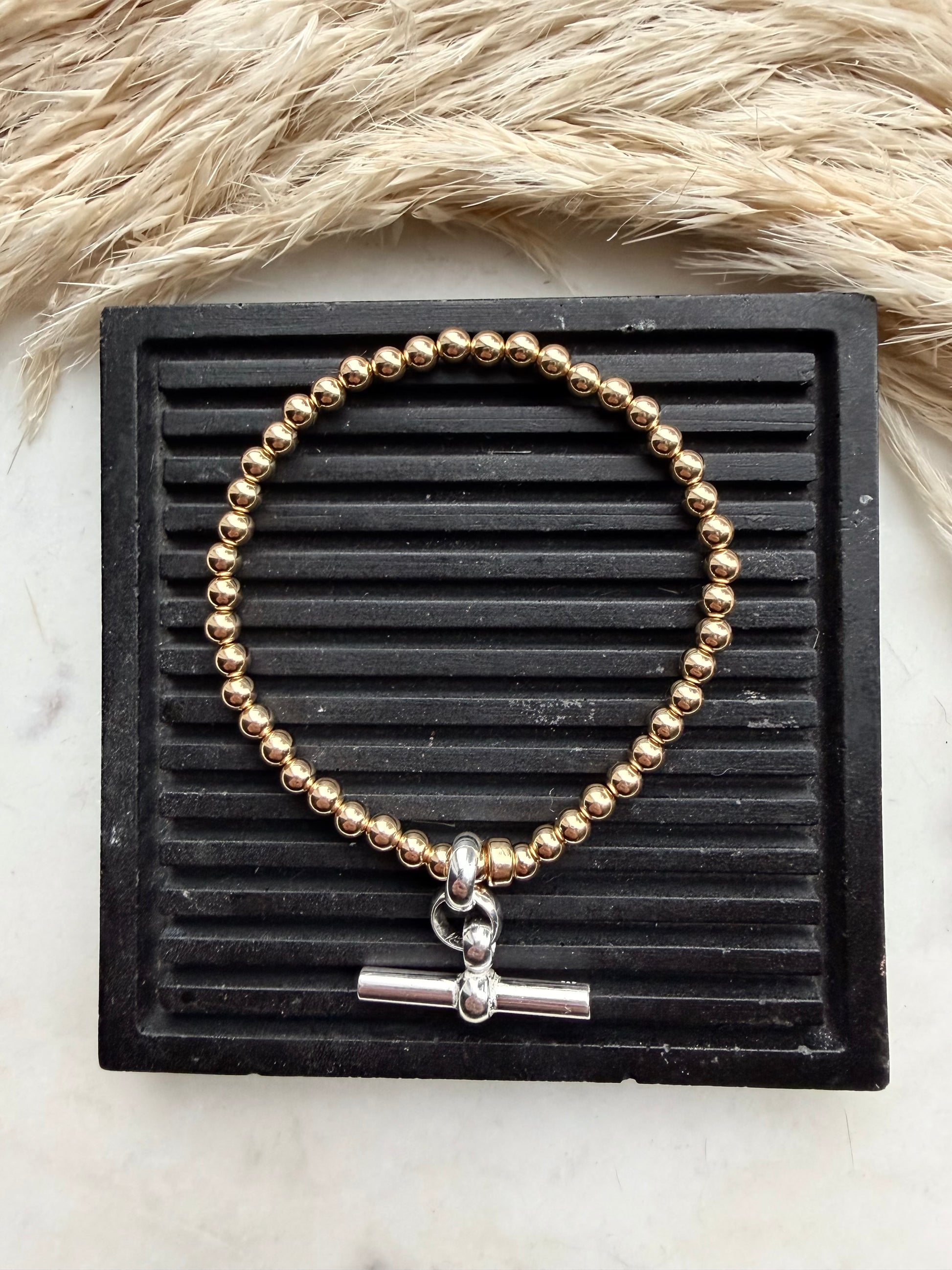 Also available with gold filed beads and sterling silver t-bar pendant for those fellow mixed metal lovers!