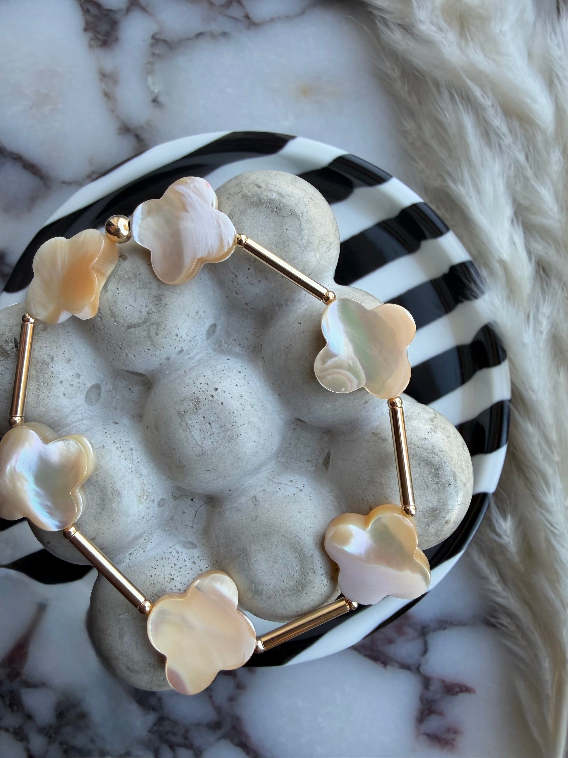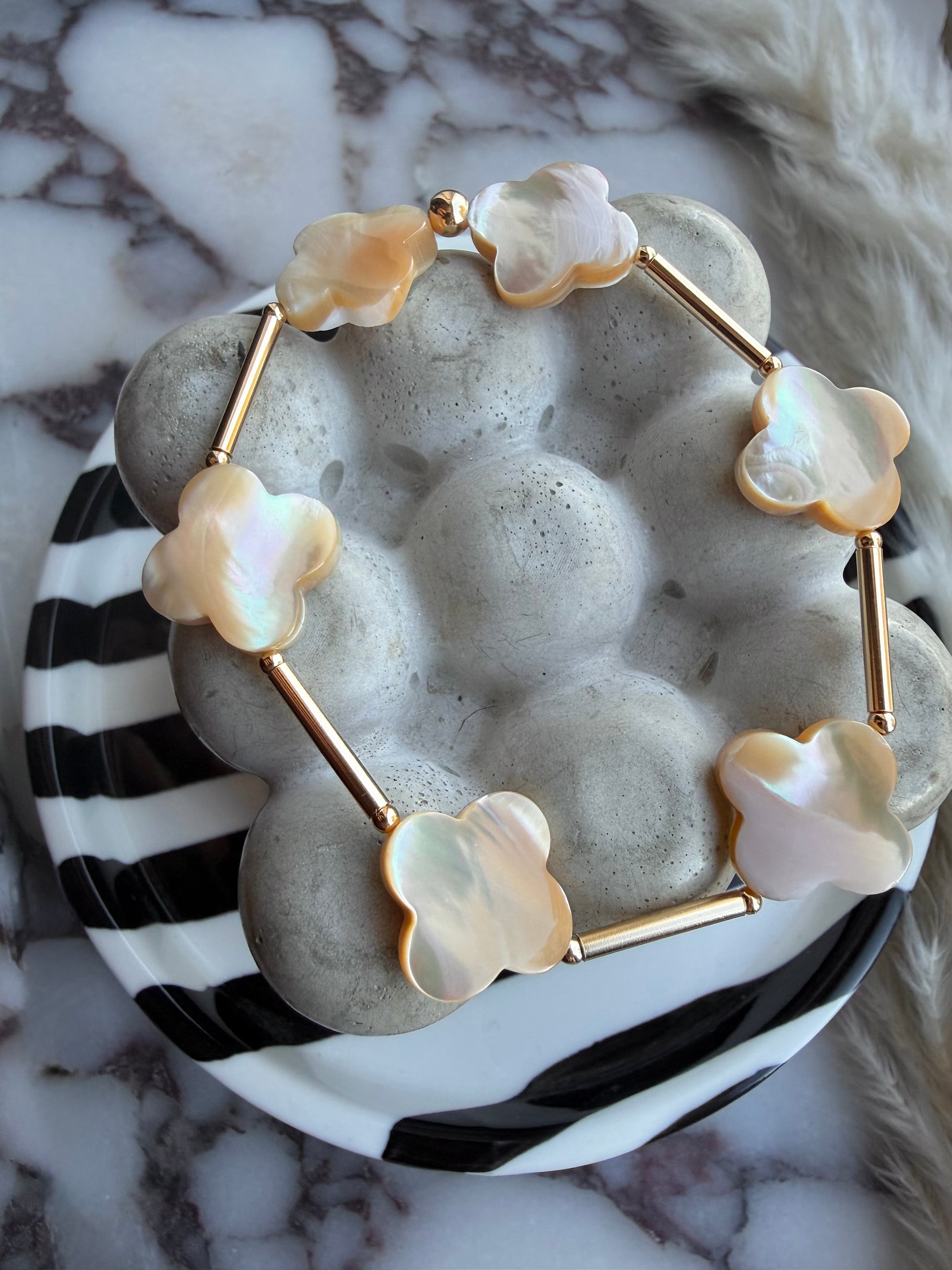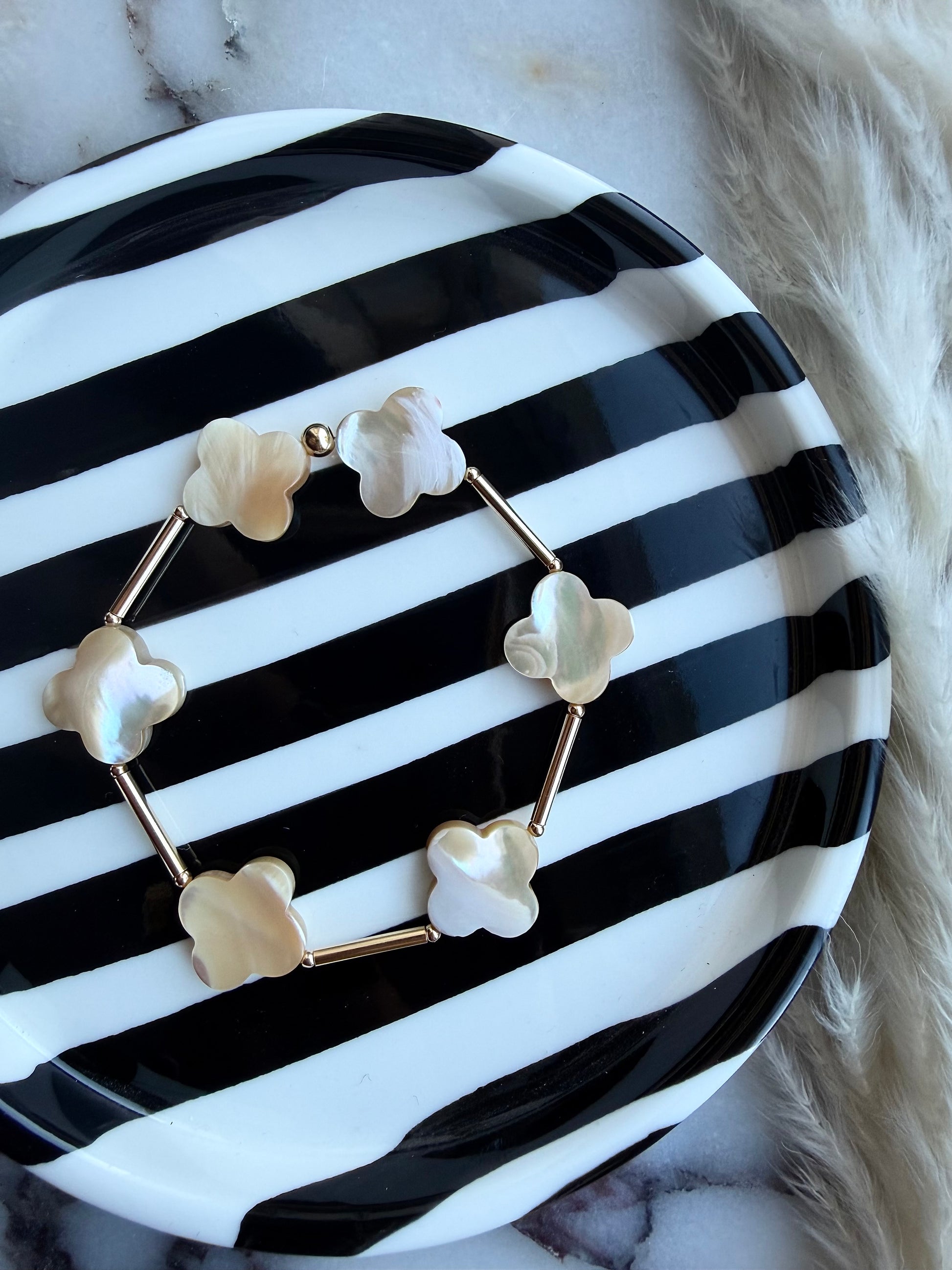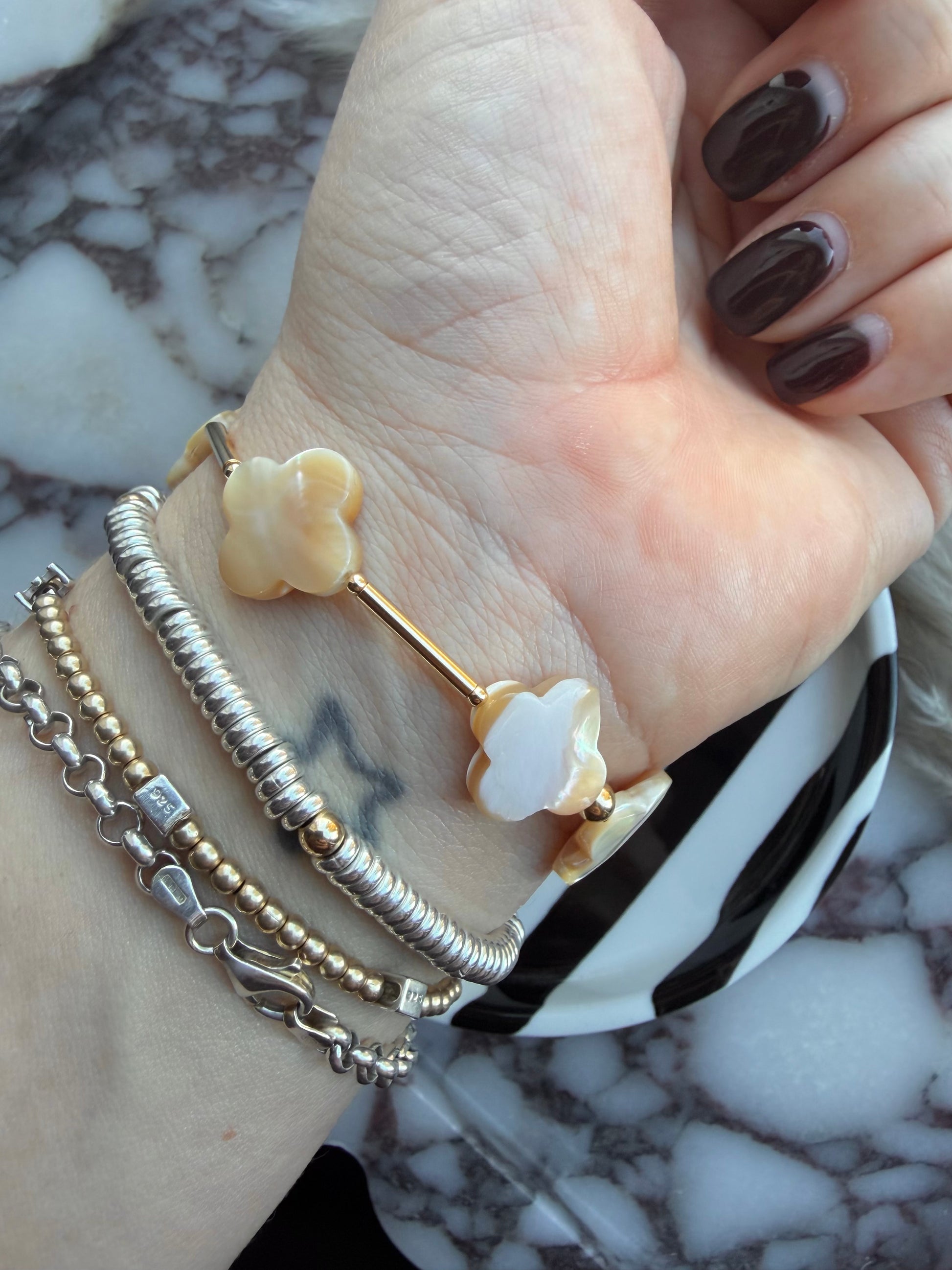 The iconic clover beads strung together with your choice of gold filled or sterling silver tube beads.