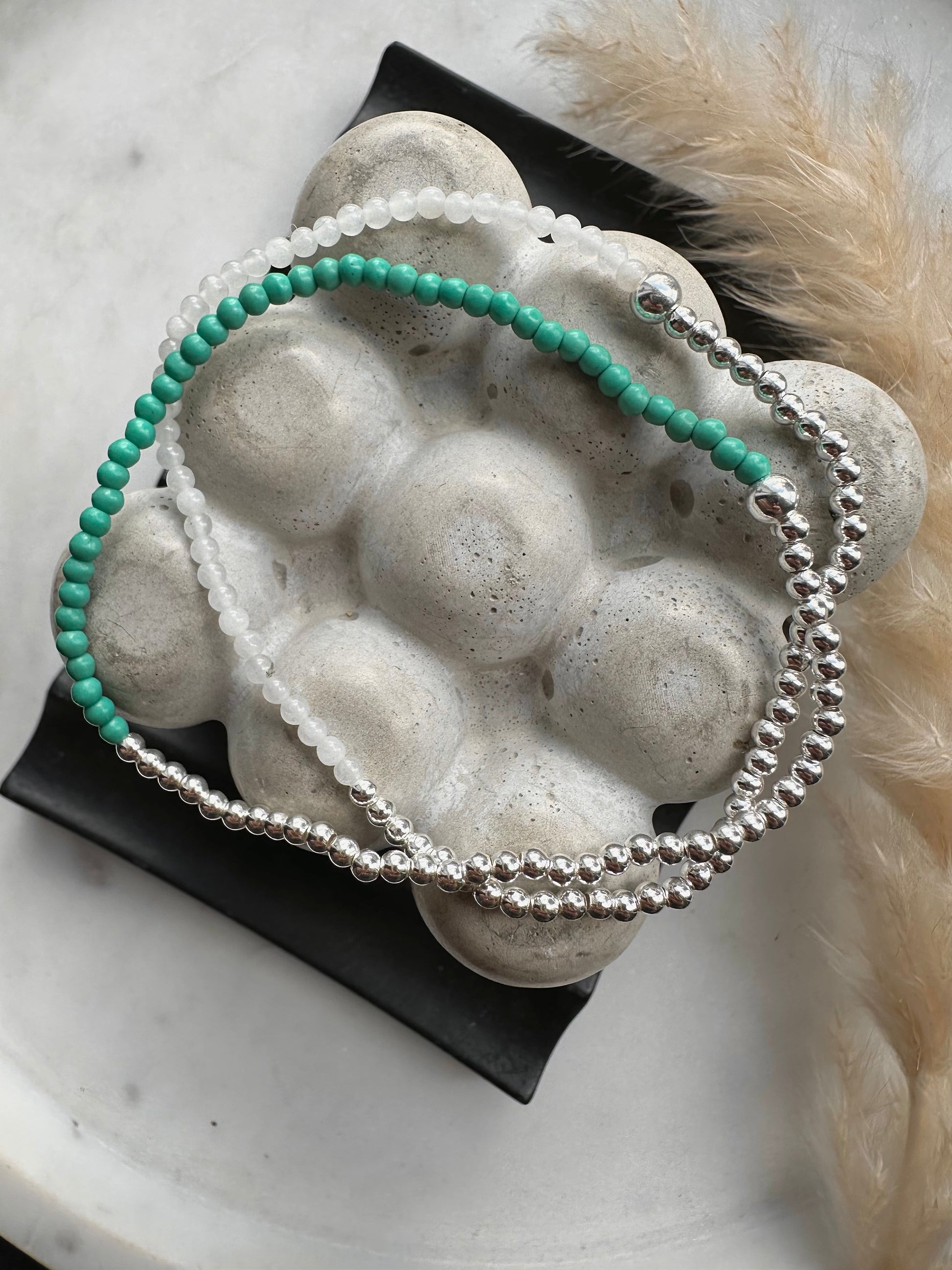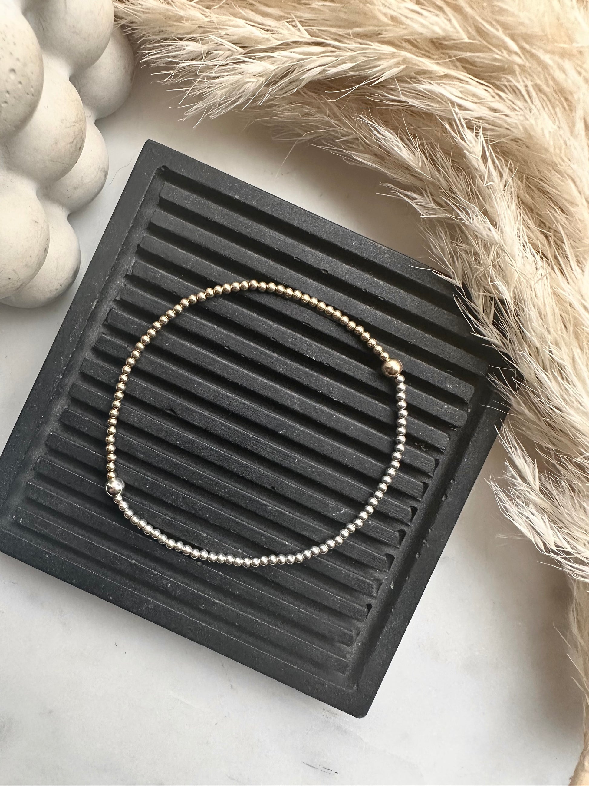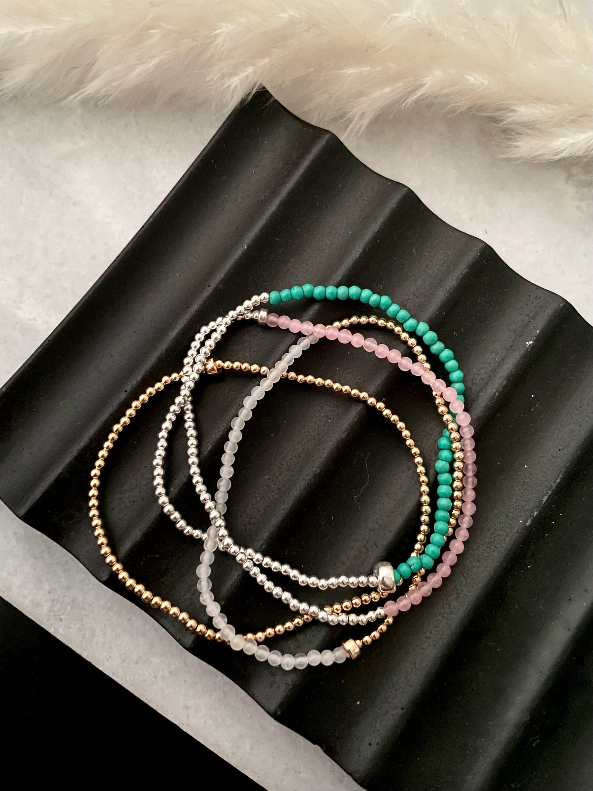 The ultimate stacking bracelet has gone luxe! skinny sterling silver or gold filled beads either alone or paired with your choice of skinny gemstone bead. Just so delicate!